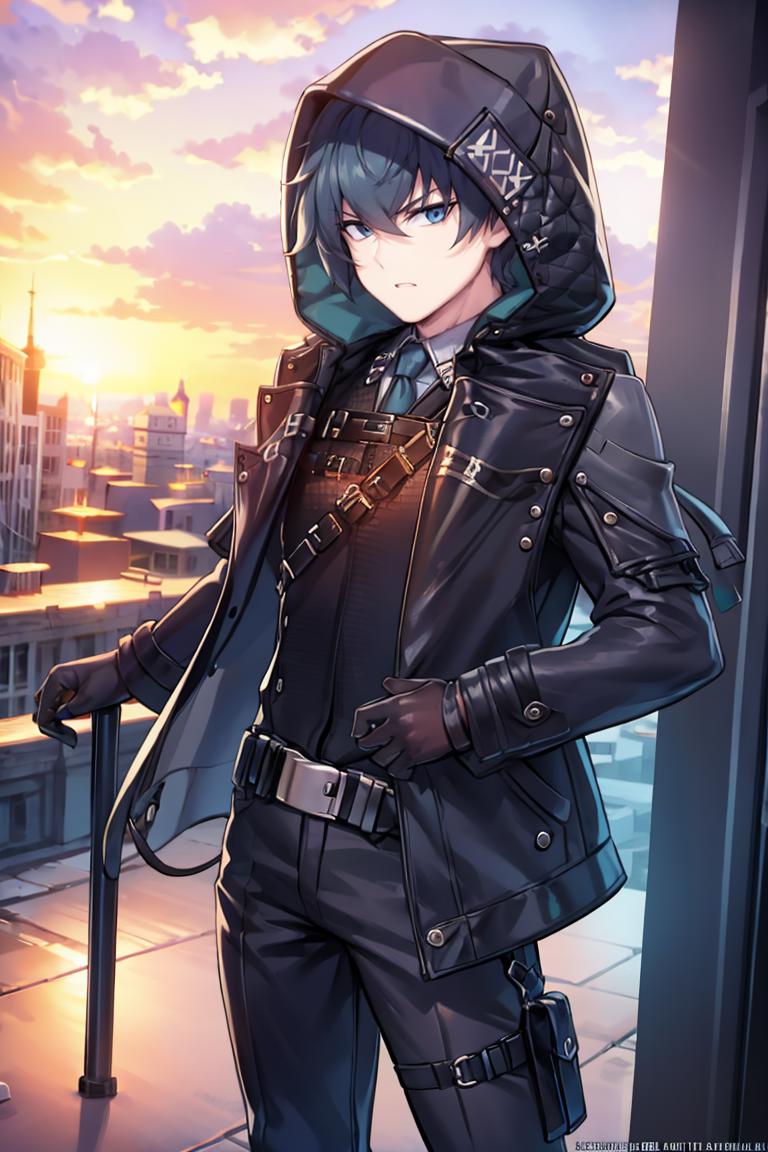 jacket, necktie, hood, gloves