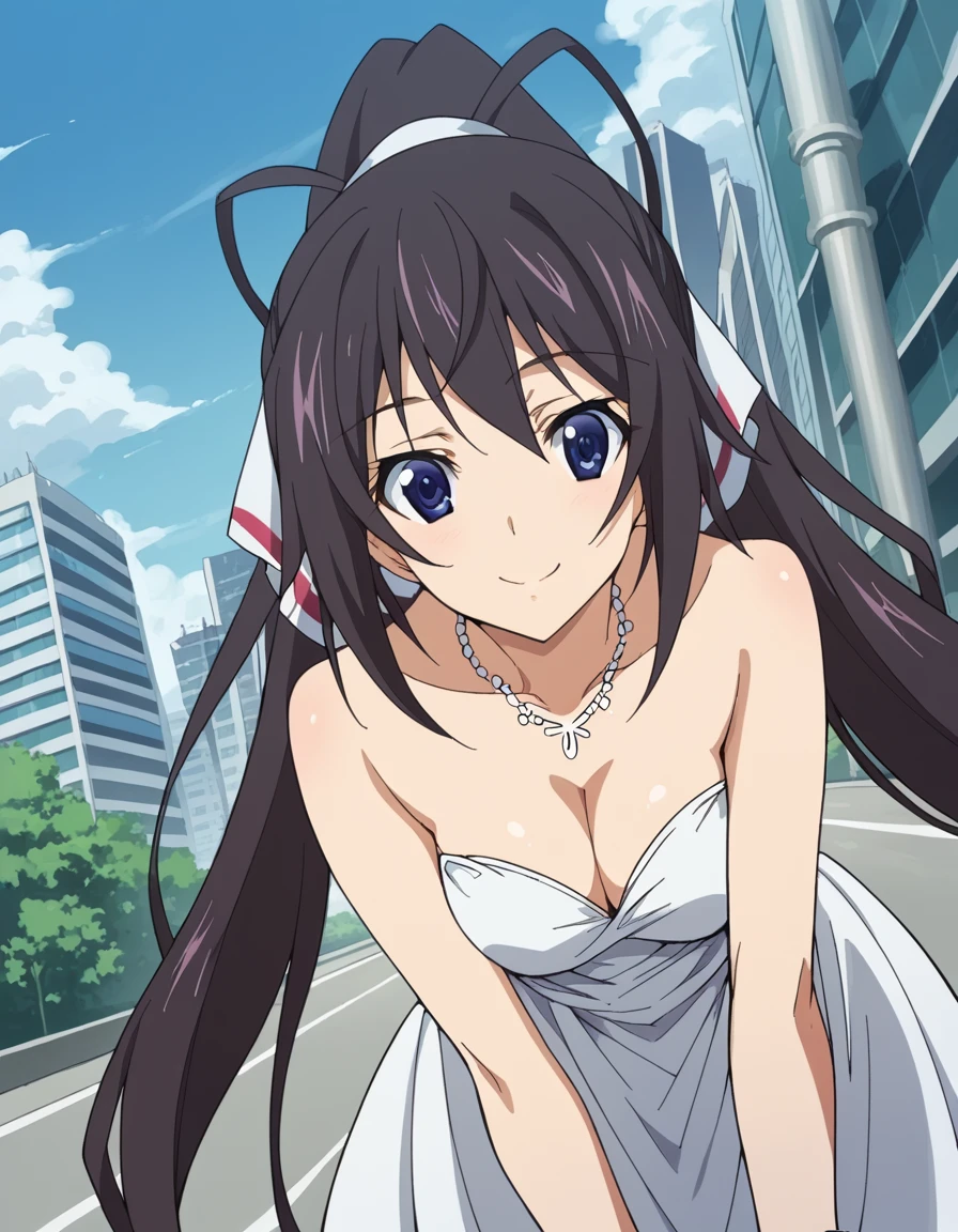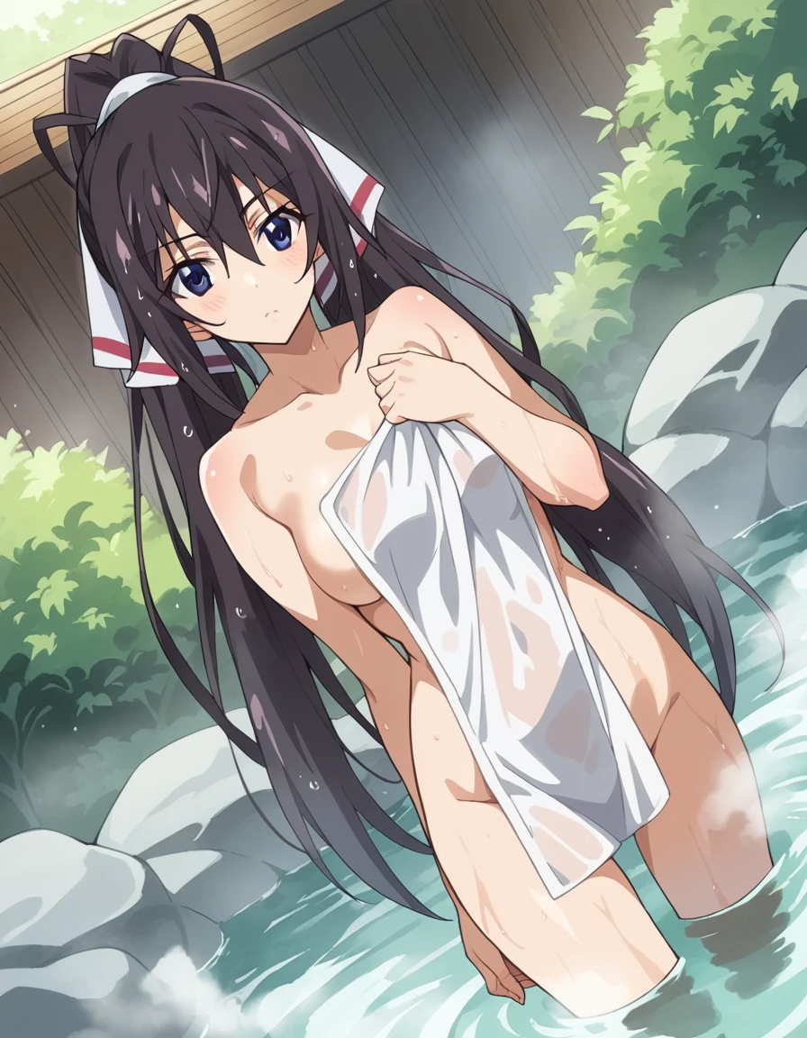 houki shinonono, long hair, blue eyes, black hair, ribbon, hair ribbon, ponytail,