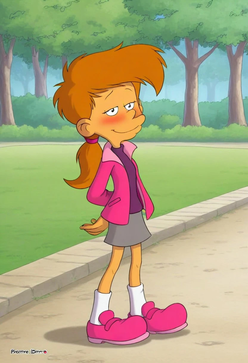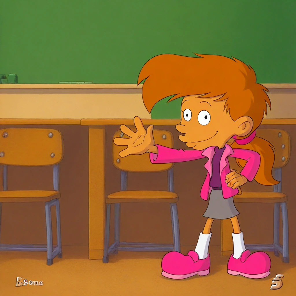 nadia, titeuf, brown hair, low ponytail, pink srunchie, black eyes, chibi,