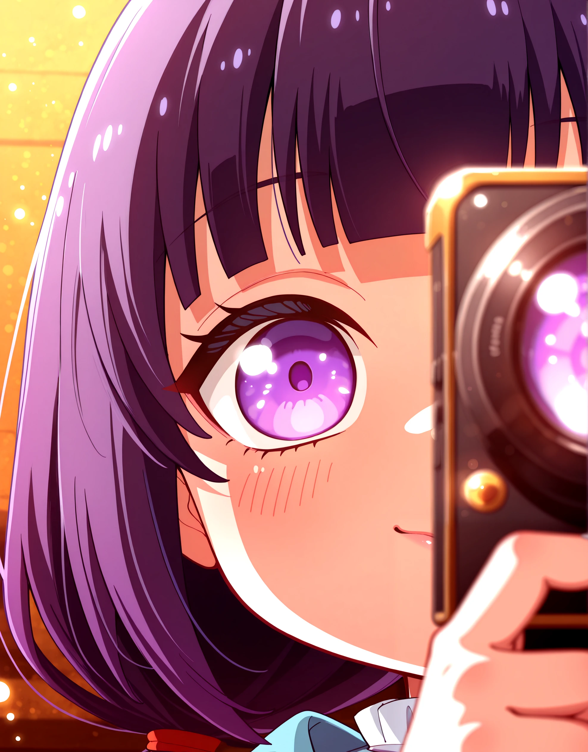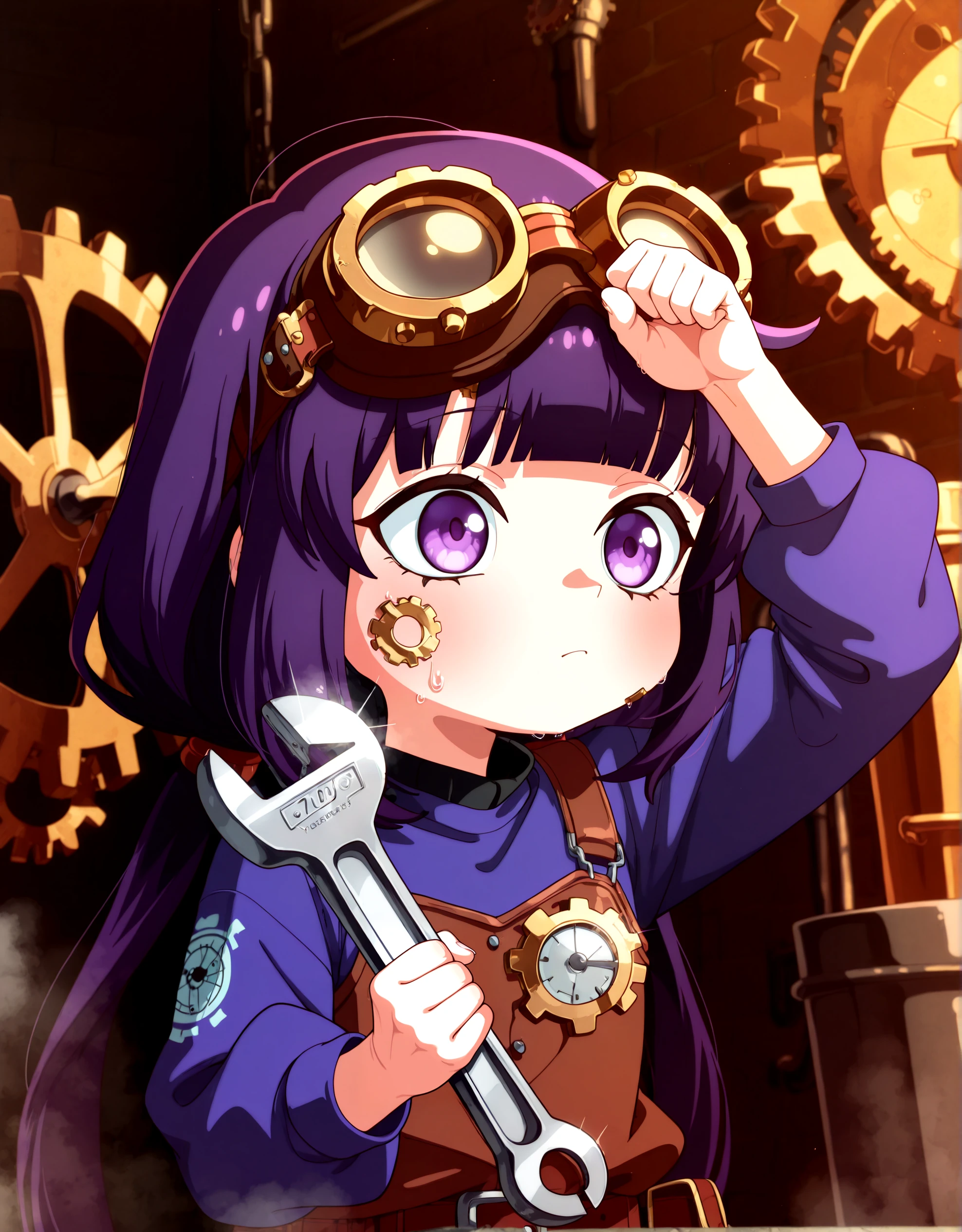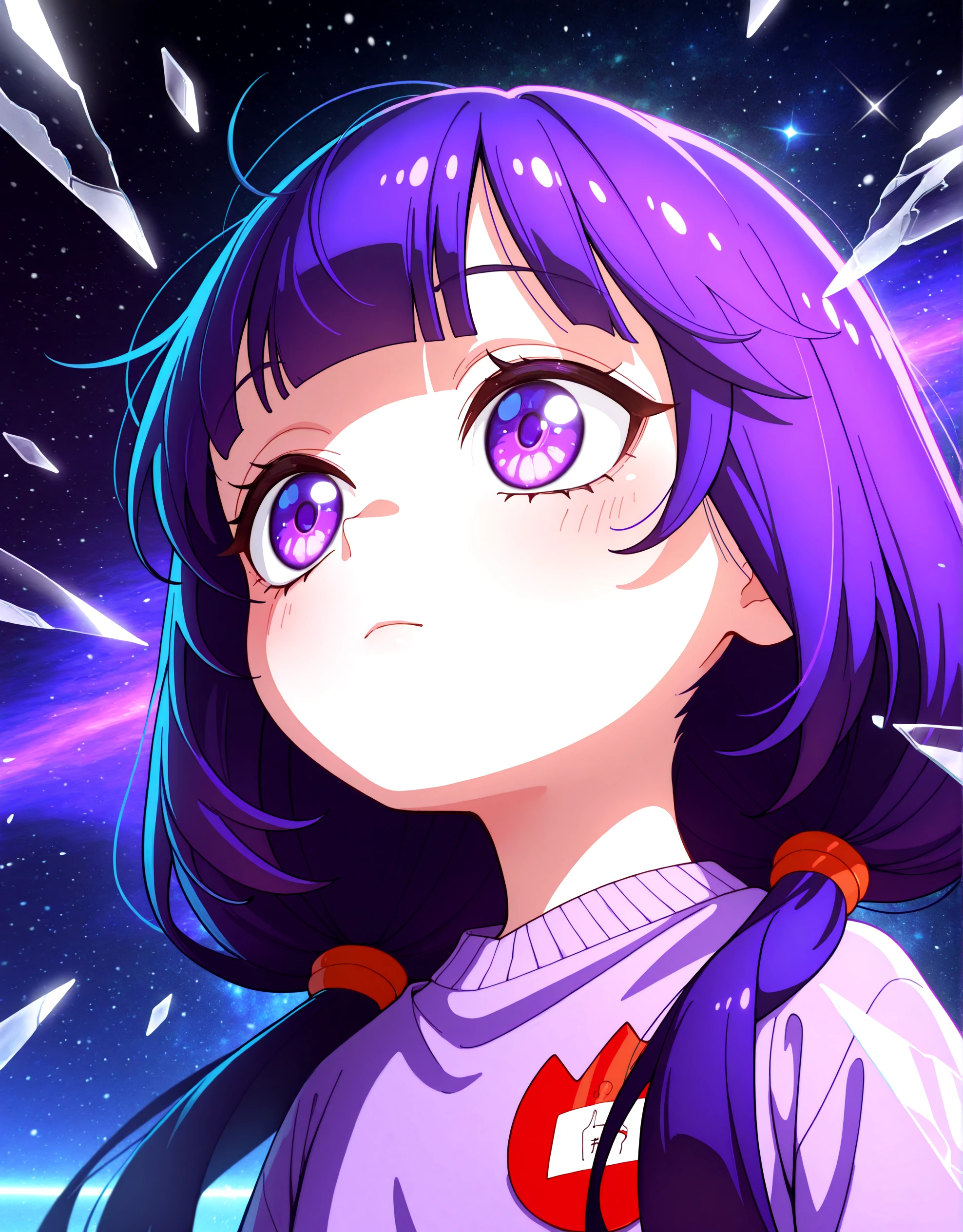 KayaSatouRaw, 1girl, solo, purple hair, purple eyes, twintails, blunt bangs