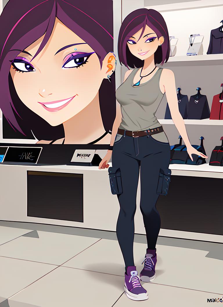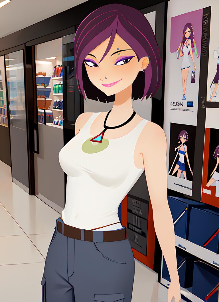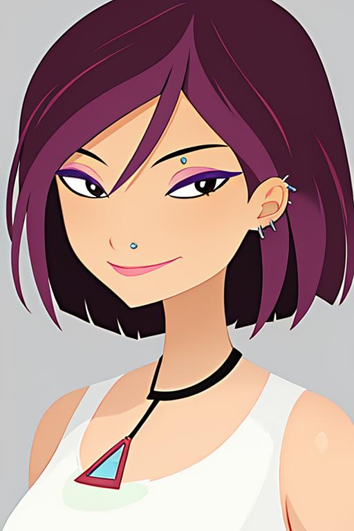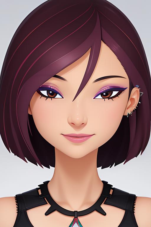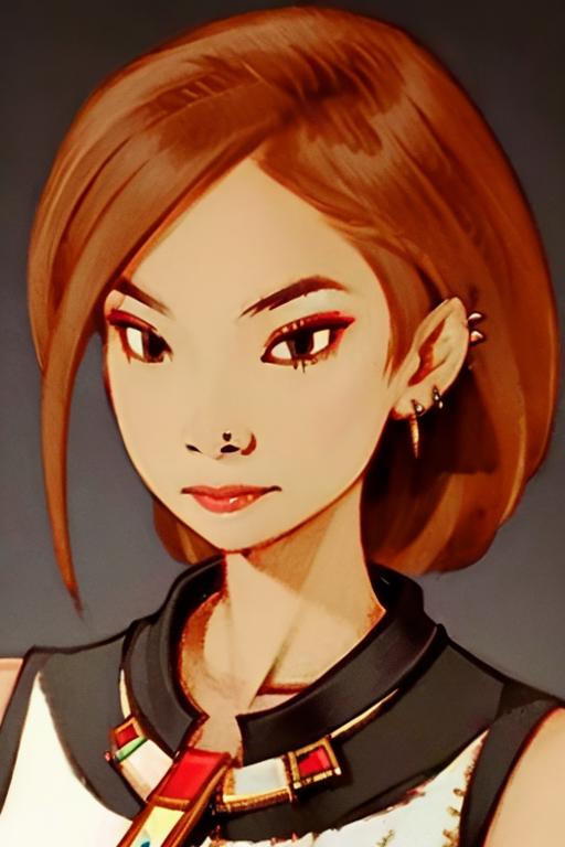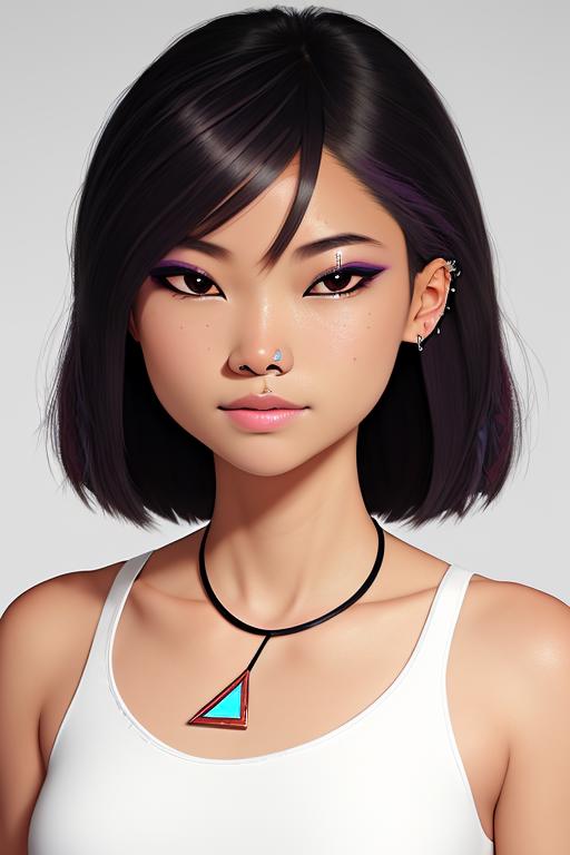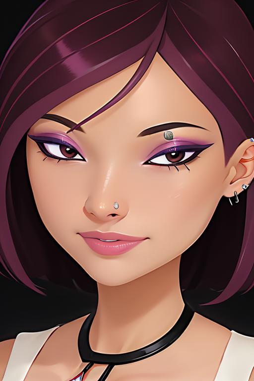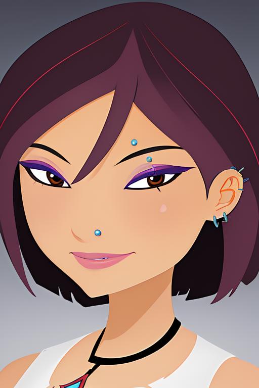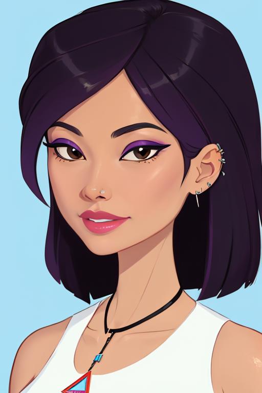 Nikki Wong from the show 6Teen. I generally use it in a range of 0.5-0.7, more than that will generally get a bit fuzzy. You may need to play with the strength a bit depending on the checkpoint used. It will often take several tries to get the facial piercings correct, but it will almost always get the ears right.