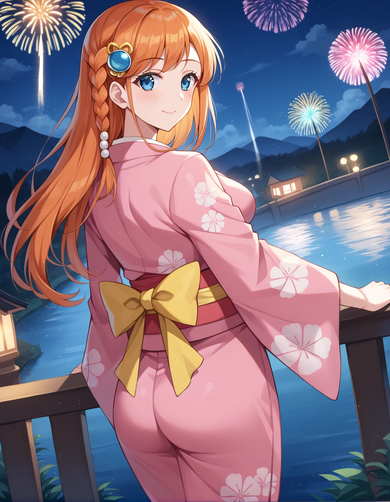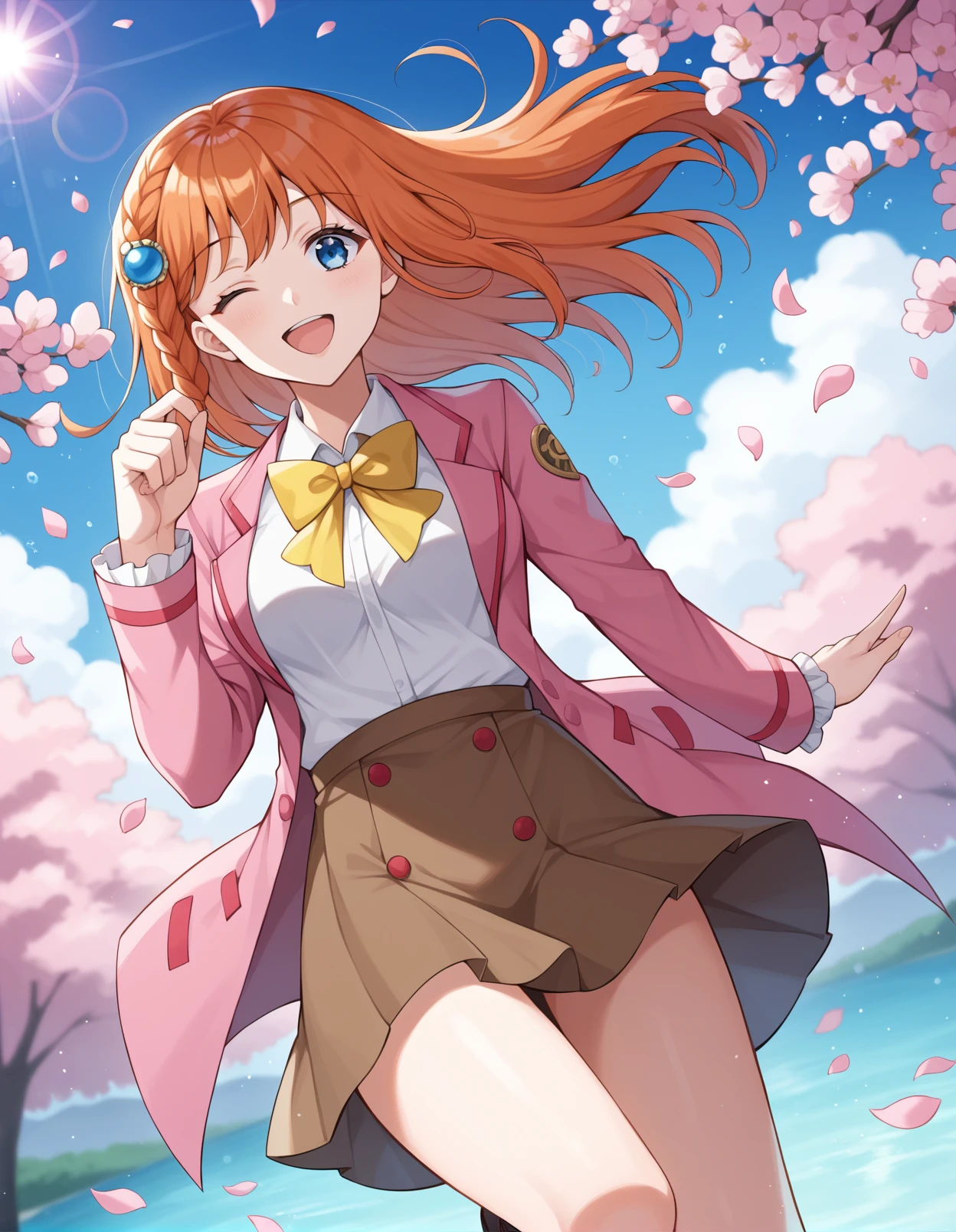 Trigger word: hibino matsuri, 1girl, blue eyes, long hair, orange hair, side braid