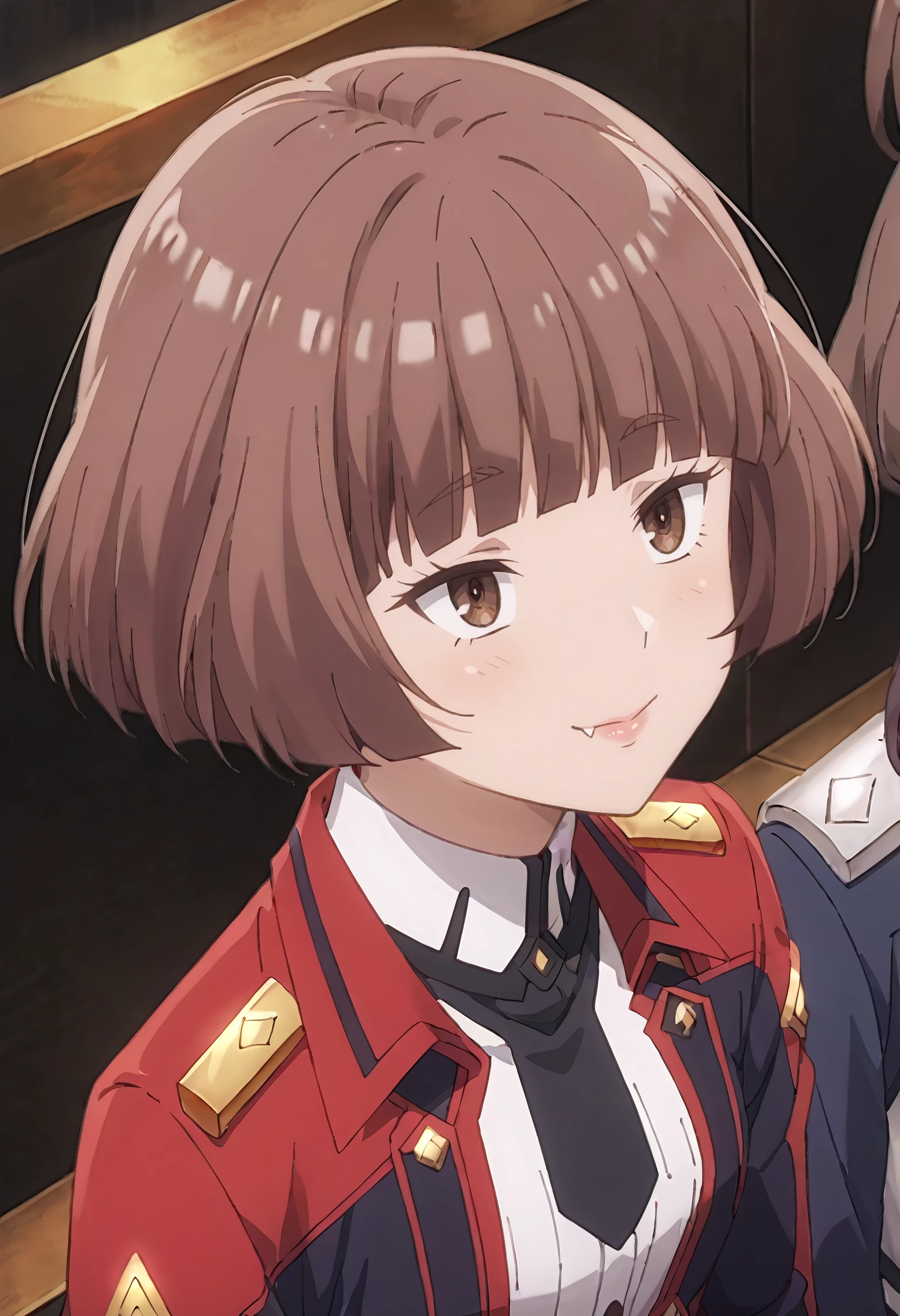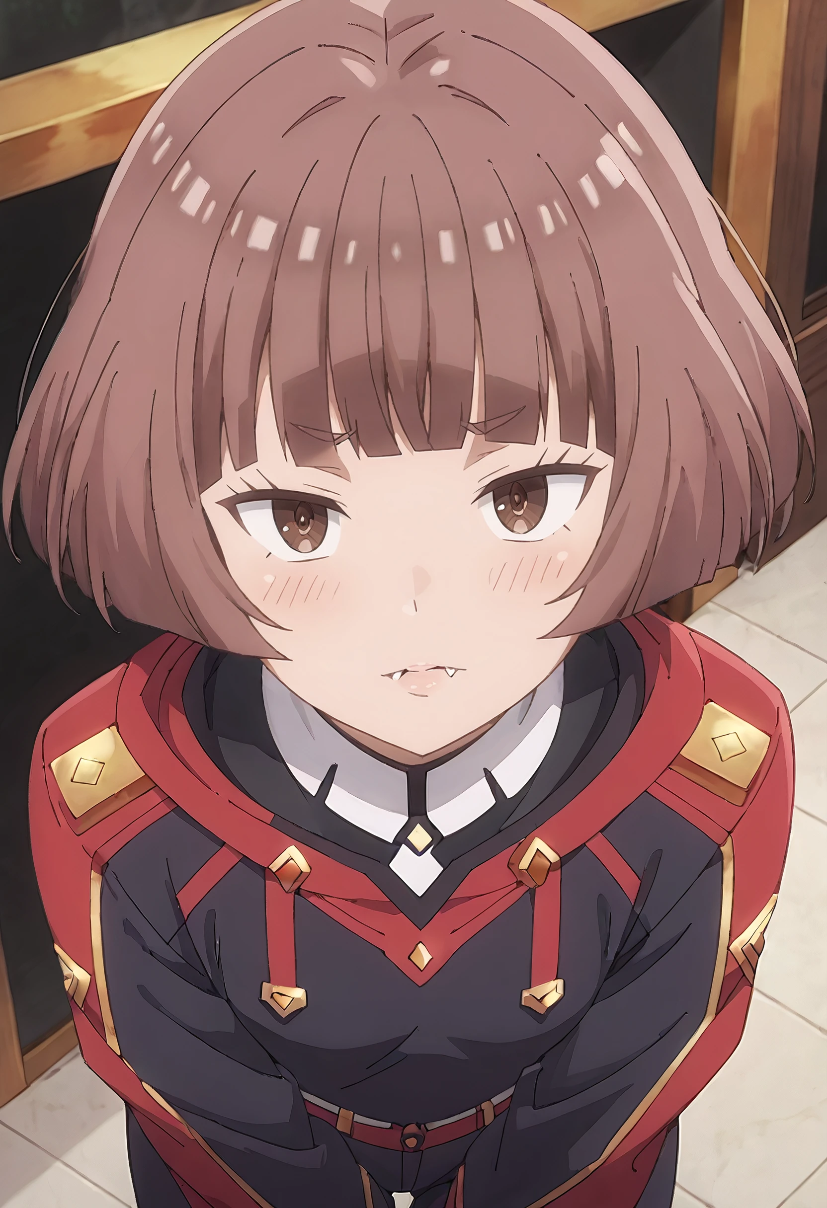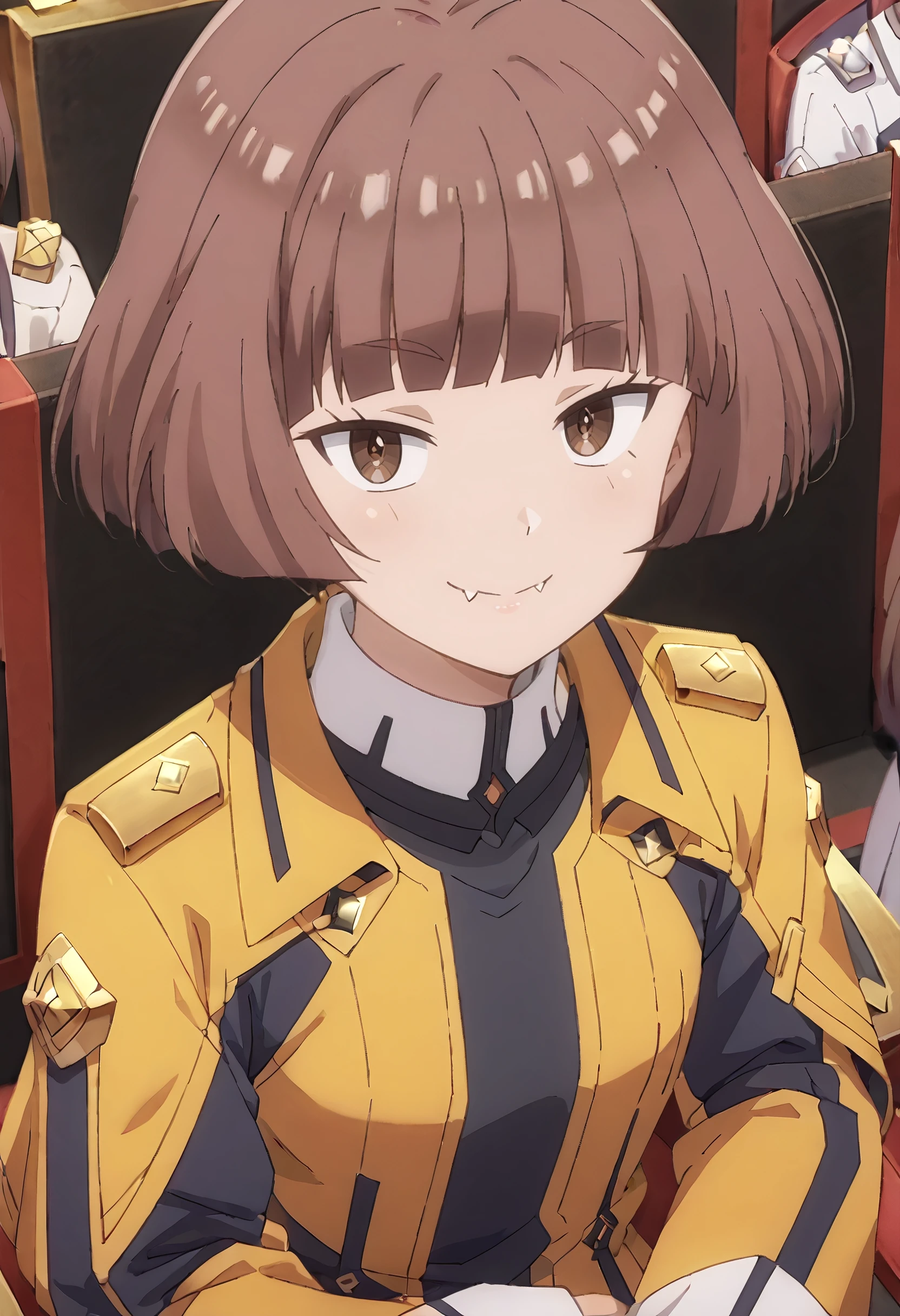 MGNRania, brown hair, brown eyes, short hair, blunt bangs, bob cut, fang,