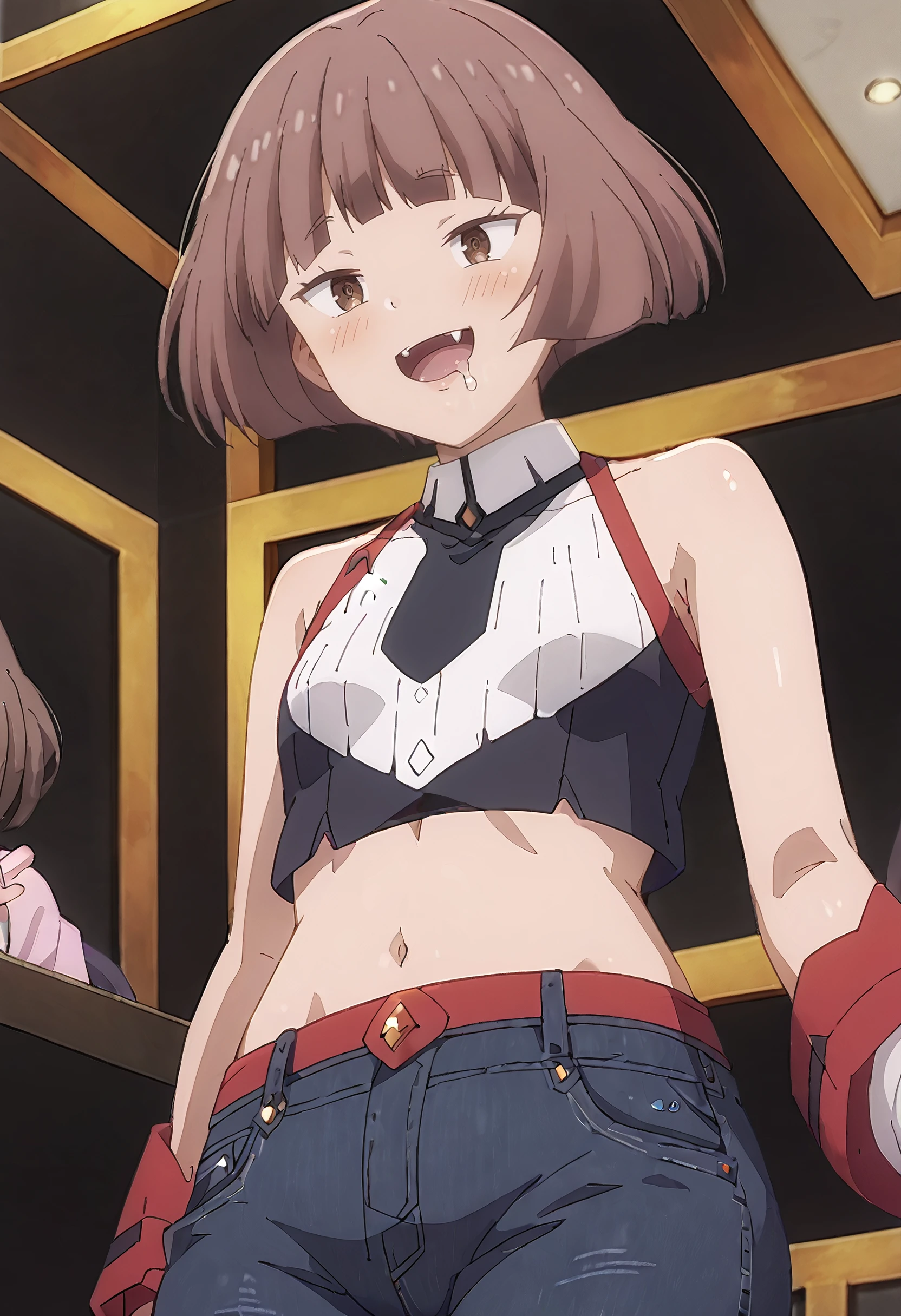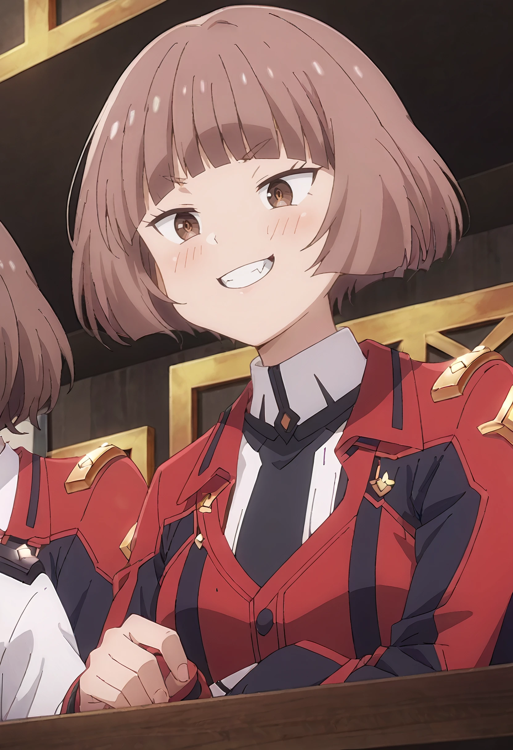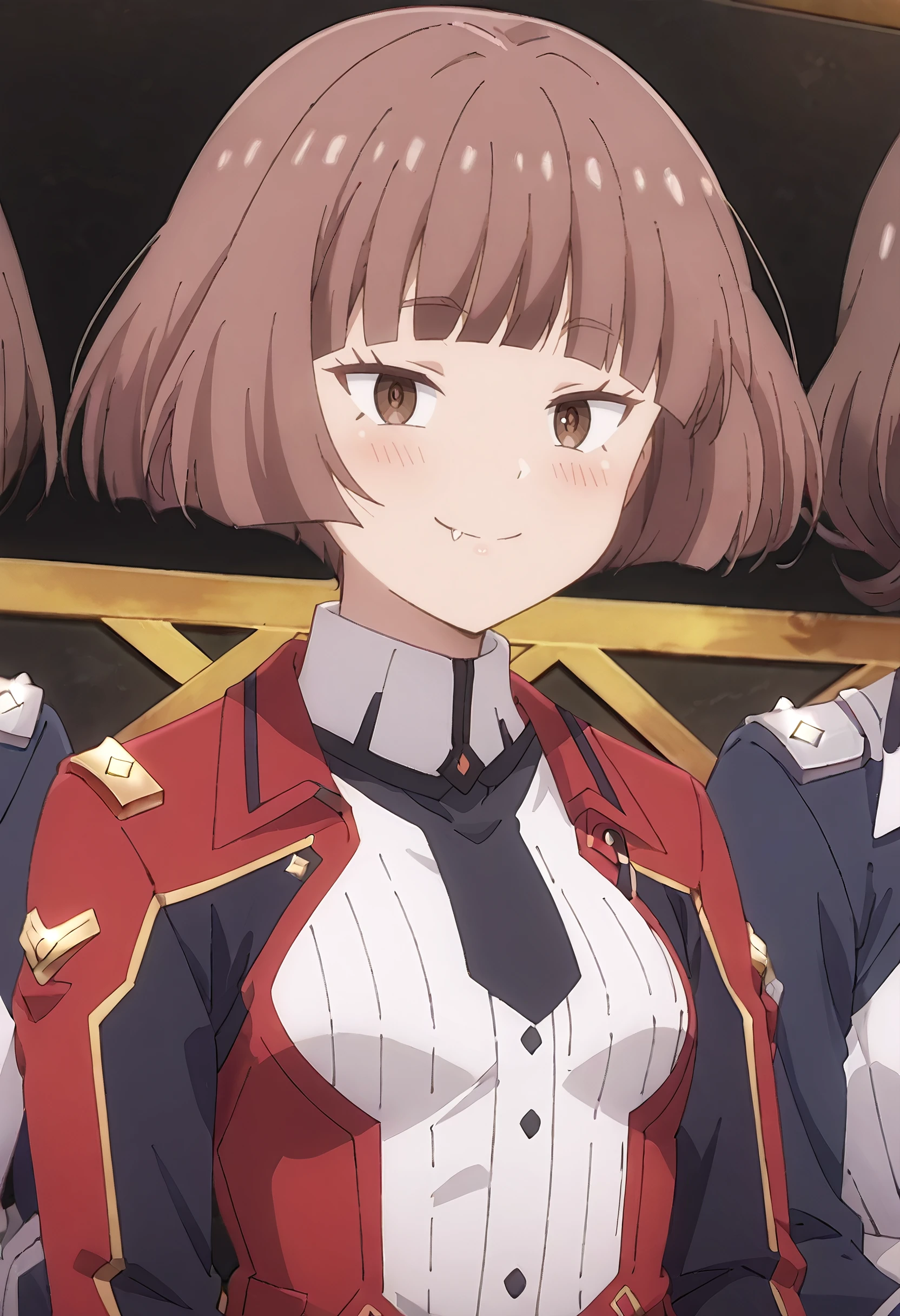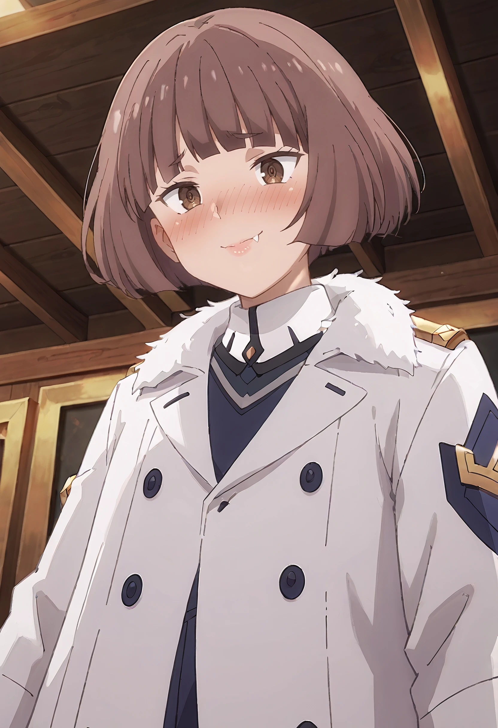 MGNRania, brown hair, brown eyes, short hair, blunt bangs, bob cut, fang,