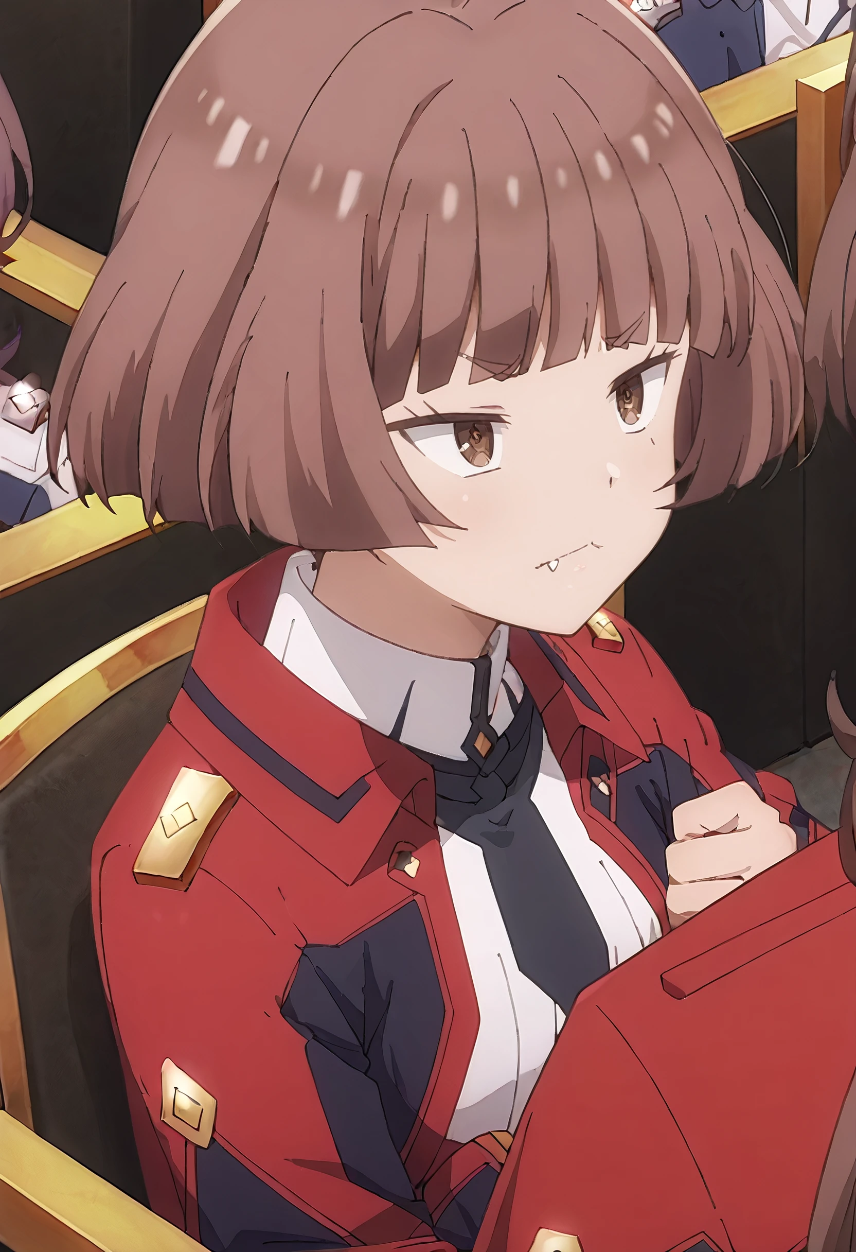 RaniaOutfit, red jacket, black necktie, long sleeves, white shirt, uniform, ribbed shirt, ,