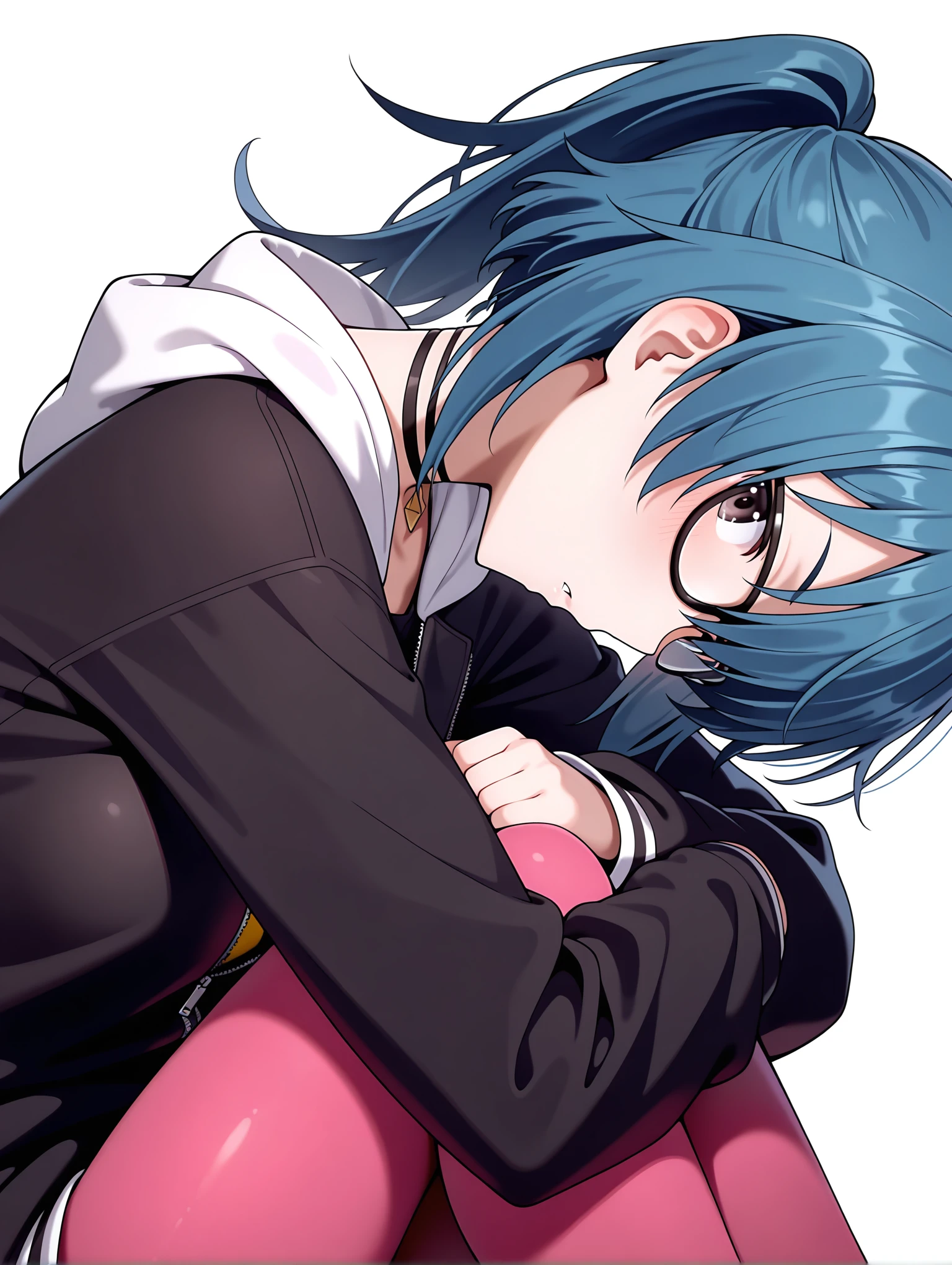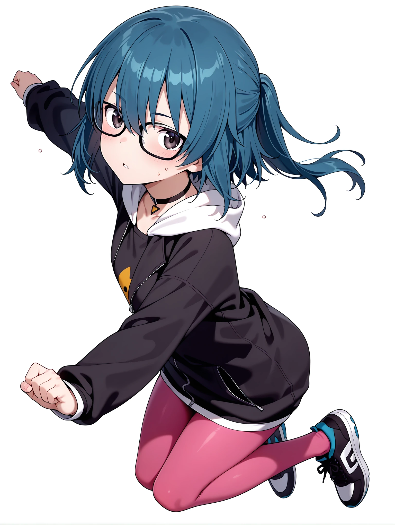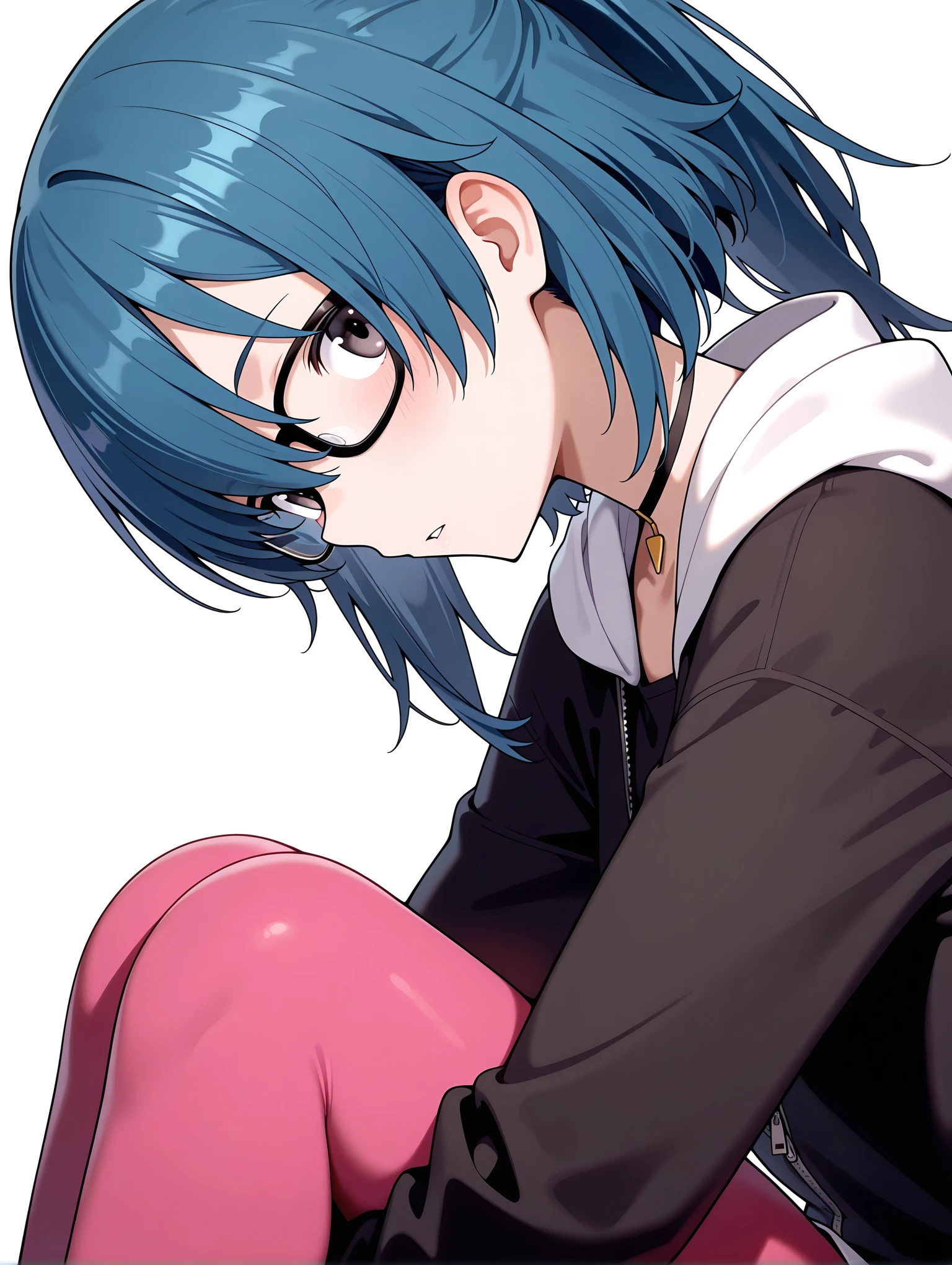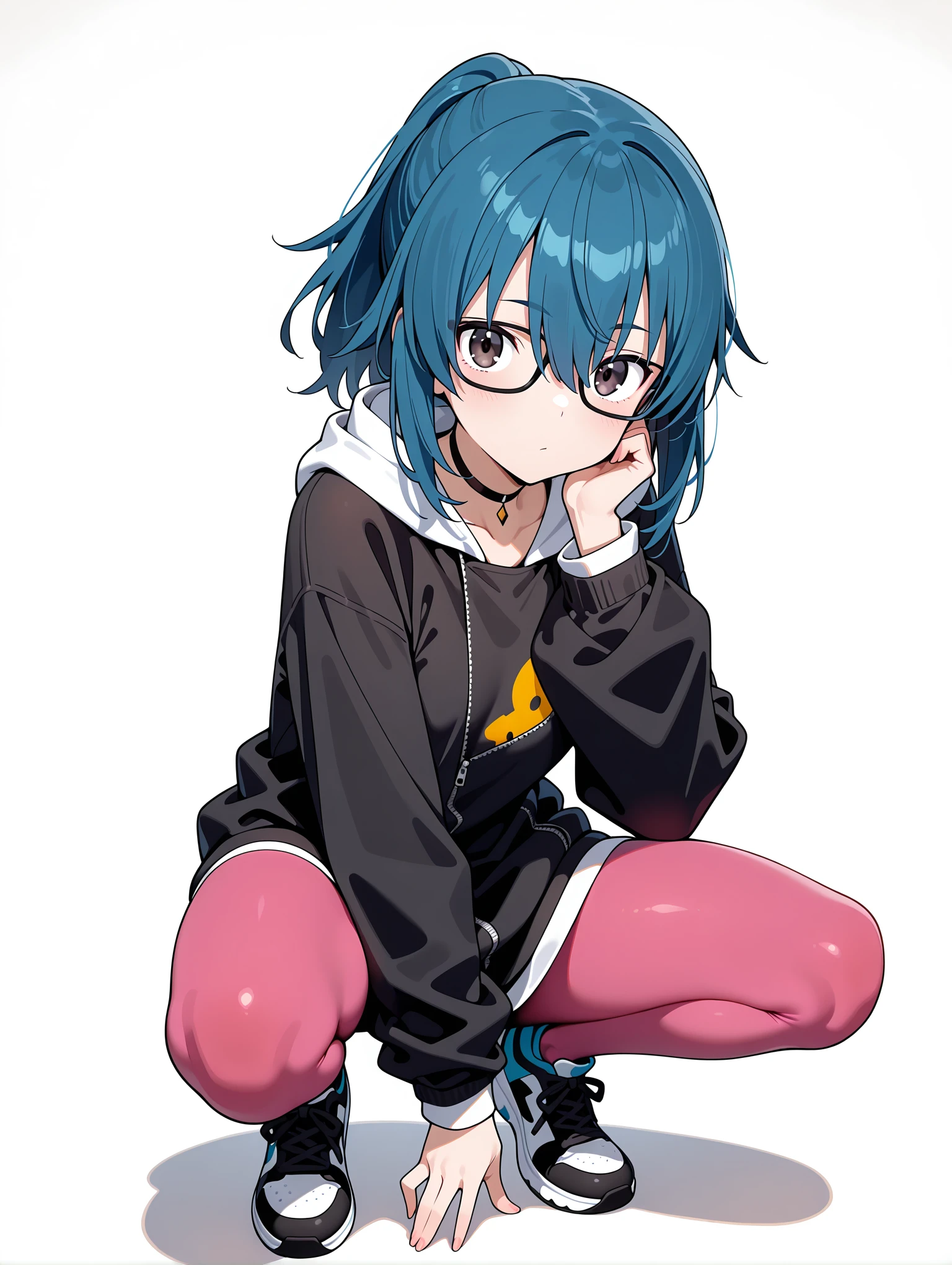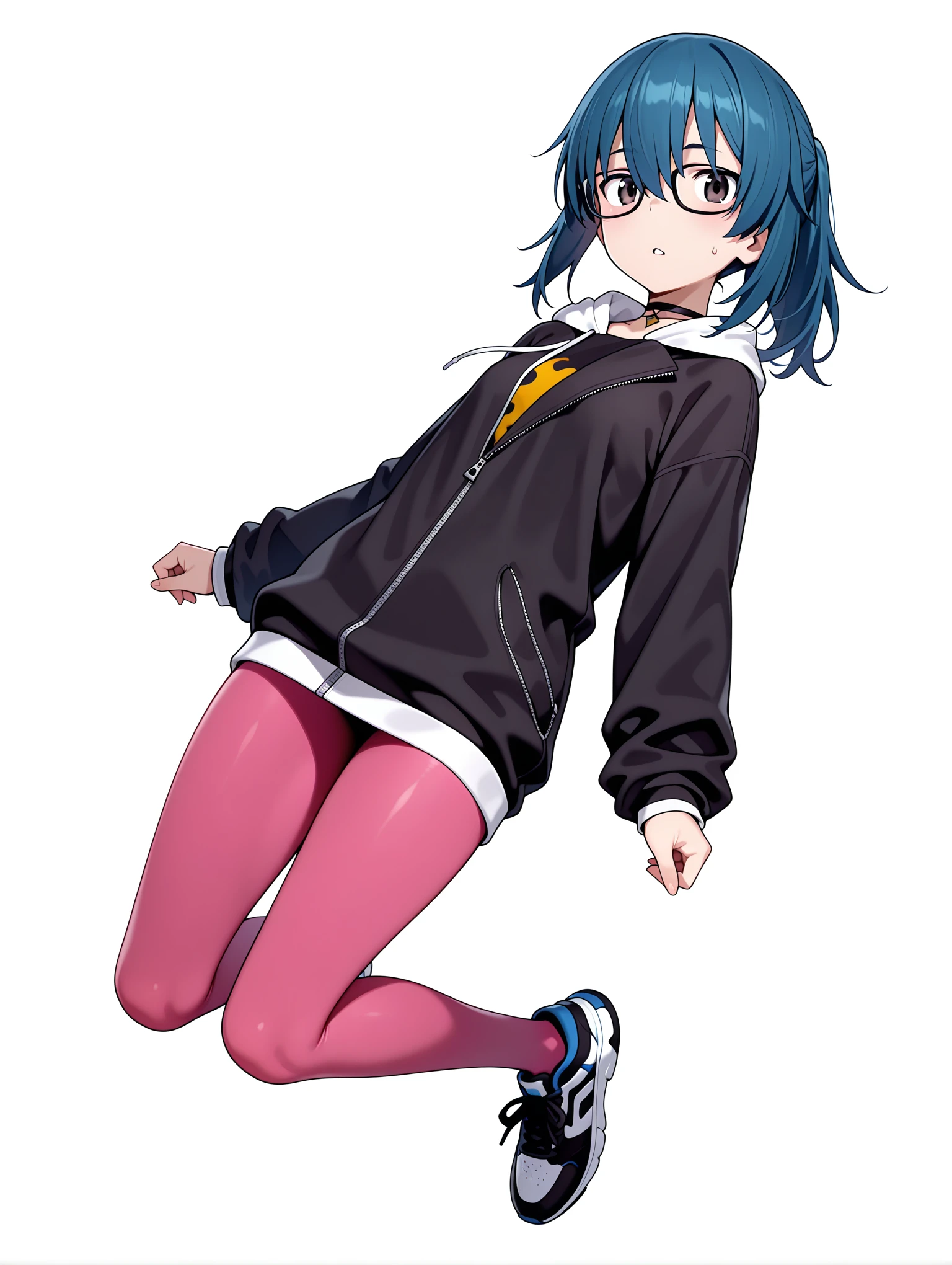 n_clothes,choker,long sleeves,hoodie,hood down,zipper,zipper pull tab,pink pantyhose,sneakers,