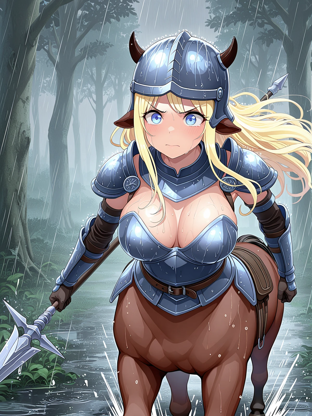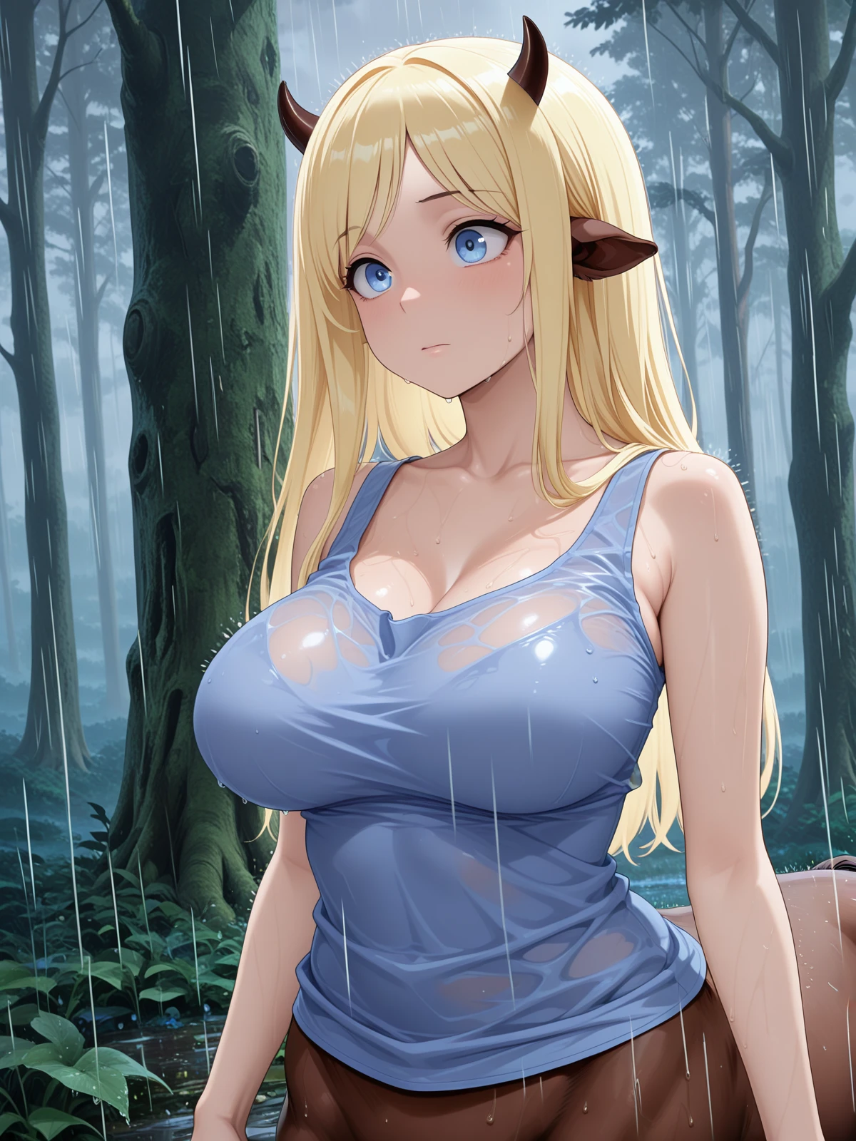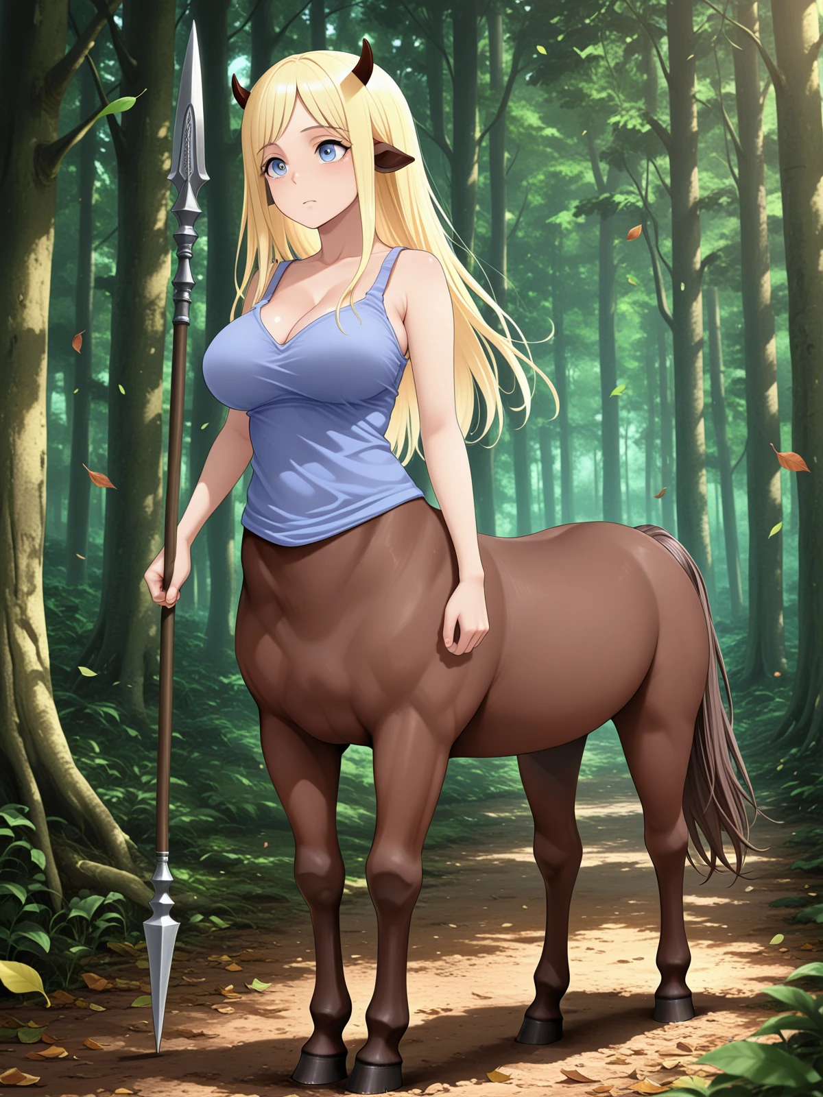 CentaurMGQ, Centaur, 1girl, blonde hair, blue eyes, horse ears, animal ears, small horns