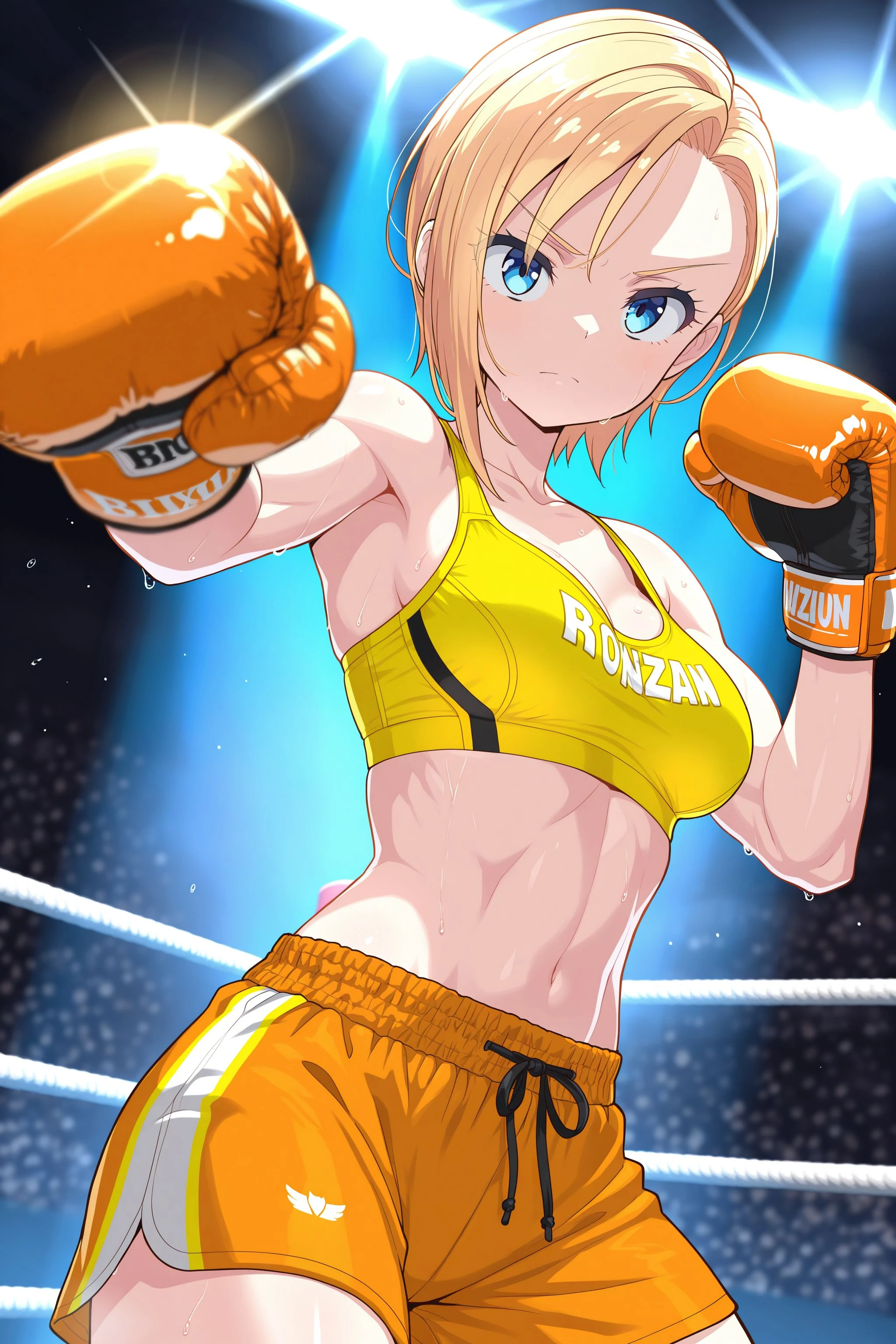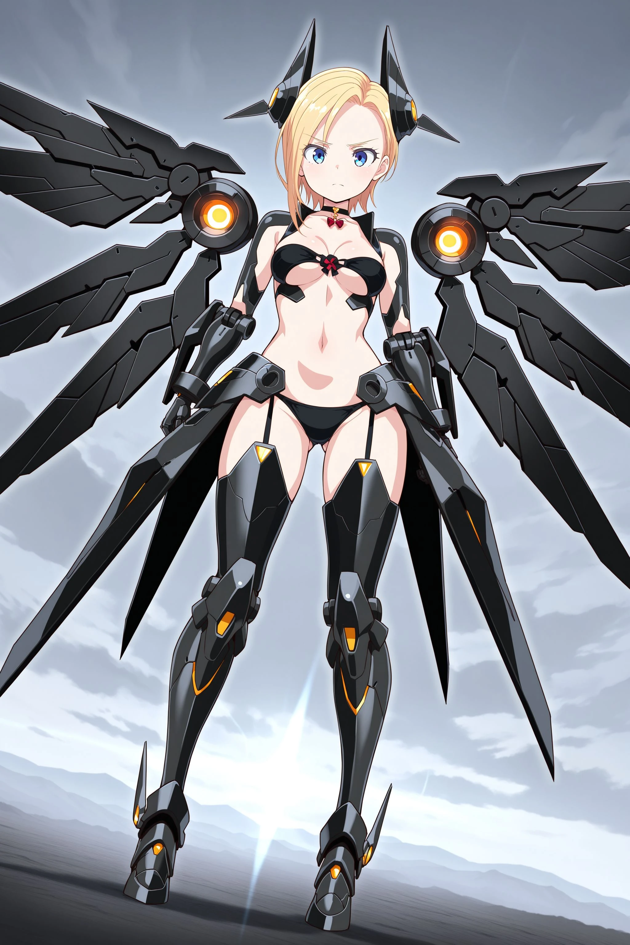 medium breasts, blue eyes, blonde hair, asymmetrical bangs,