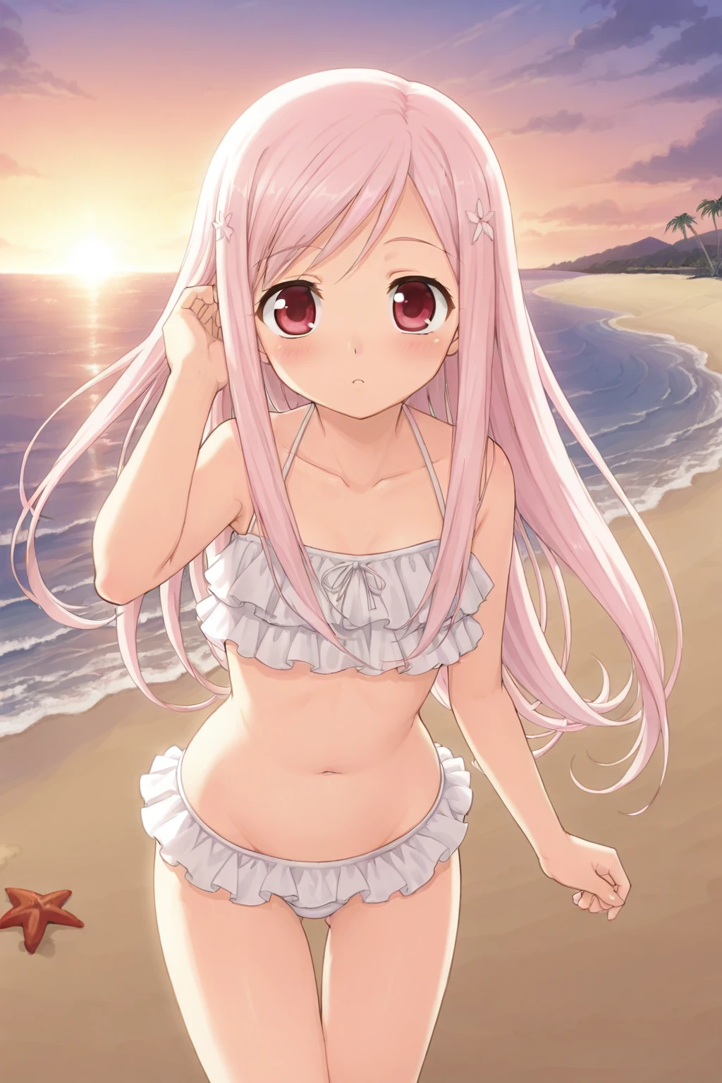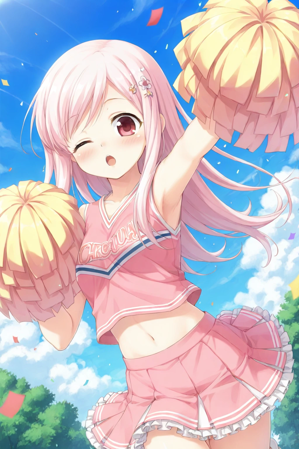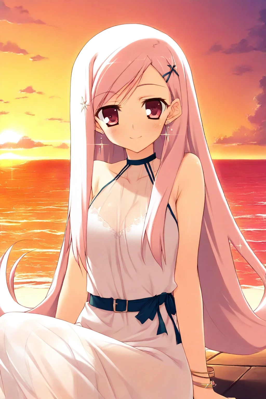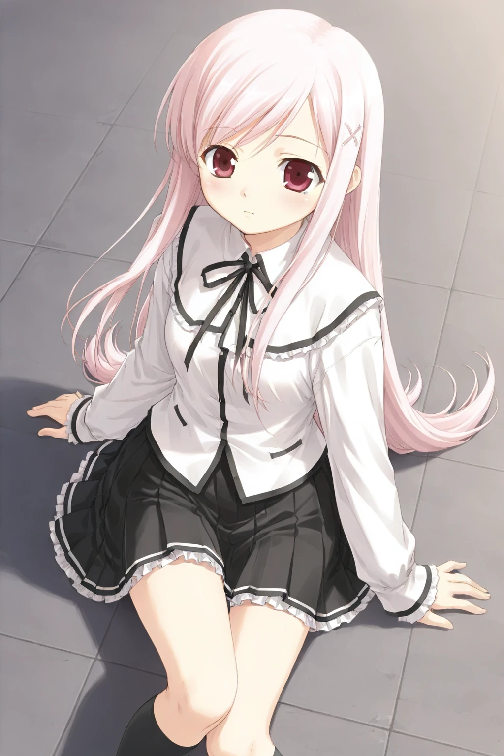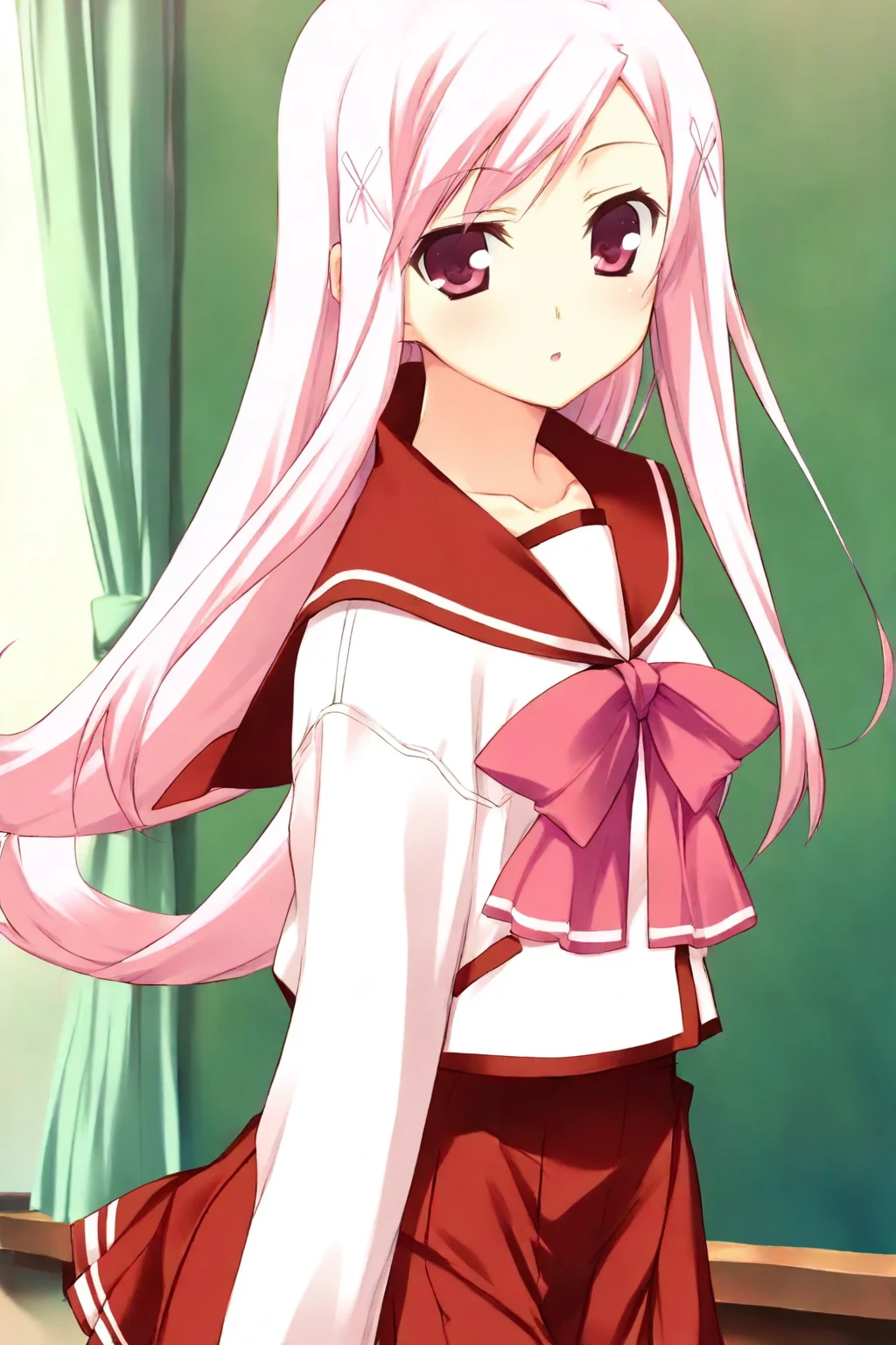 Character Prompts: long hair, pink hair, swept bangs, hair ornament, hairclip, red eyes