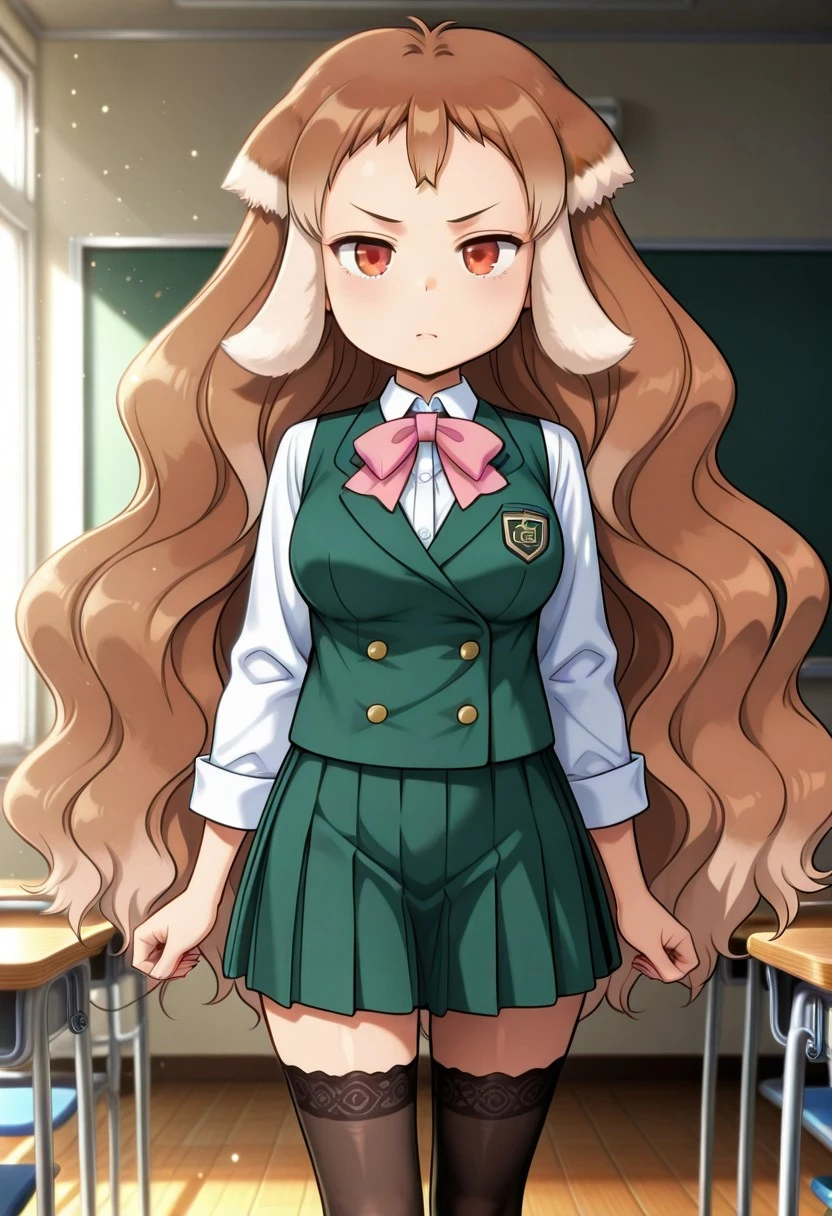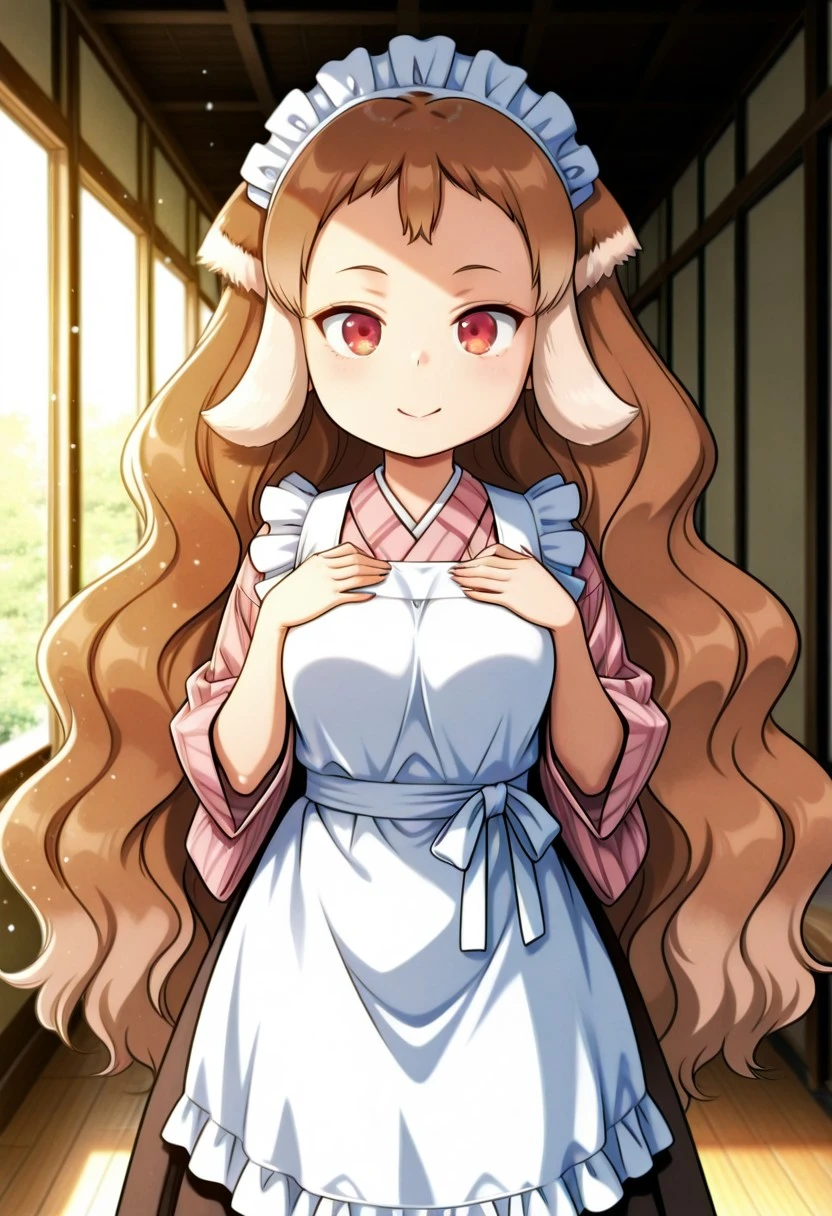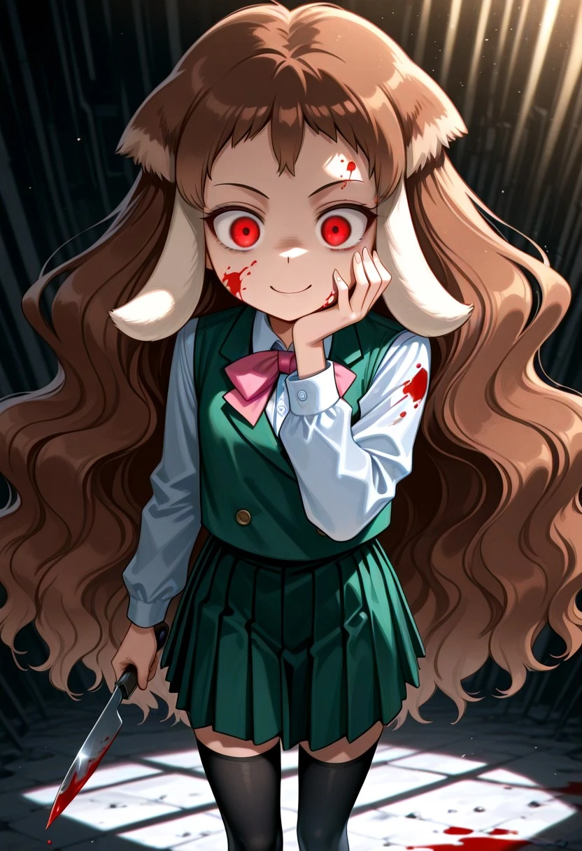 Koorimoto man, very long hair, wavy brown hair, short bangs, wavy hair, two-tone hair, mammoth ears, (Red eyes: 1.2).