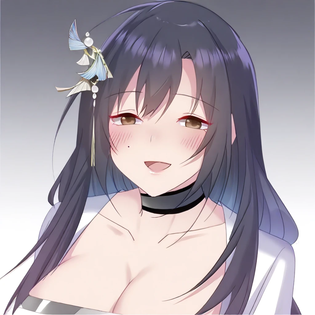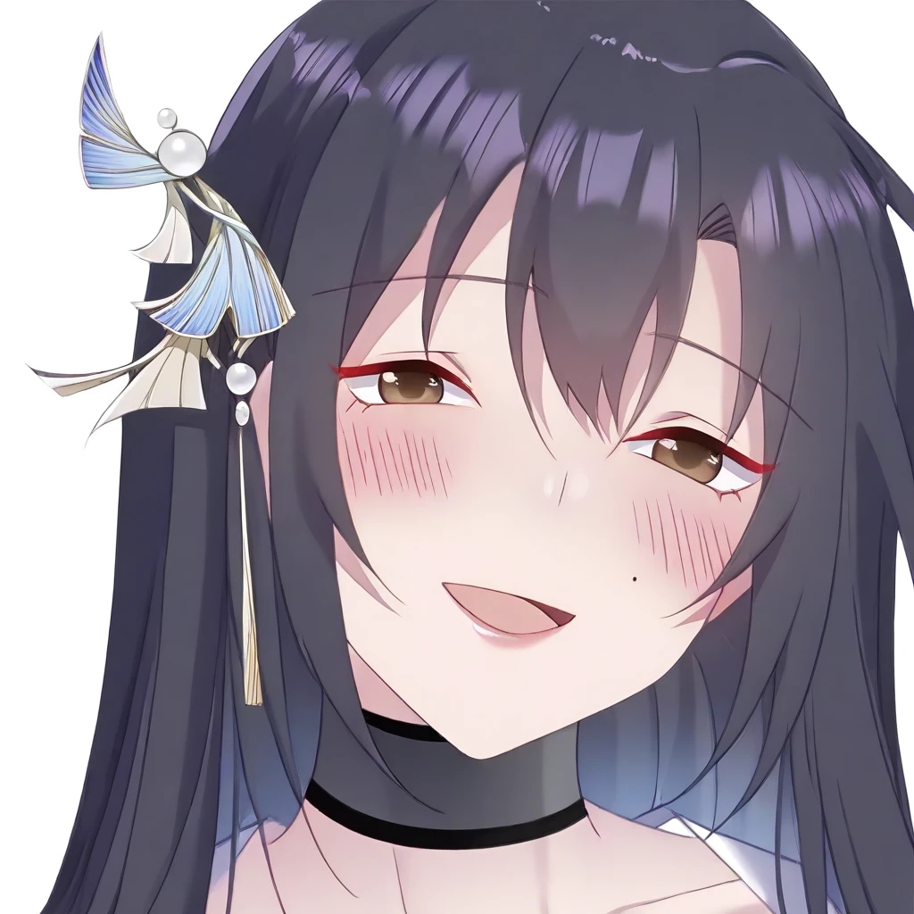 1 girl with long, straight, black hair, wearing a hair accessory, a side braid, and brown eyes,Side braid,