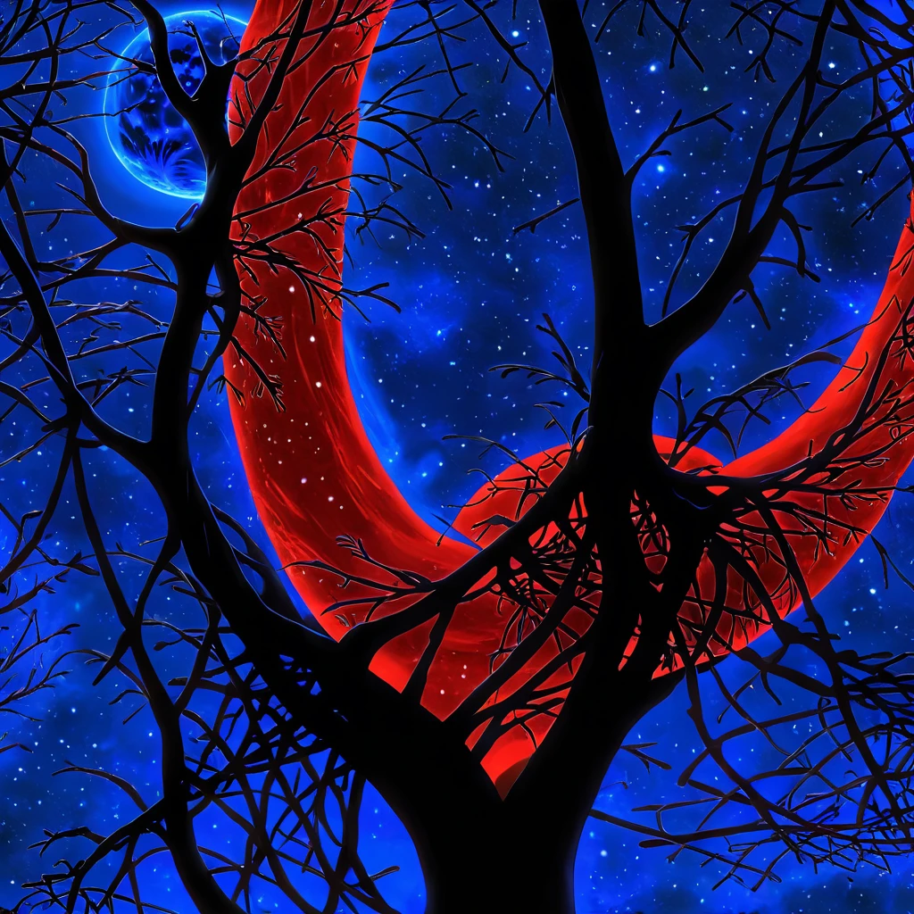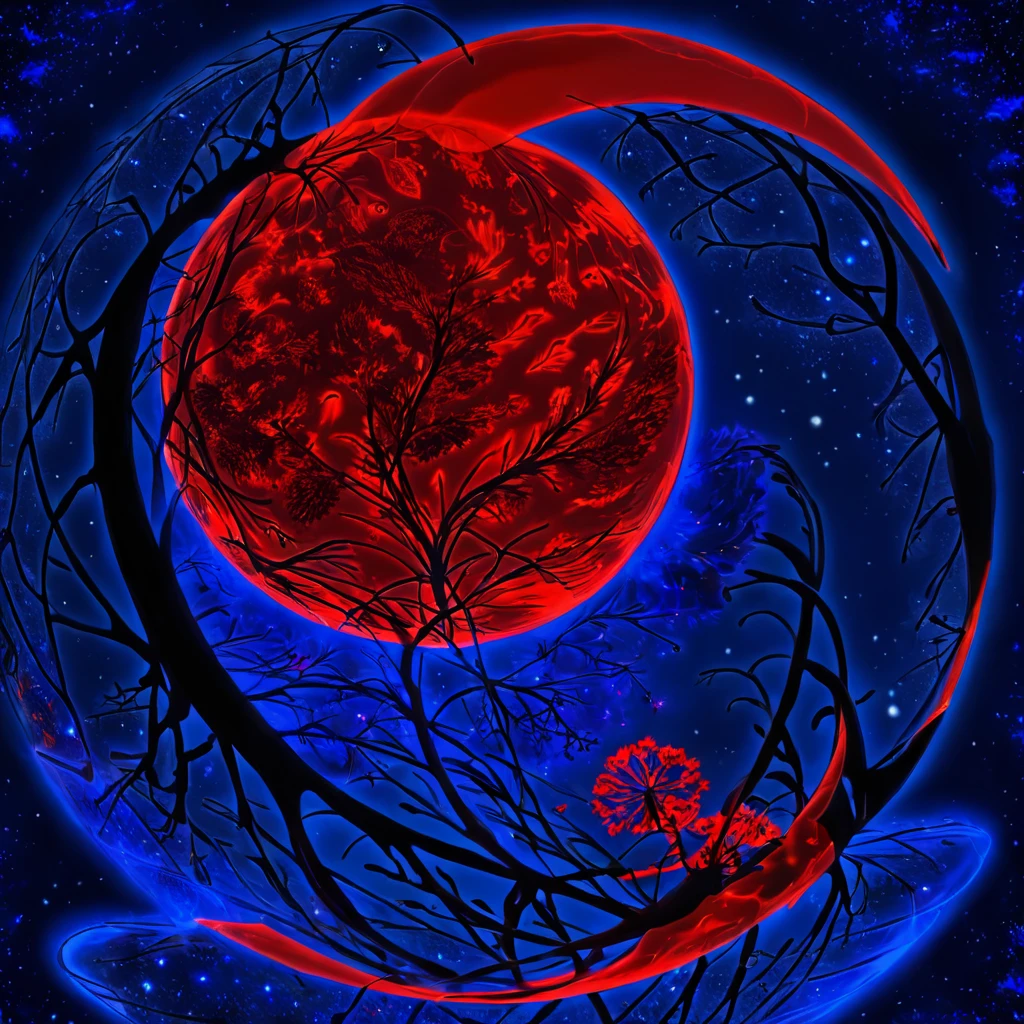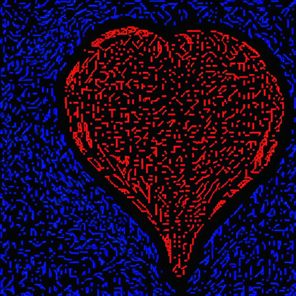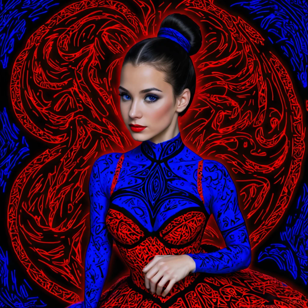 Produces a chromostereopsis style — vivid red subjects on deep blue backgrounds, creating a pulsating depth illusion. Dataset was generated by a personal SDXL LoKR from 2023 (available on request).