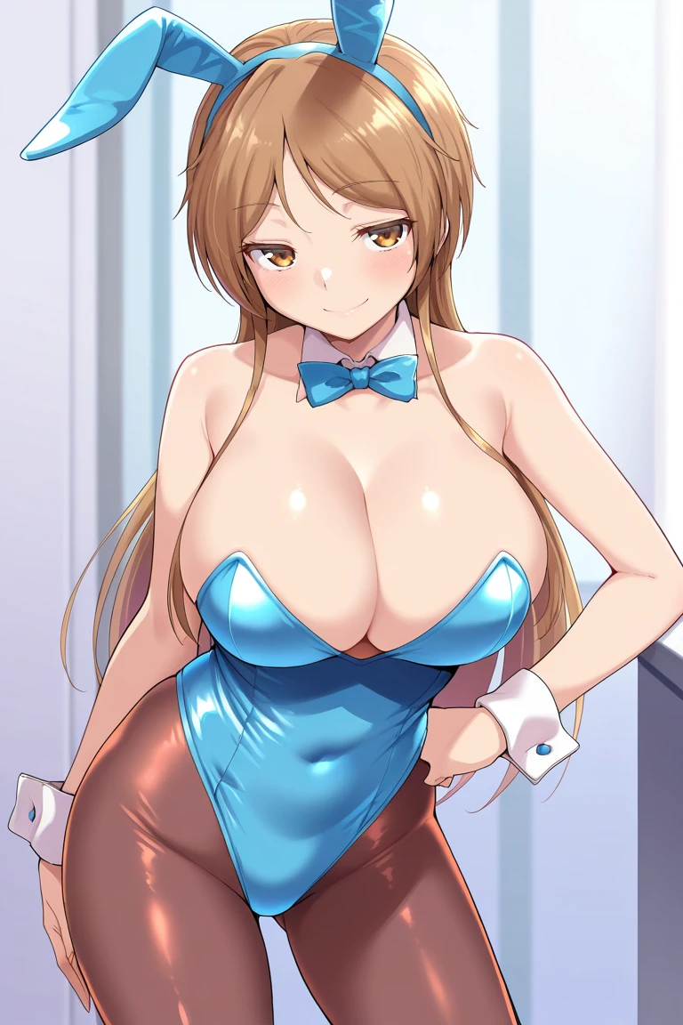 brown hair, long hair, parted bangs, side locks, brown eyes, large breasts,