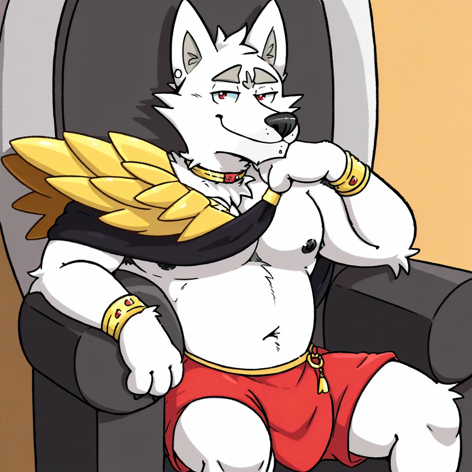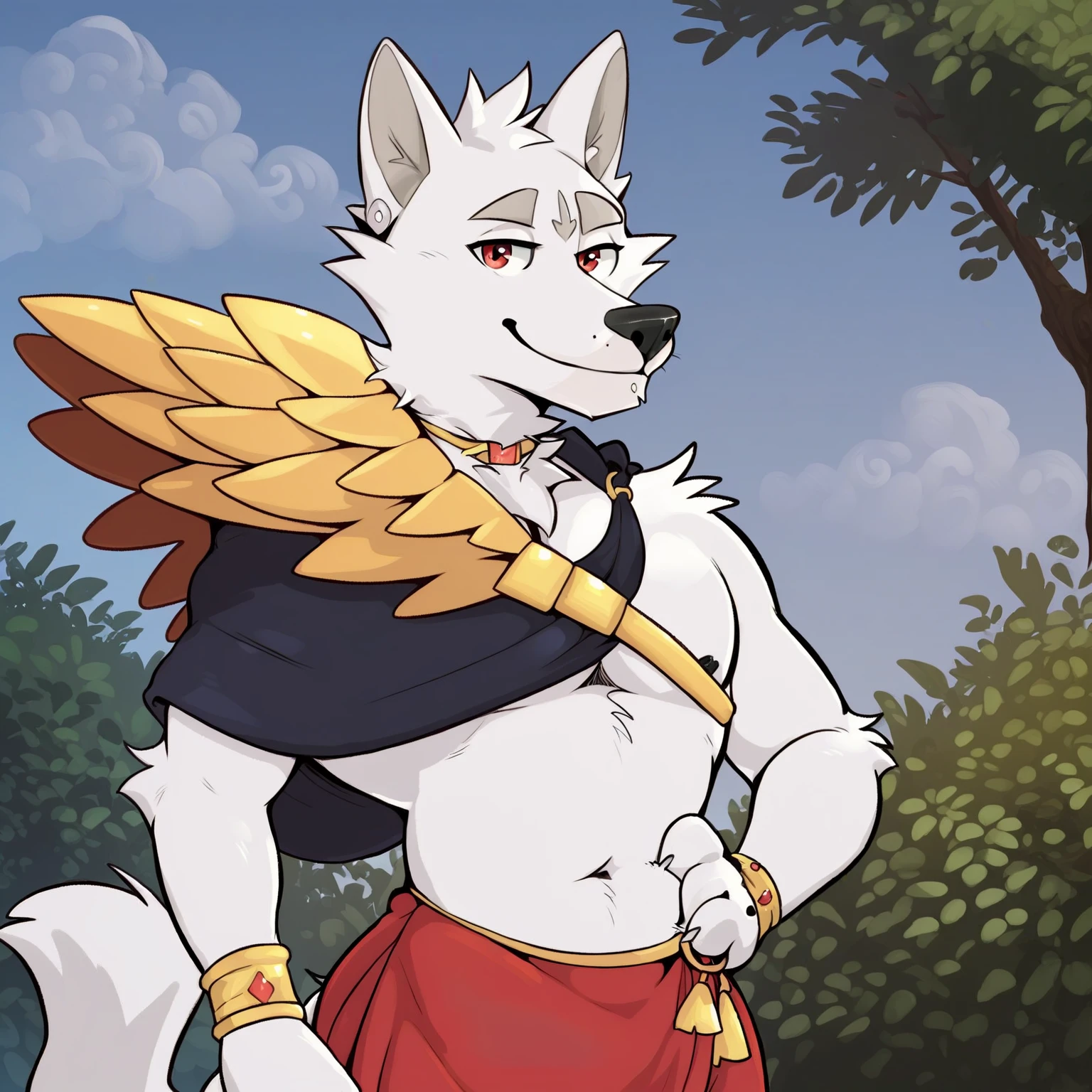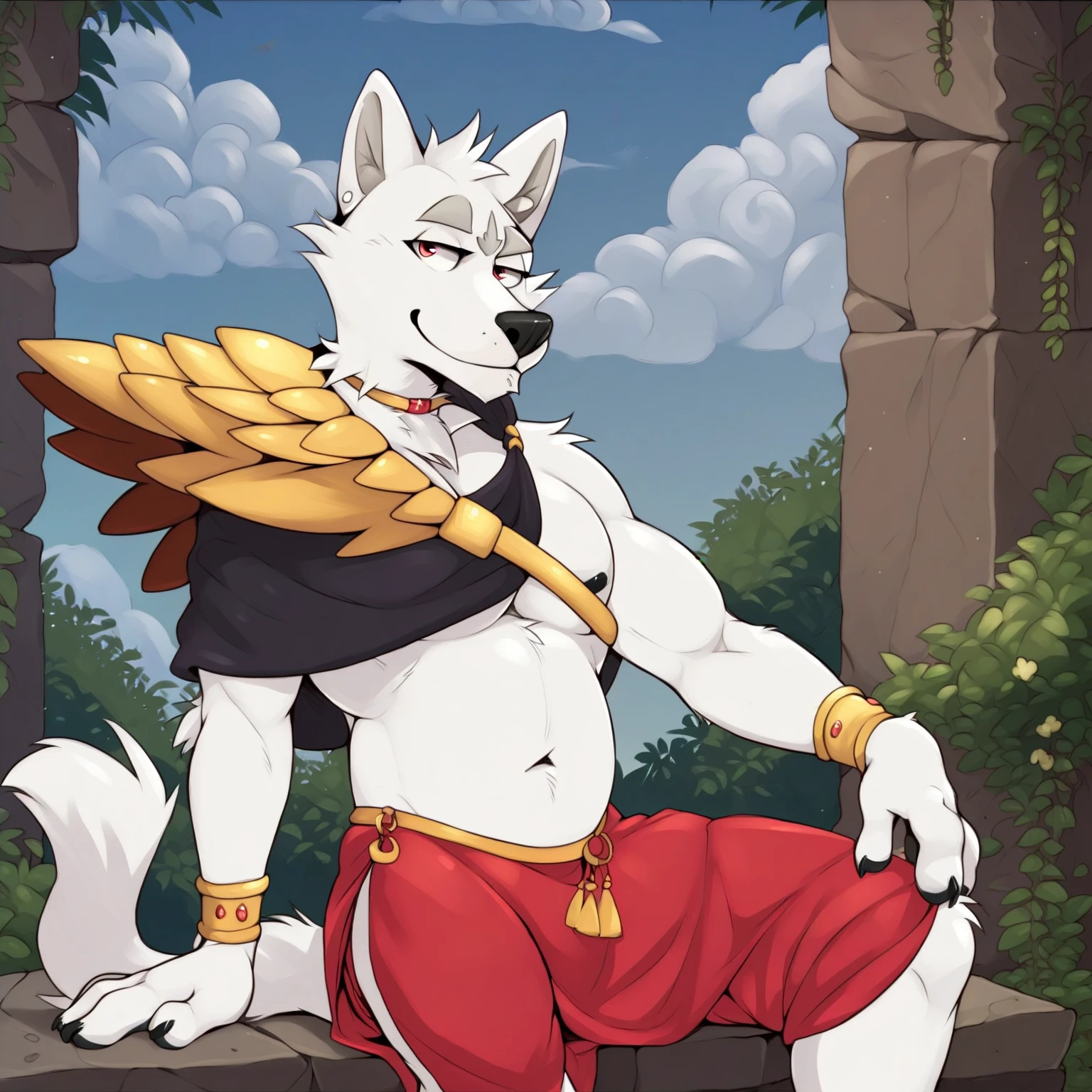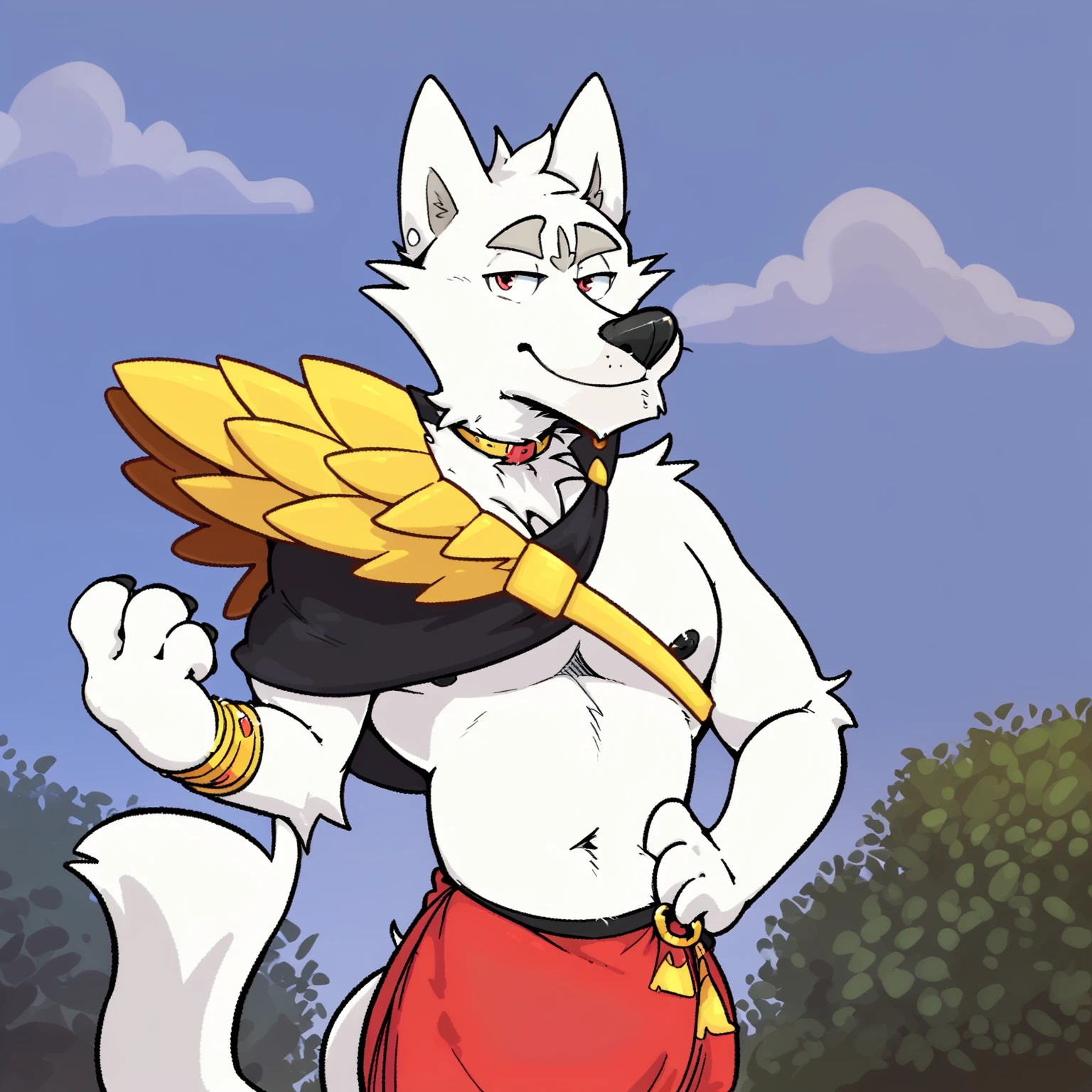 Reinforcement Prompts: " jewelry, shoulder armor, capelet, red bottomwear, collar"