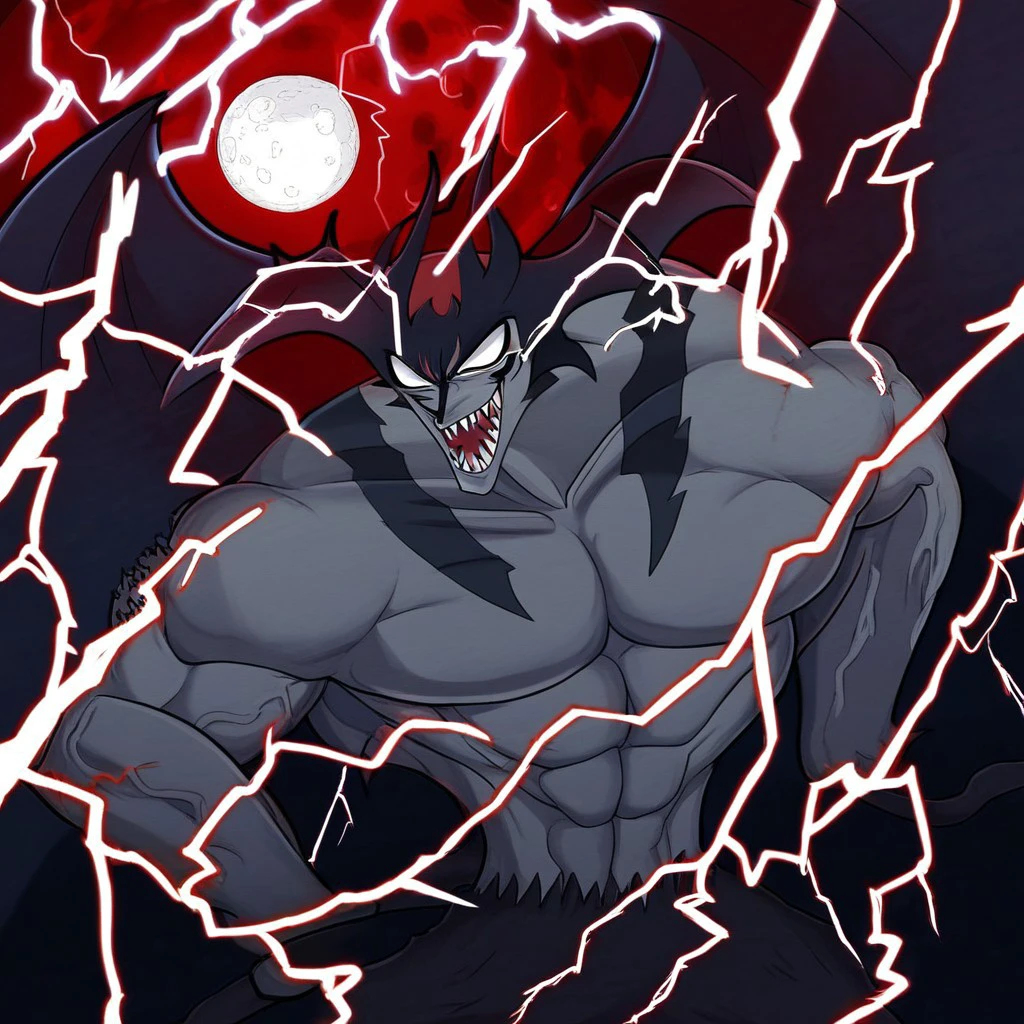 Demon, Devilman, no pupils, gray skin, sharp teeth,