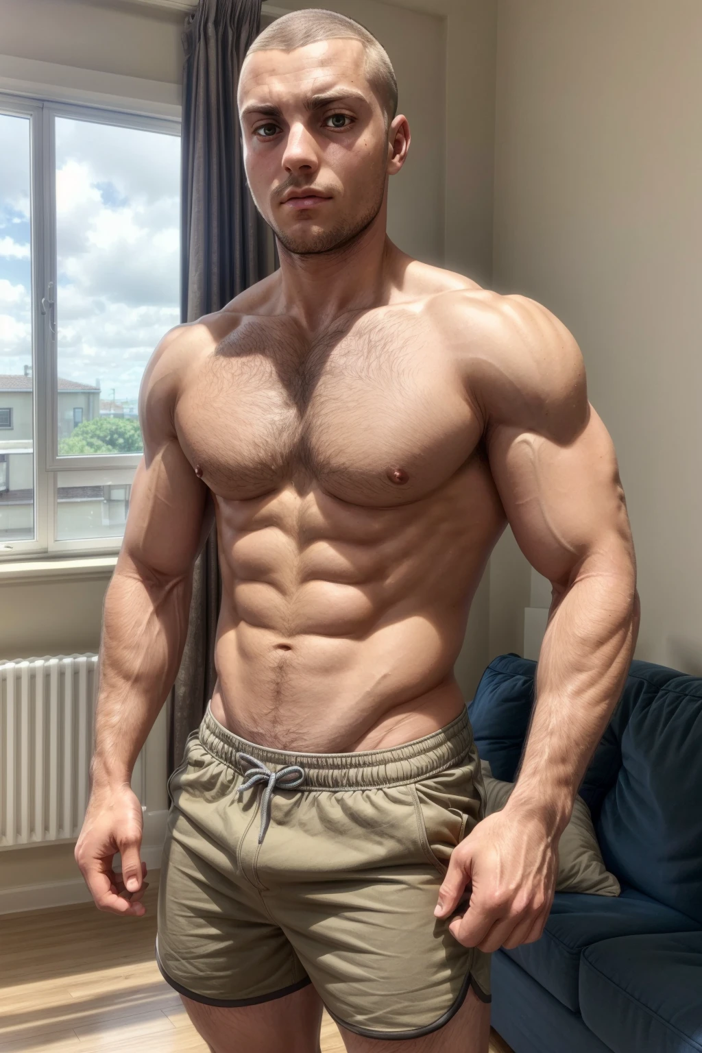 Best prompt is "connie springer, buzzcut, young man, athletic body"