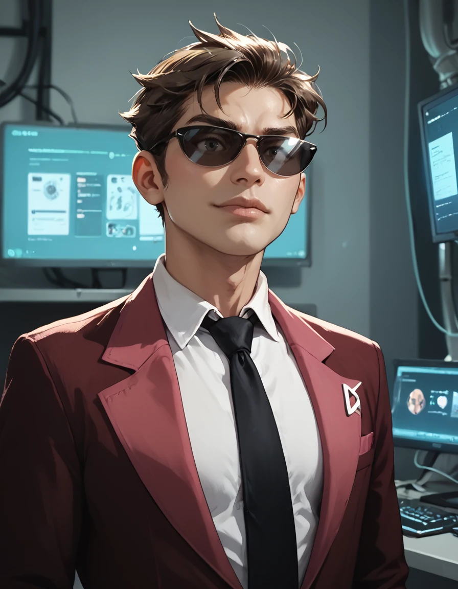 agent1, 1boy, brown hair, black eyes V2 outfit tags are as follows: