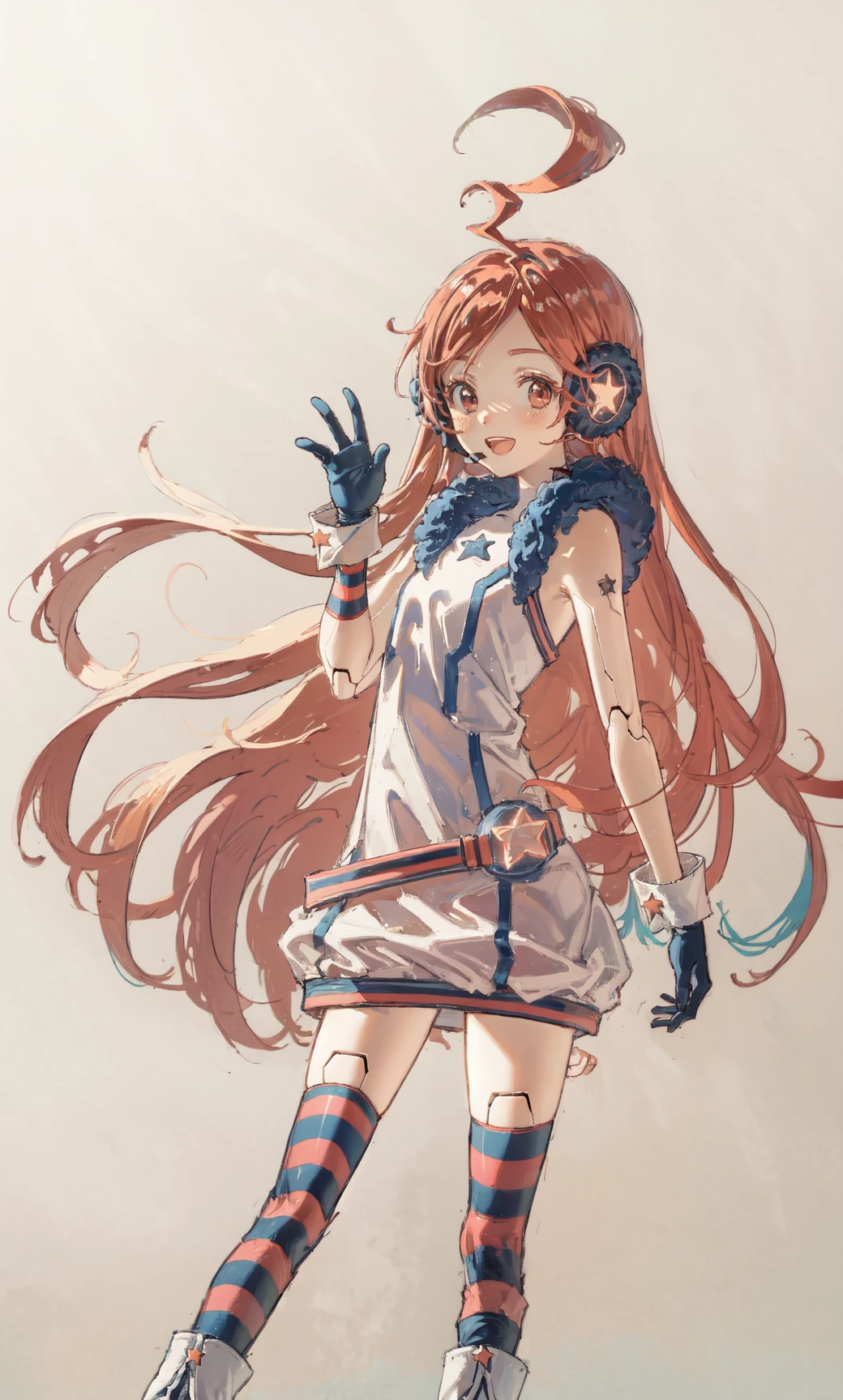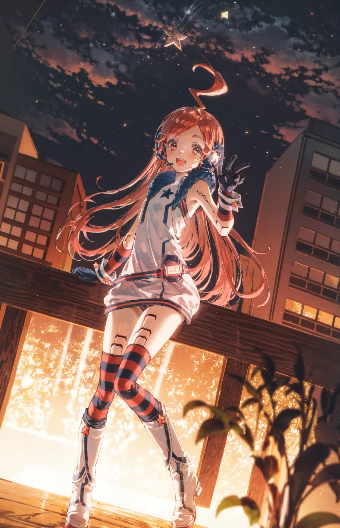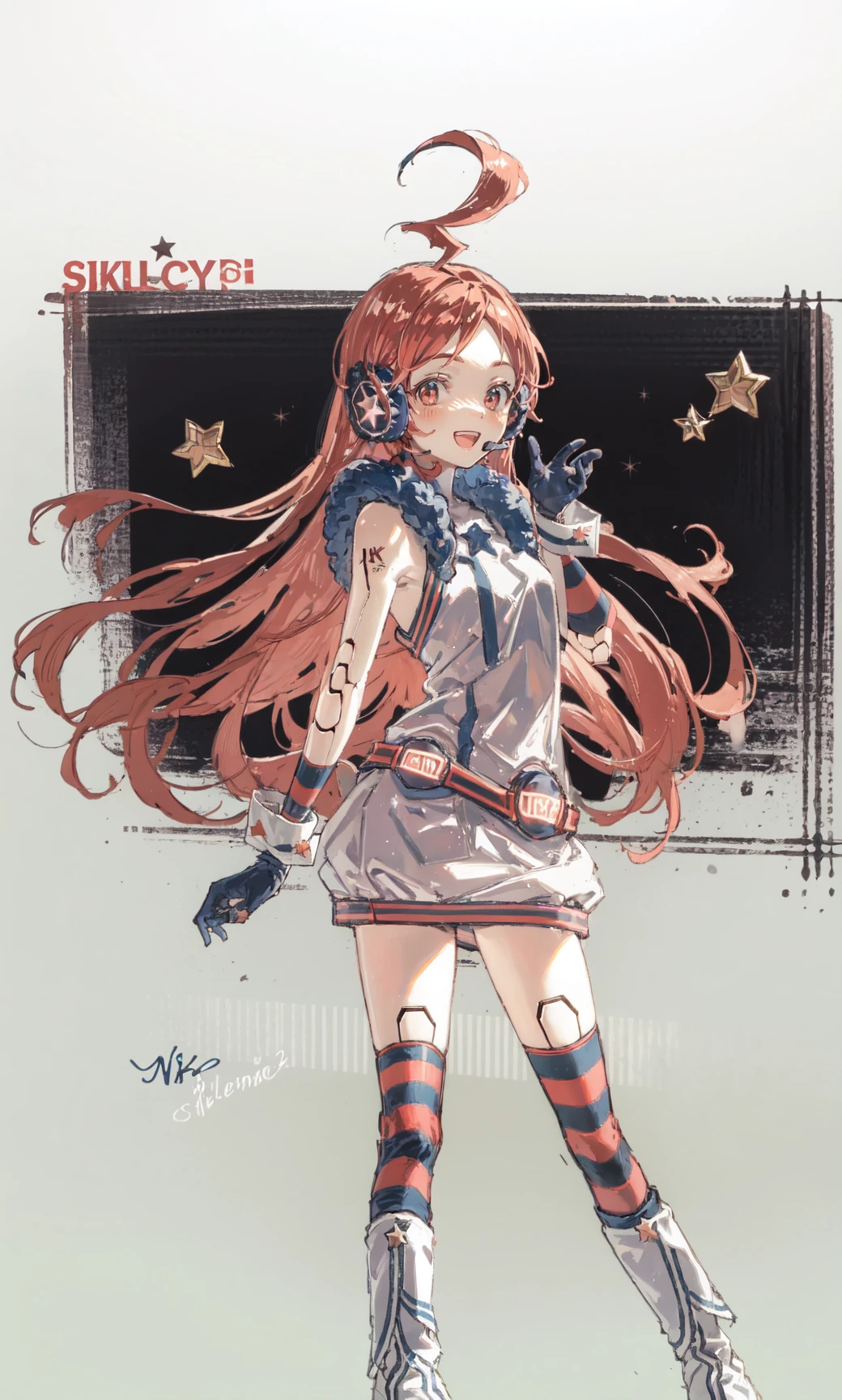 For body: belt, thighhighs, striped gloves, gloves, wrist cuffs, striped legwear, tube dress, fur collar, multicolored clothes, socks, kneehighs, multicolored legwear, sleeveless, star \(symbol\)