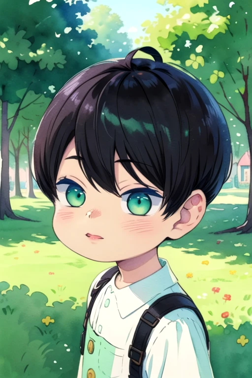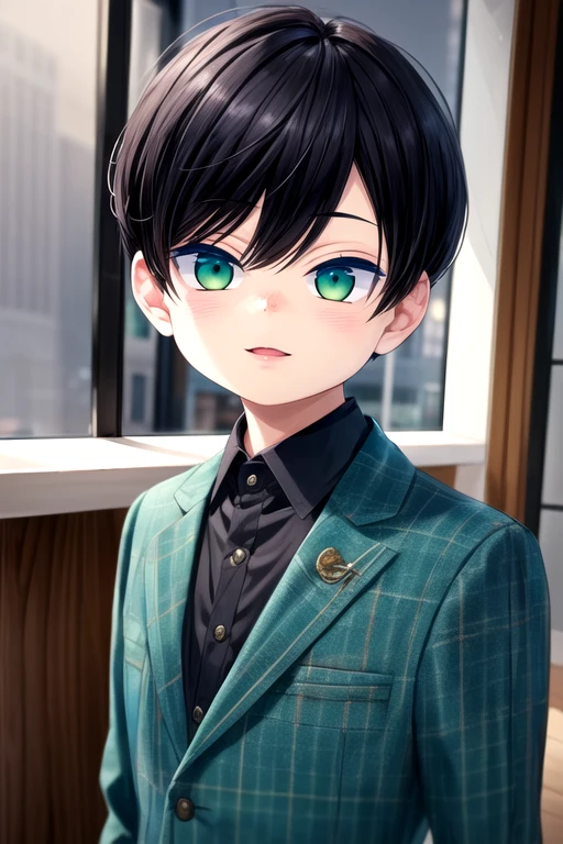 gakuto_yuzuki, black hair, green eyes, short hair, child