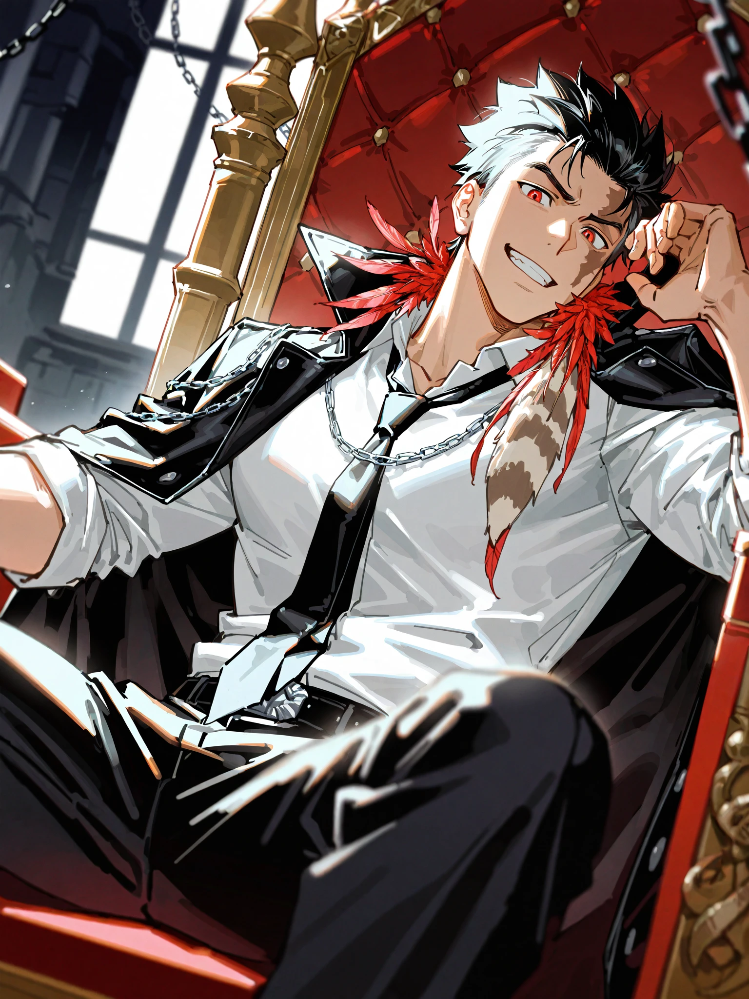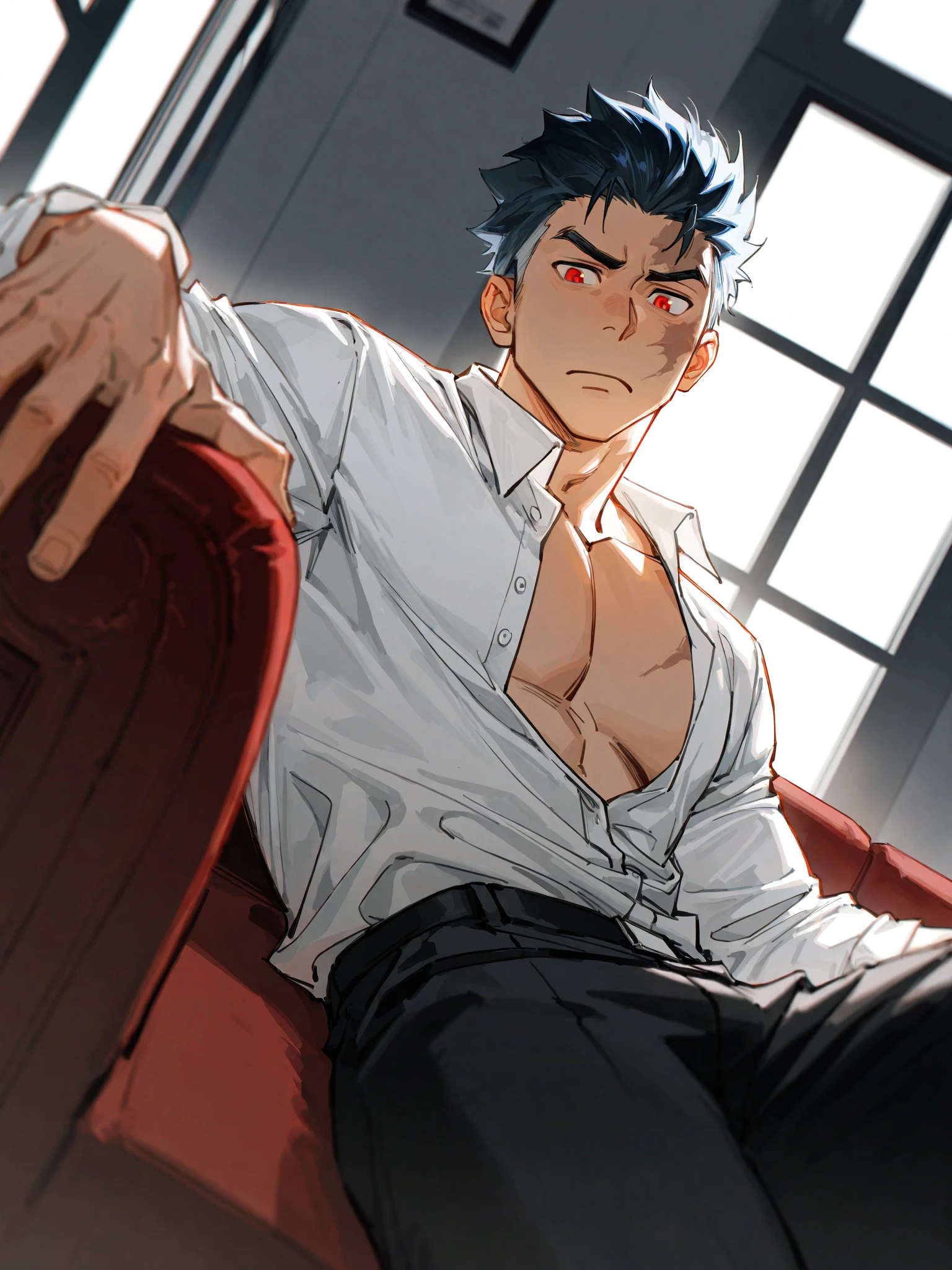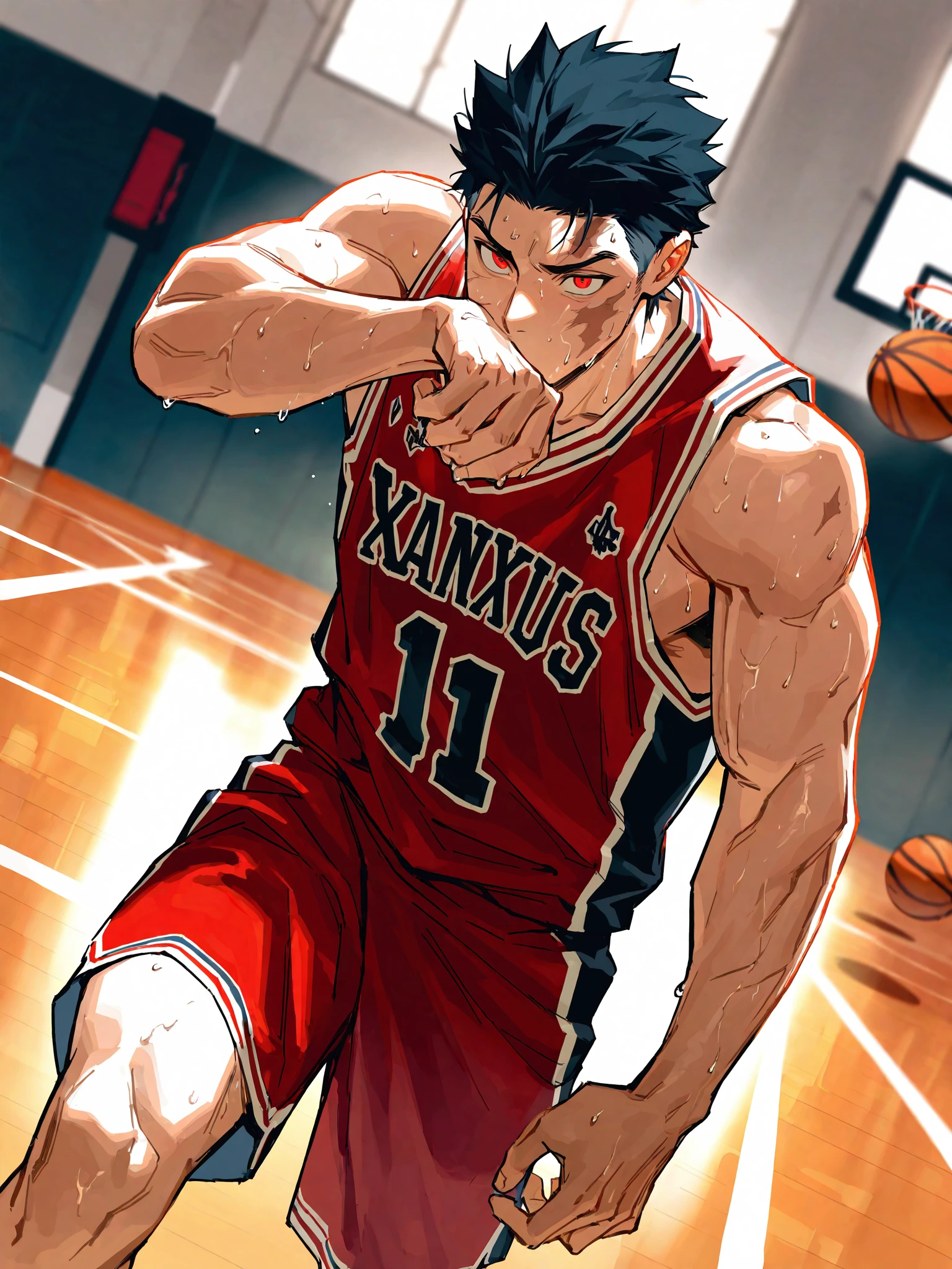 Xanxus,black spiked hair,red eyes,scar on face,1boy,male focus,solo,