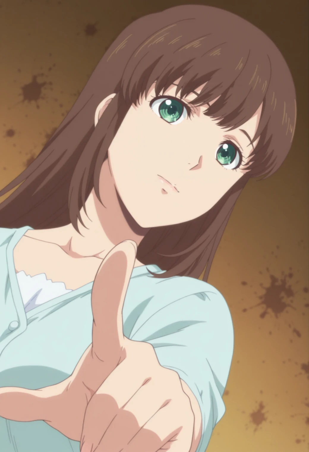 tachibana hina,green eyes, brown hair, long hair, hair down,