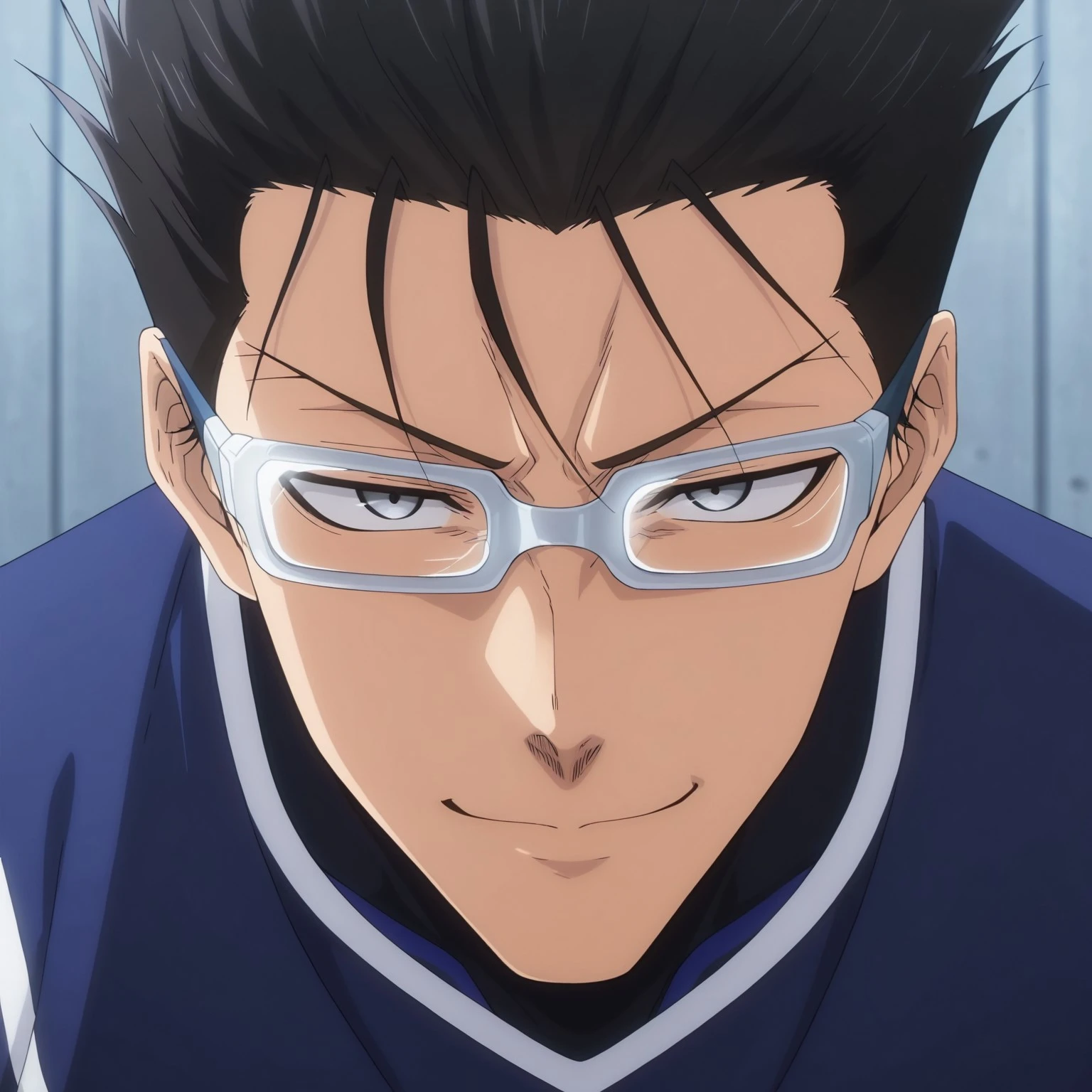 Zantetsu, black hair, hair between eyes, grey eyes, glasses, sportswear