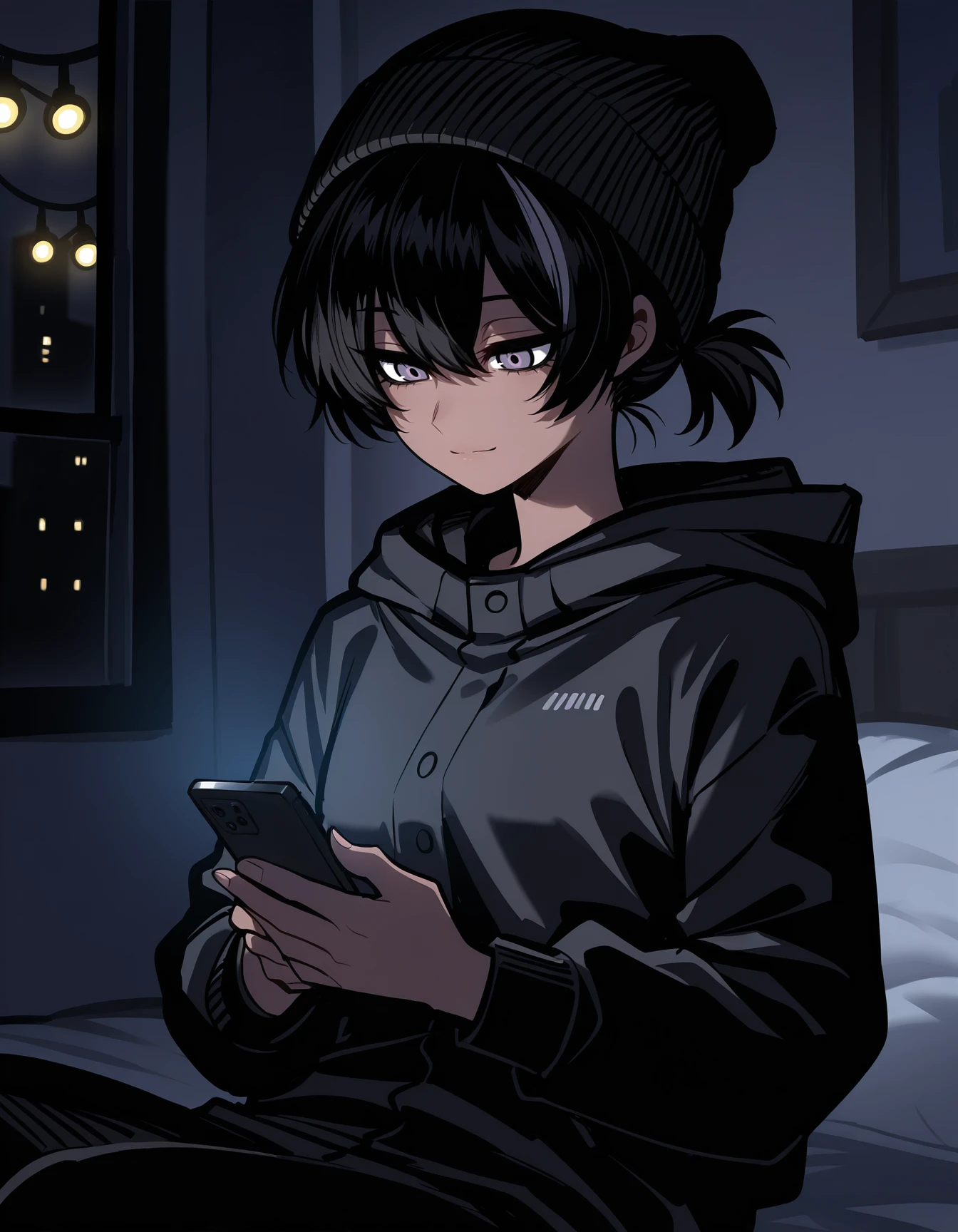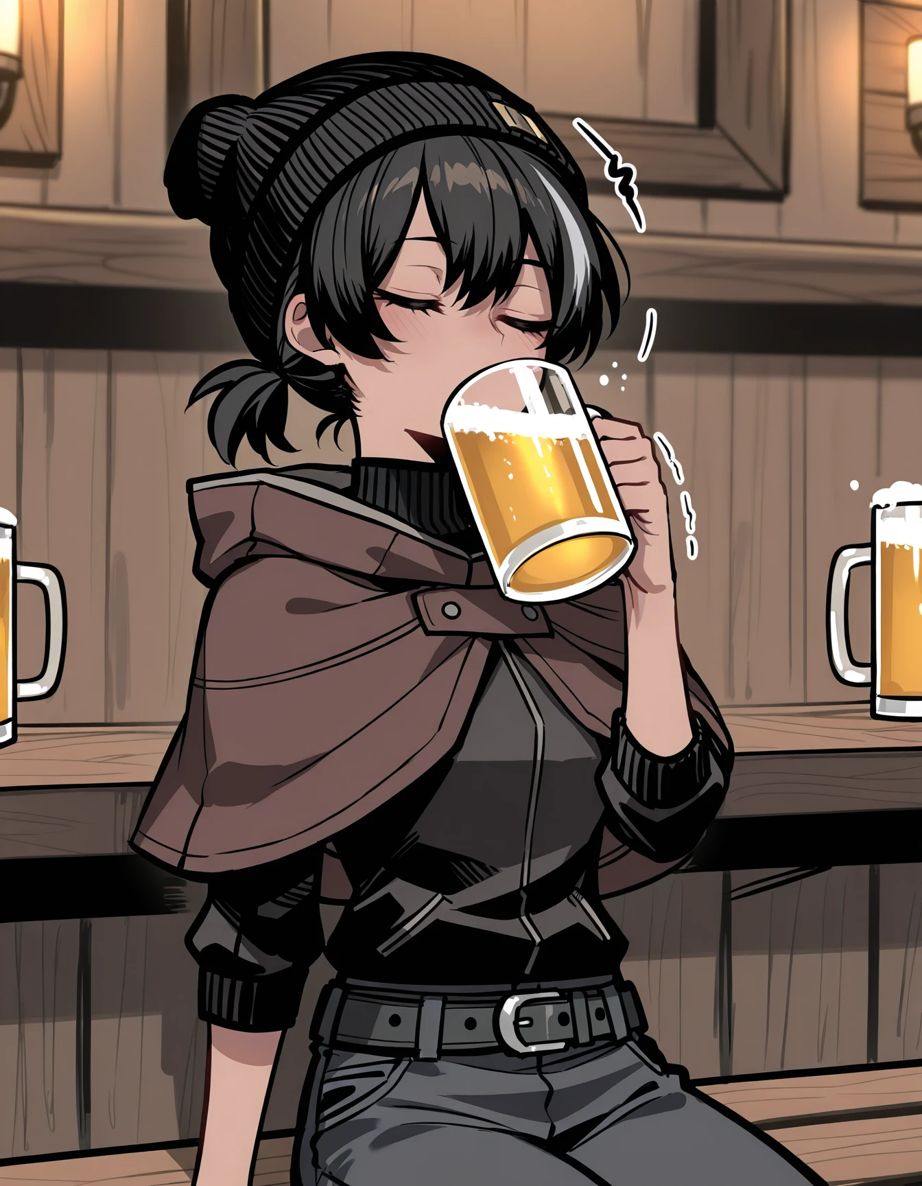 le0th13f, beanie, short ponytail, capelet, jacket, hooded jacket, belt, pants