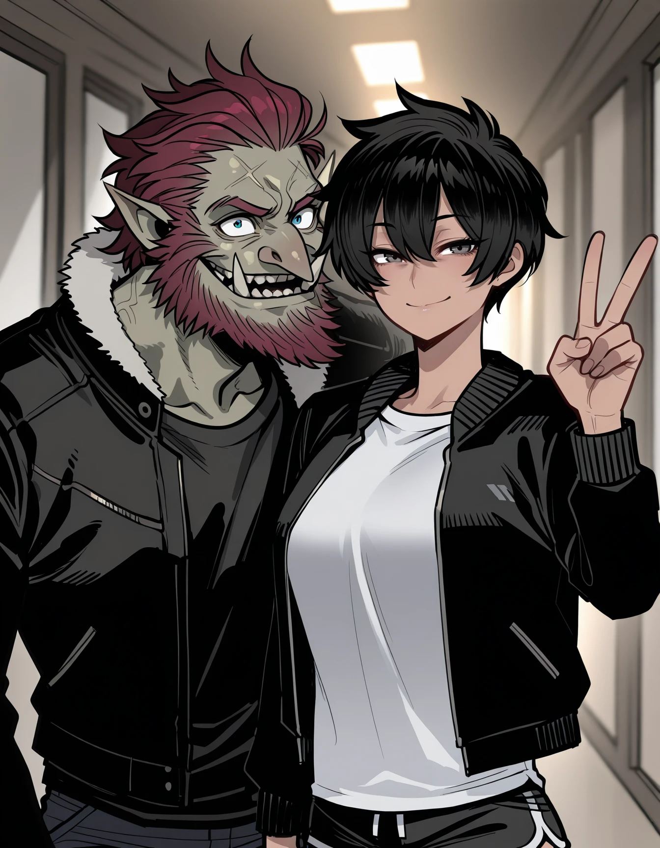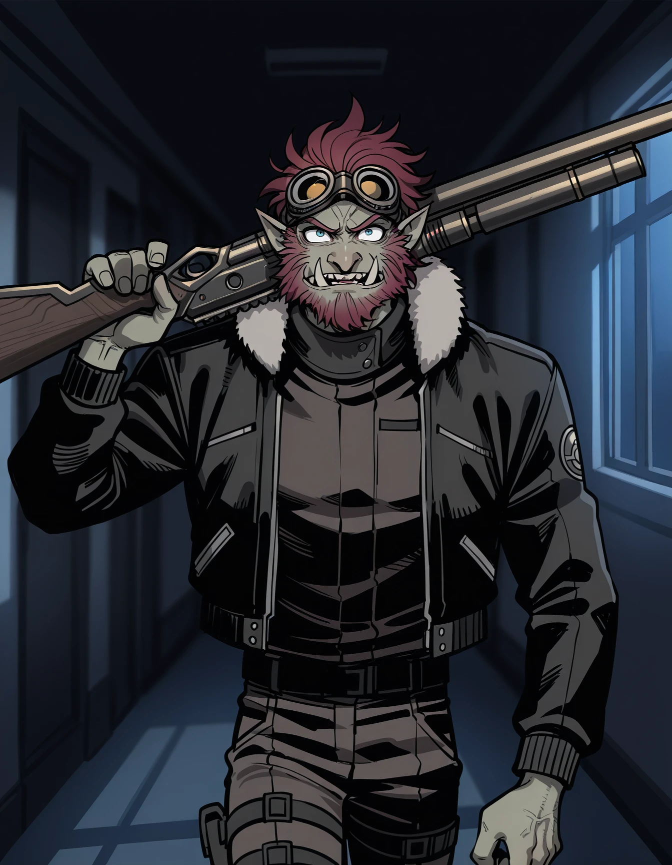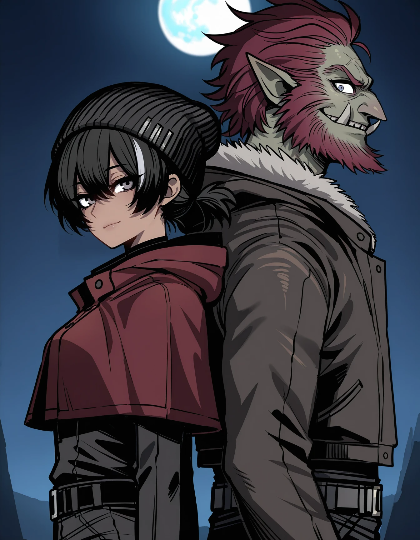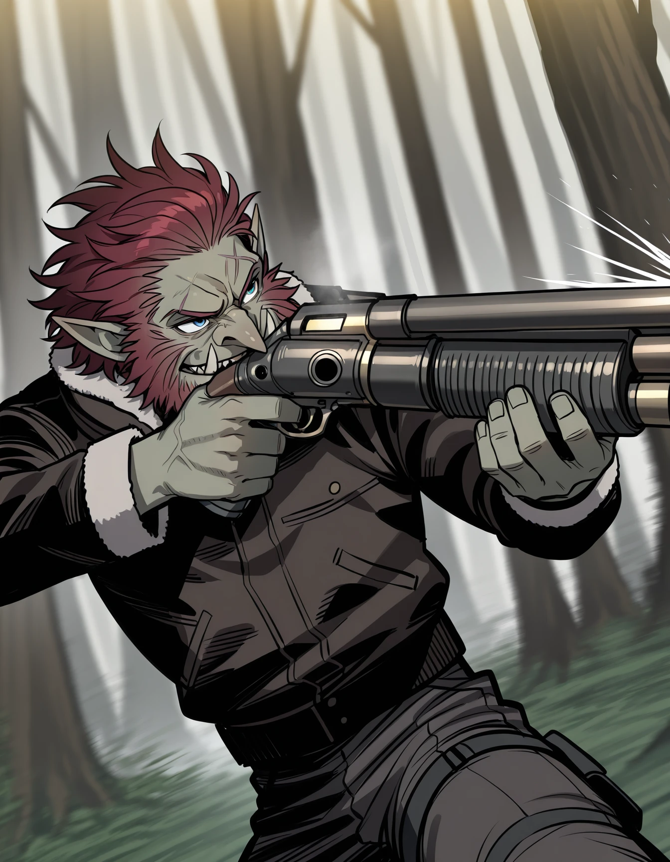 brug07r0l7, (red hair:0.4), troll, jacket, (fur trim:0.4)