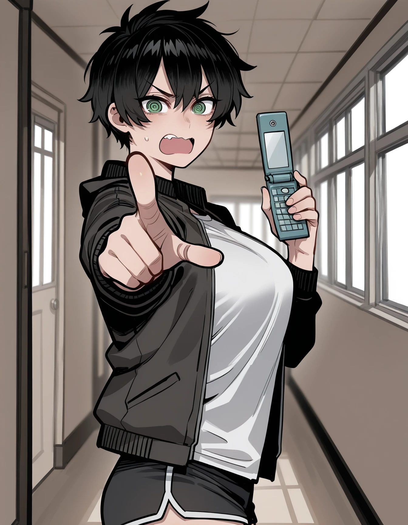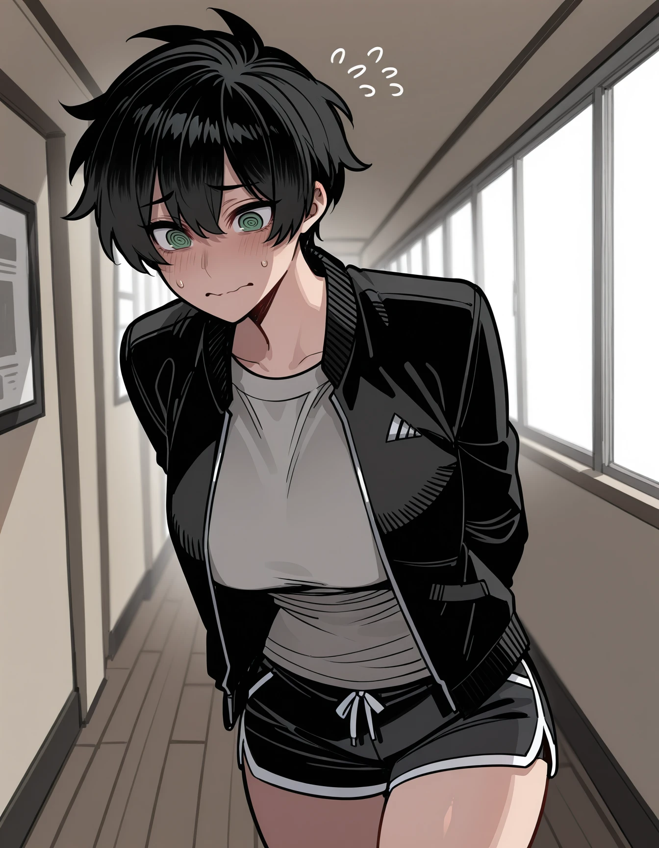 t0mb0ys1s, black jacket, open jacket, shirt, dolphin shorts