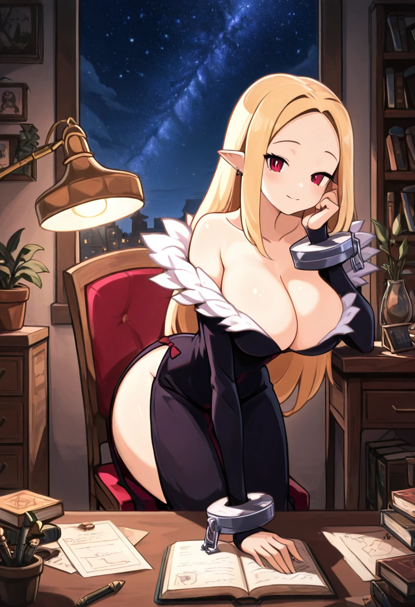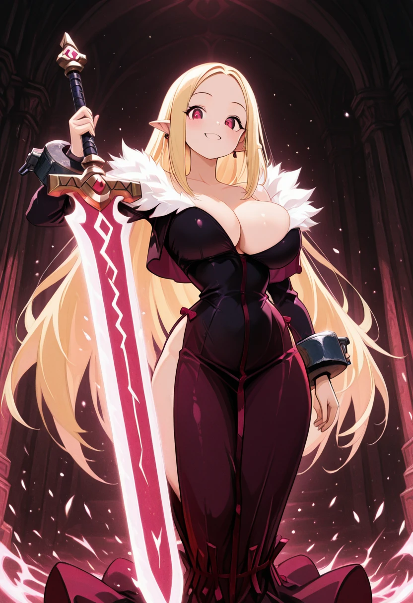 zzHealer, blonde hair, long hair, pointy ears, swept bangs,