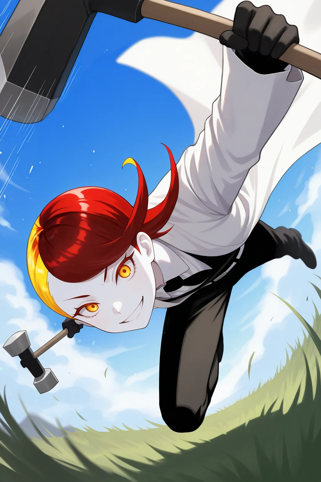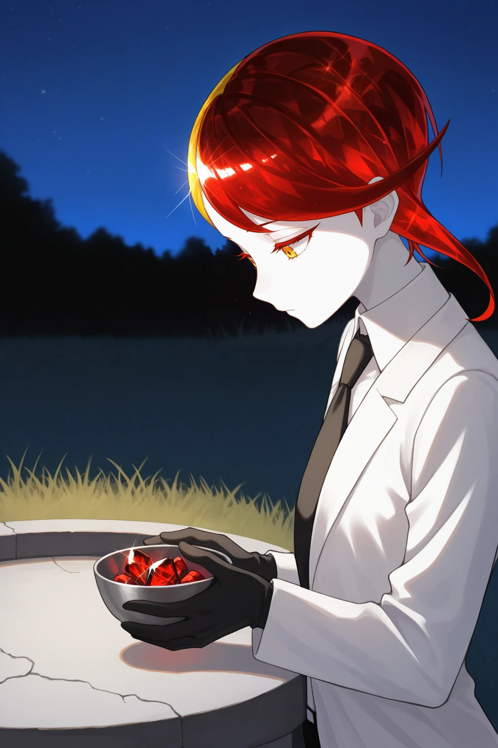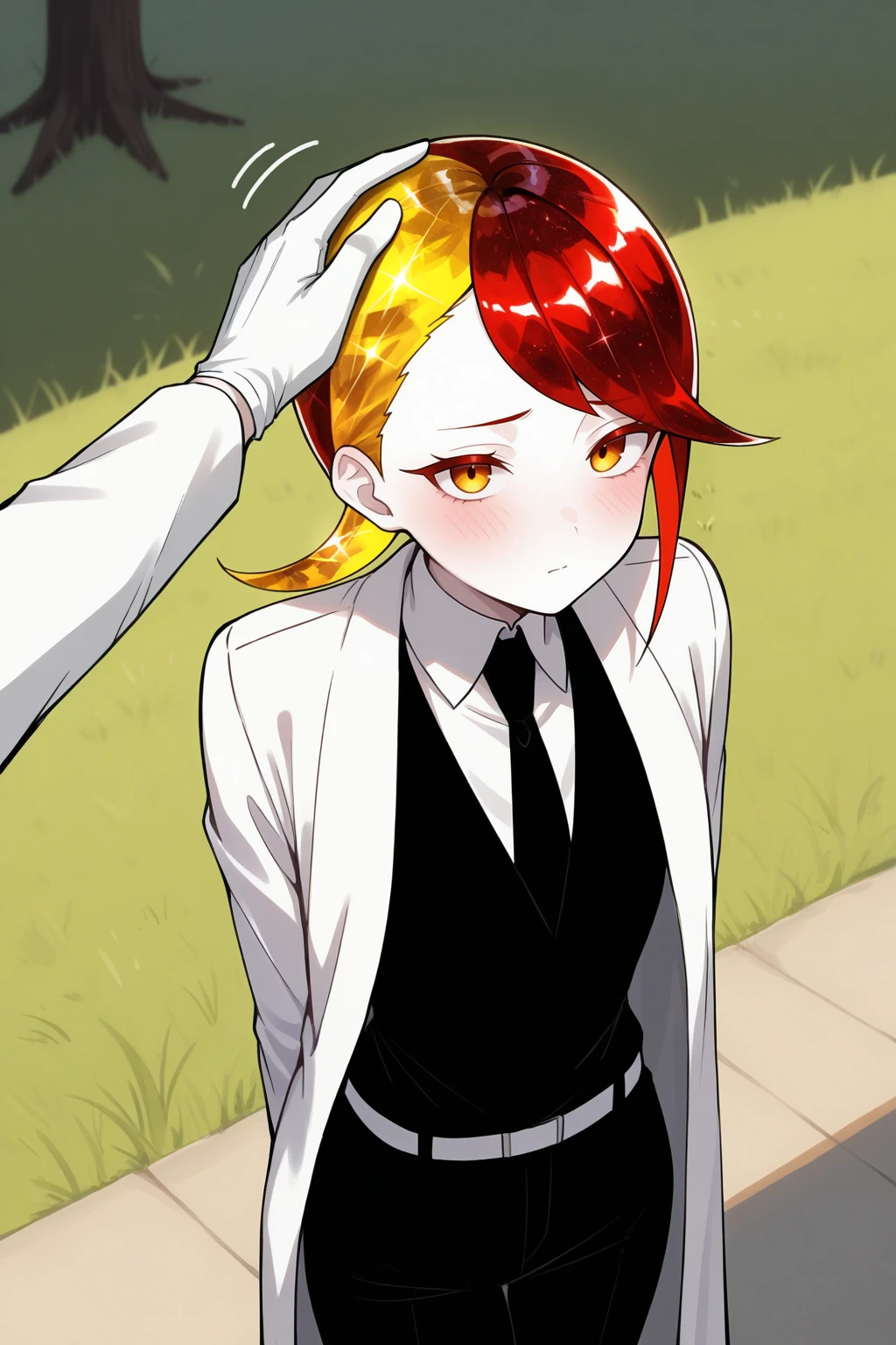 Appearance : 1other, rut1le, white skin, crystal hair, colored eyelashes, multicolored hair, two-tone hair, yellow hair, red hair, short hair, yellow eyes