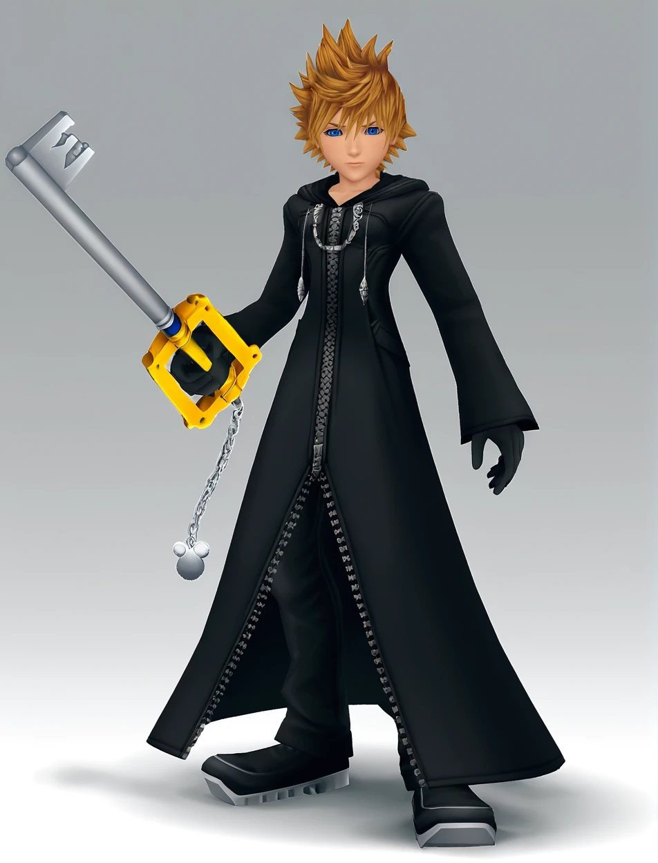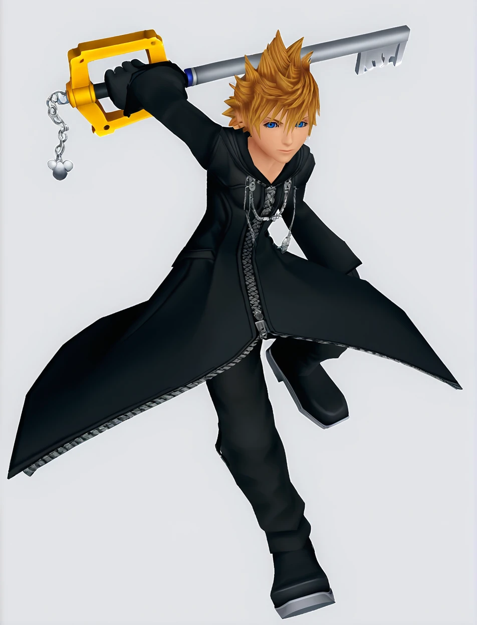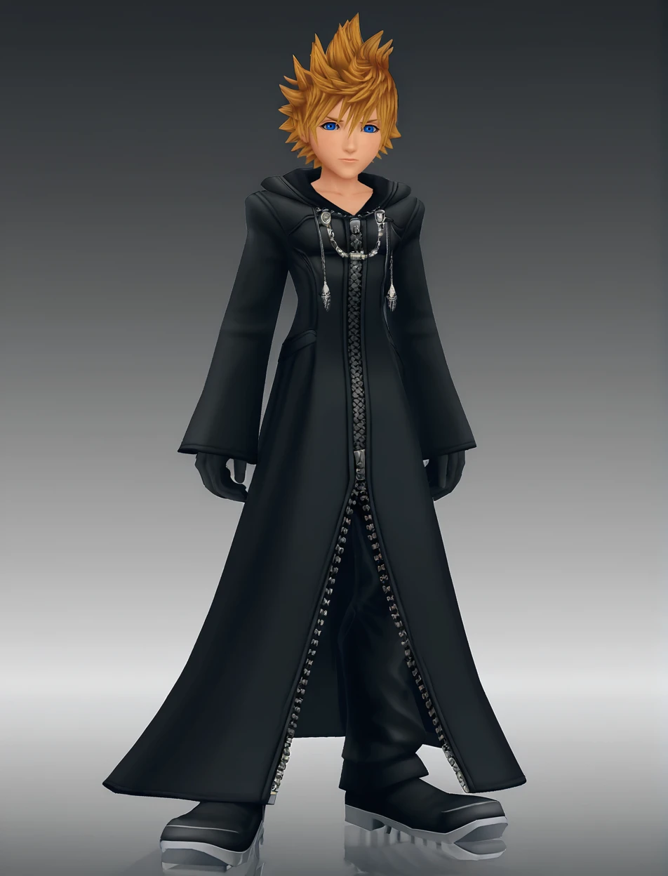 Adjust these keywords depending on the type of shot you want (close-up, mid-body, or full body).For Roxas’s black Organization XIII coat, use the following keywords in the prompt:“kh_org_outfit, black coat, black gloves, black boots, plain black footwear, simple black shoes.”