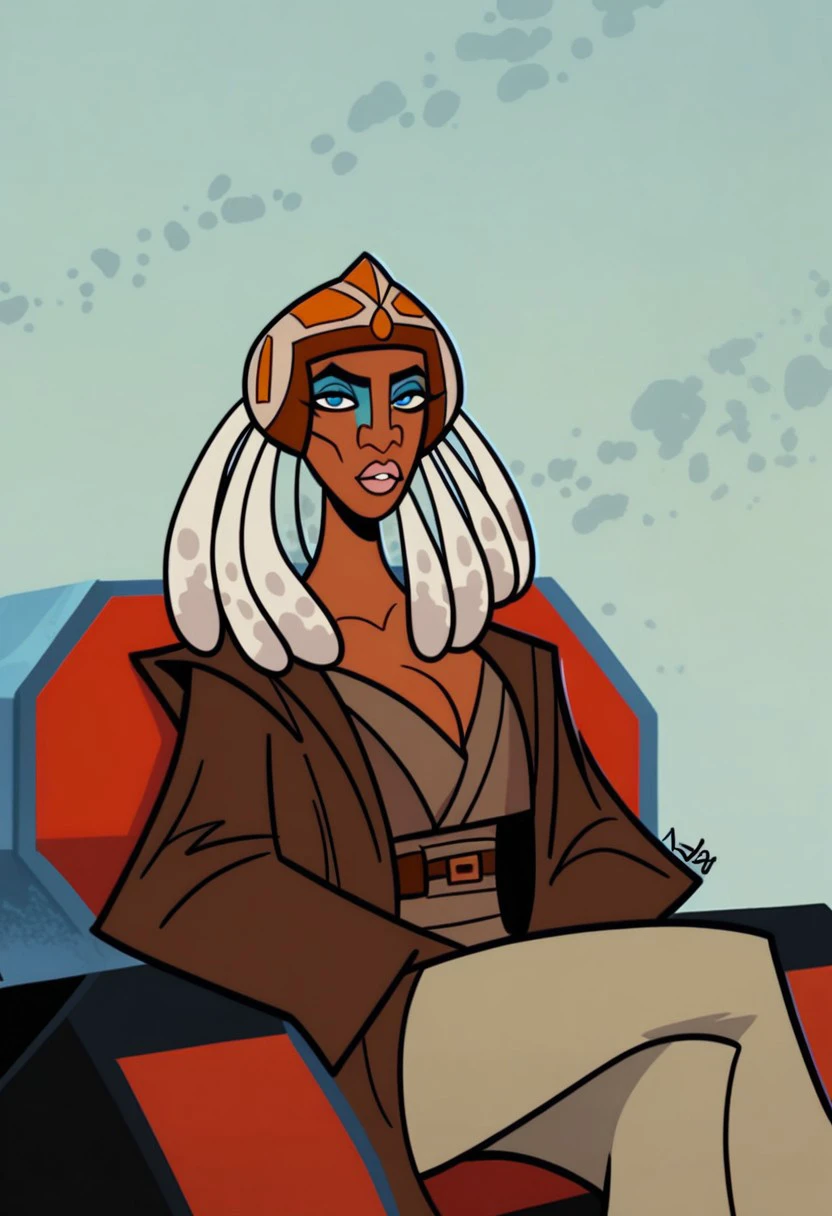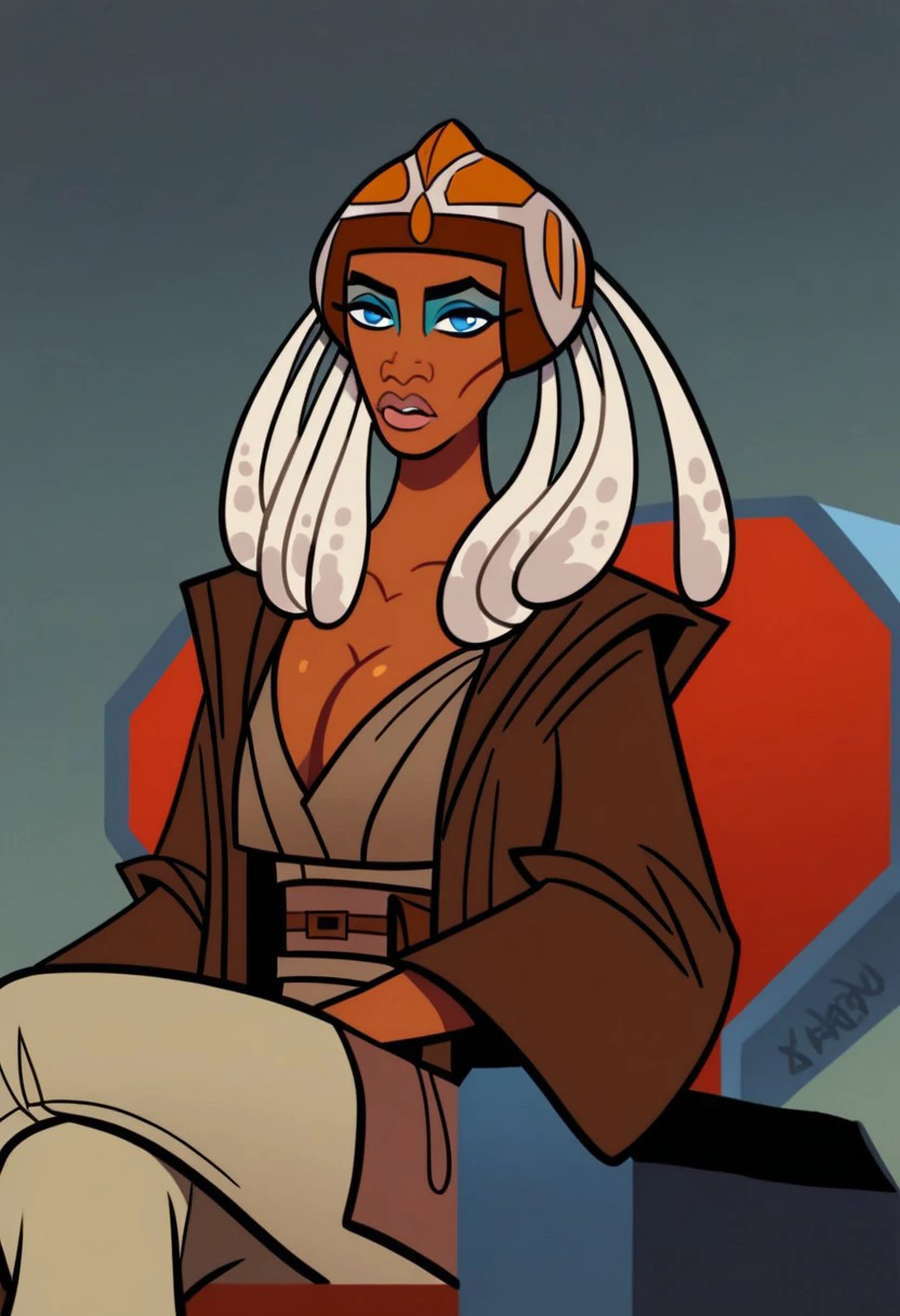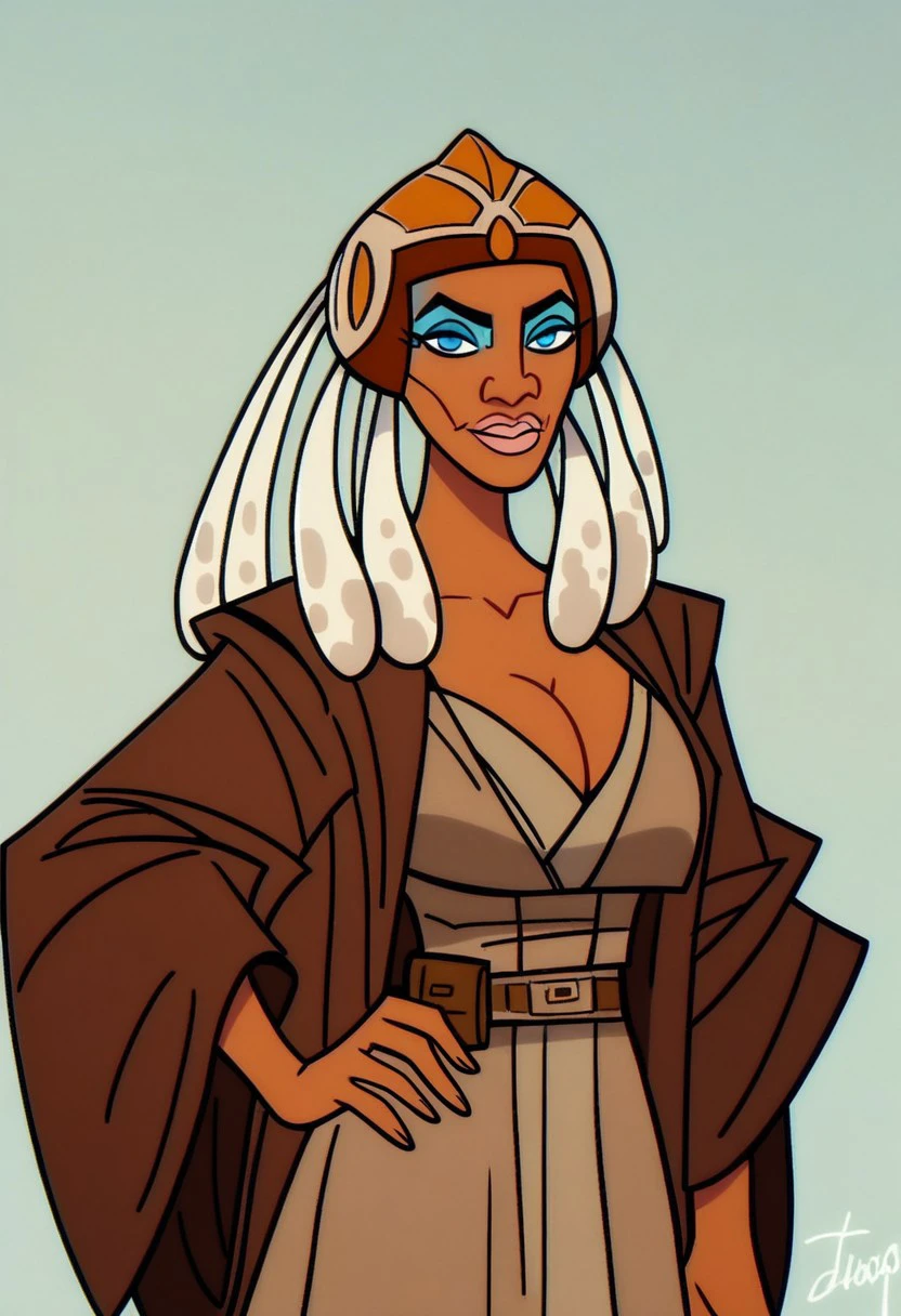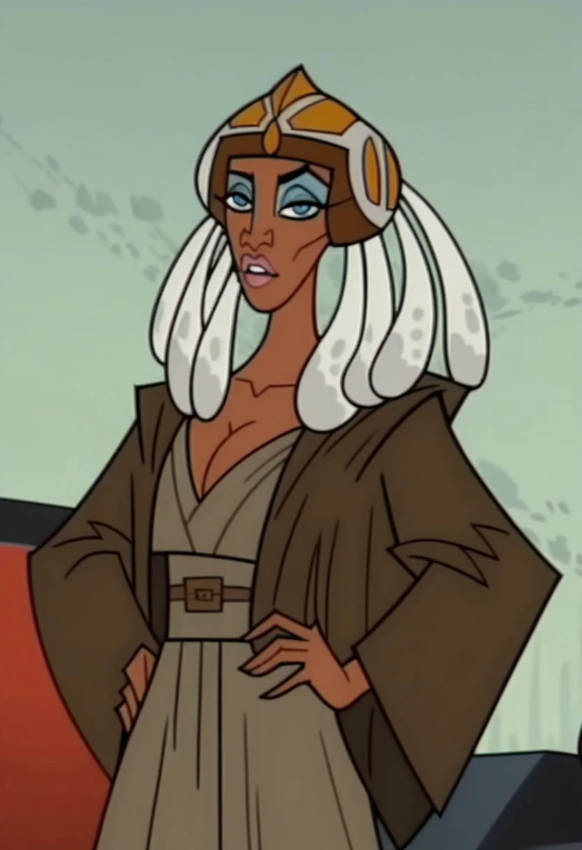 I find it rather funny how Genndy depicted her as this wise but stern and stoic older female authority figure with noticeable pronounced cleavage while in the 3D Clone Wars series she looks like a kid version of herself.