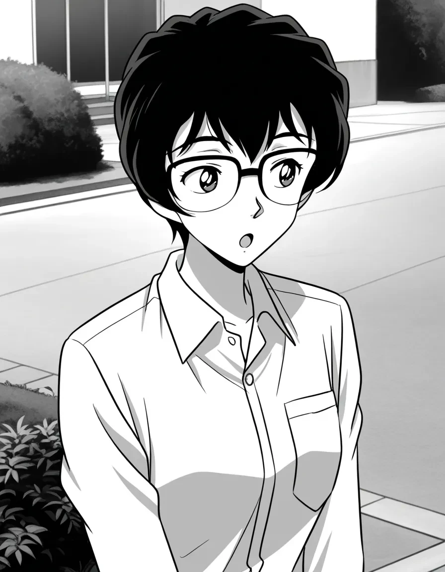 short hair,white shirt,collared shirt, pocket,