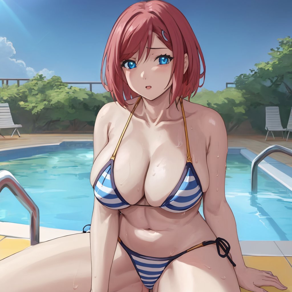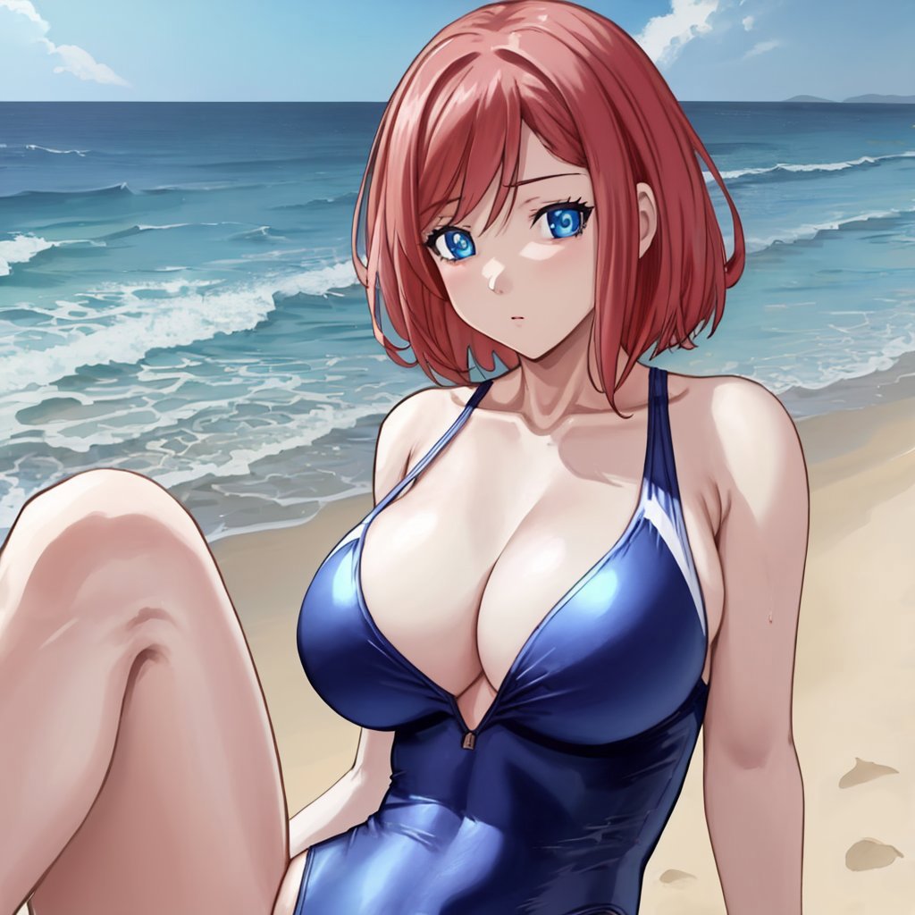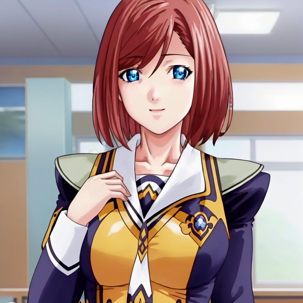 Use blue_eyes and short hair tags and don't expect her school uniform to generate properly.