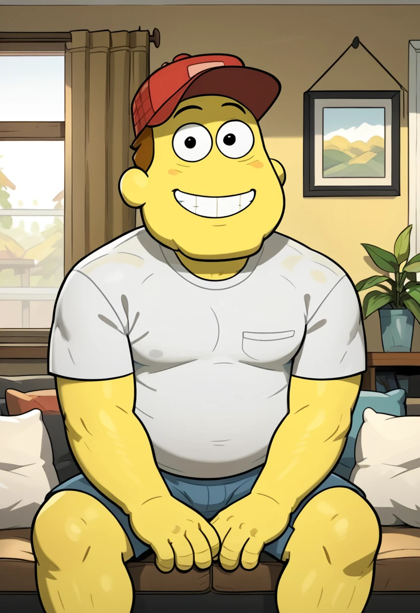 1boy, b1ll, male focus, yellow skin, shirt, hat, solo,