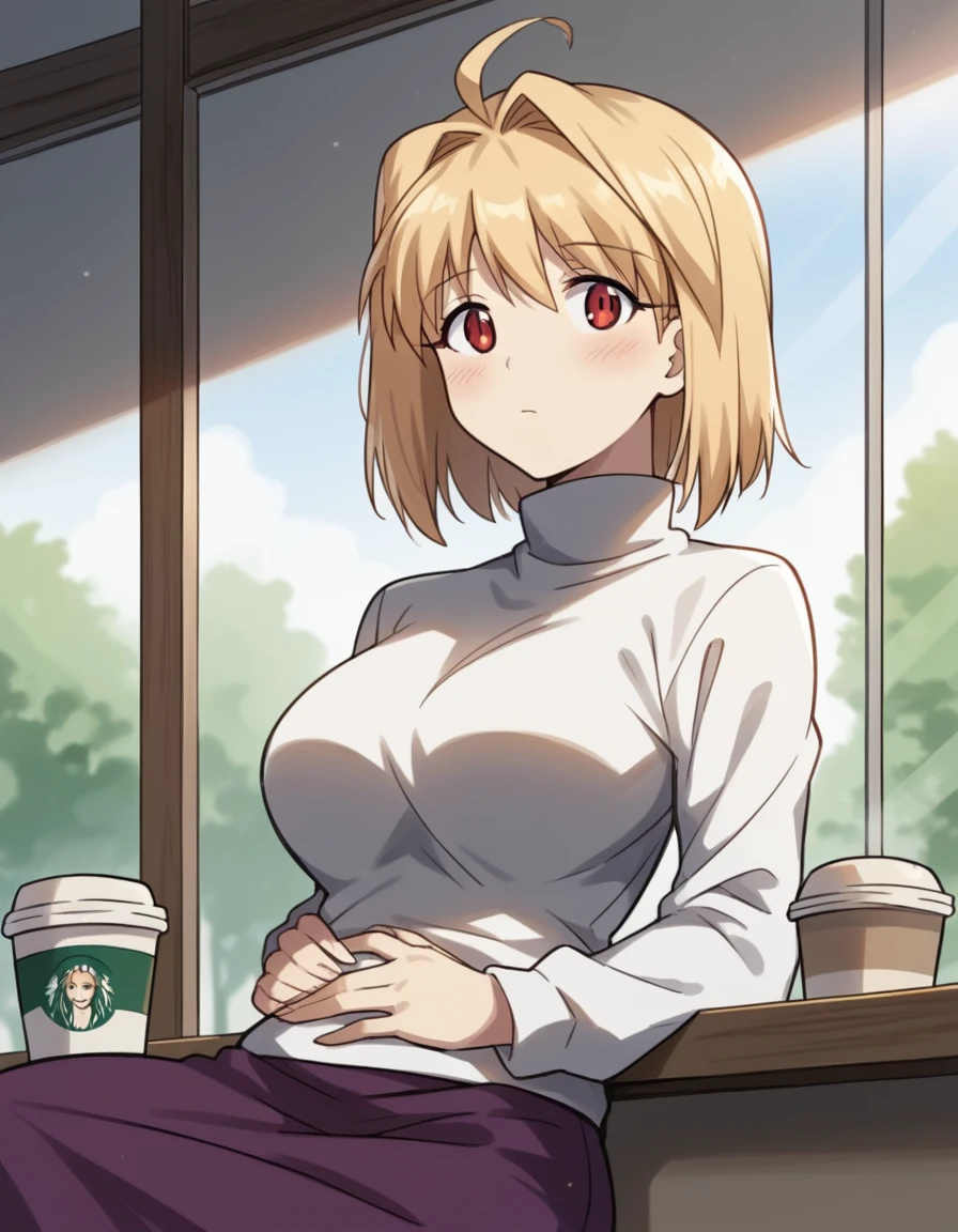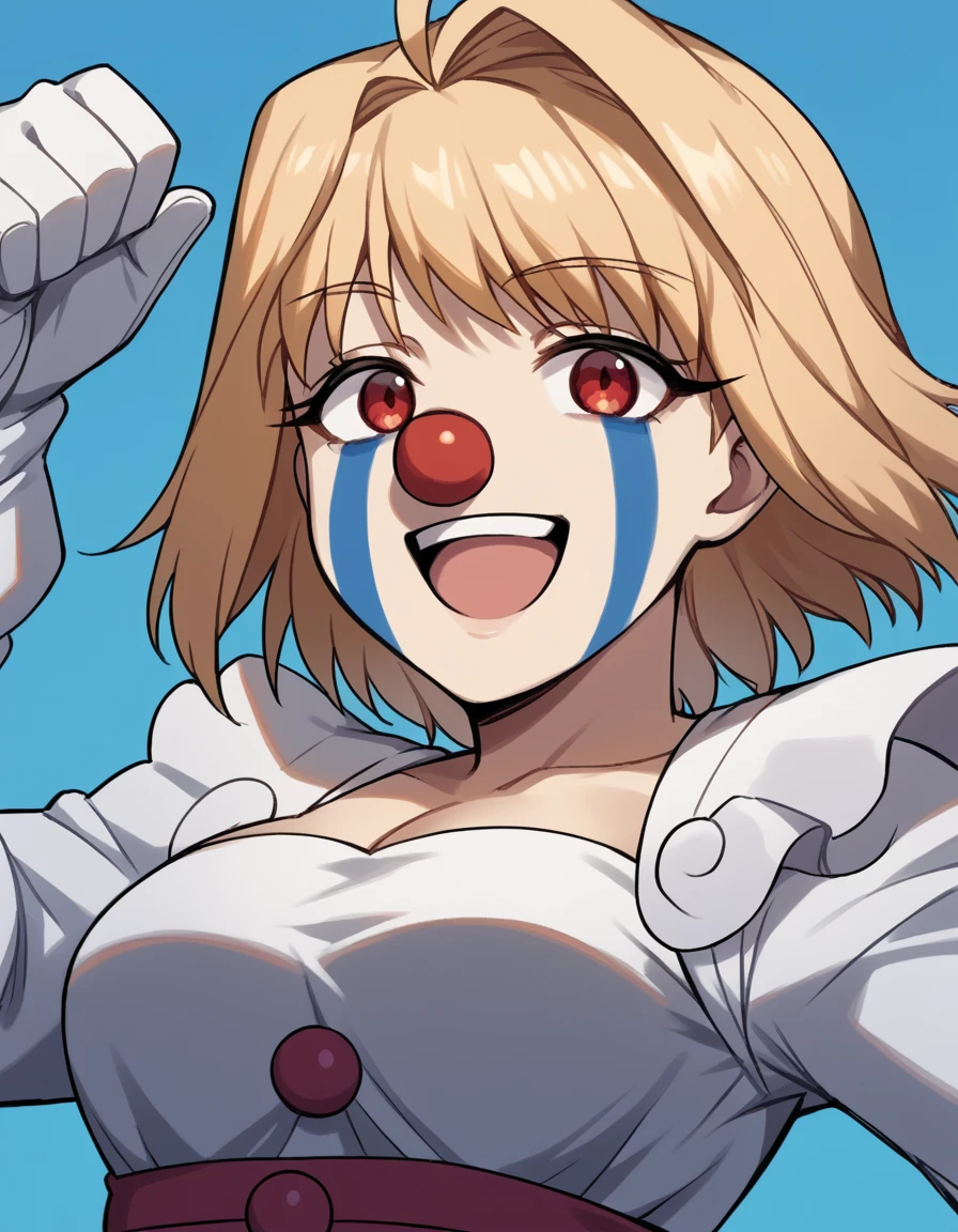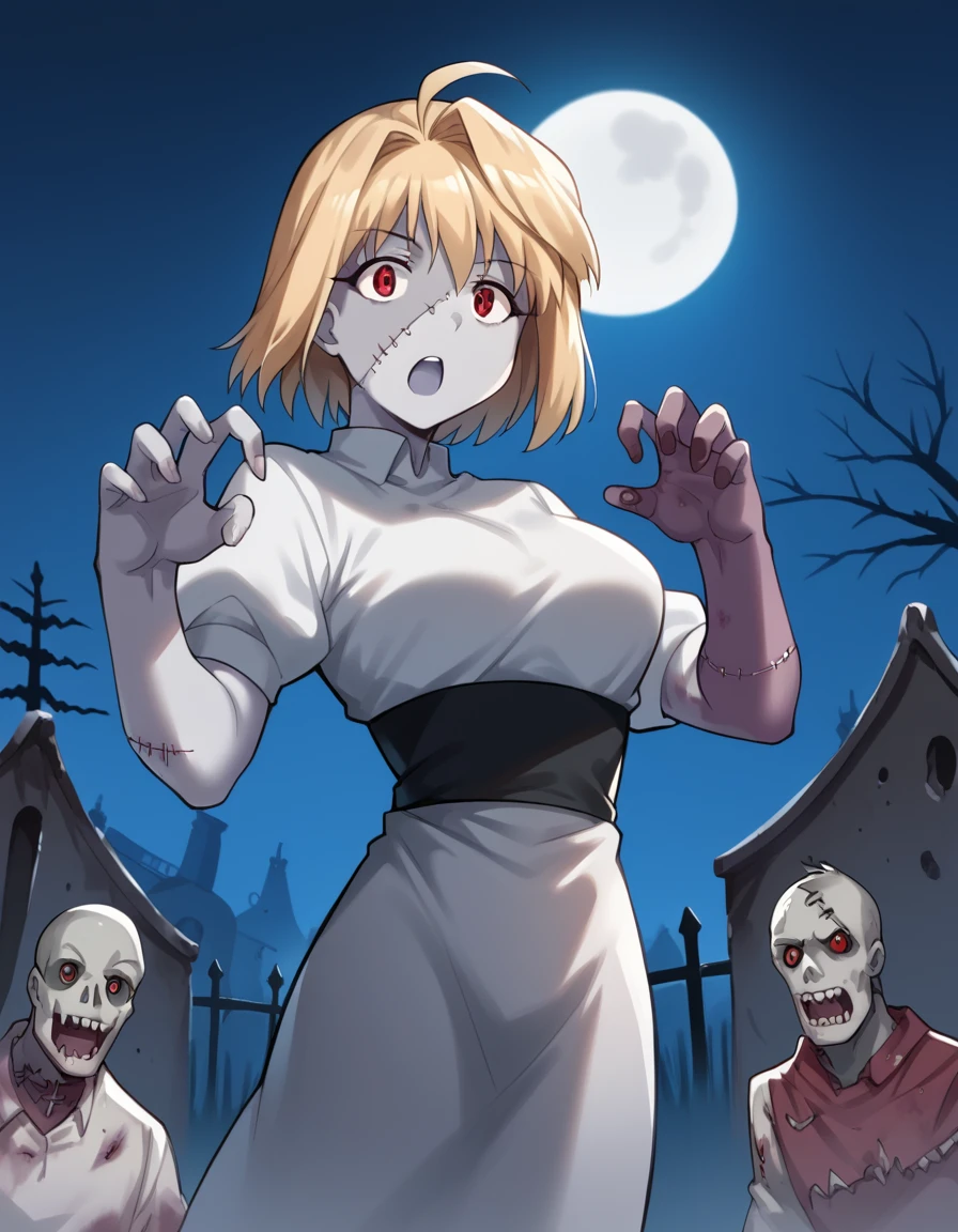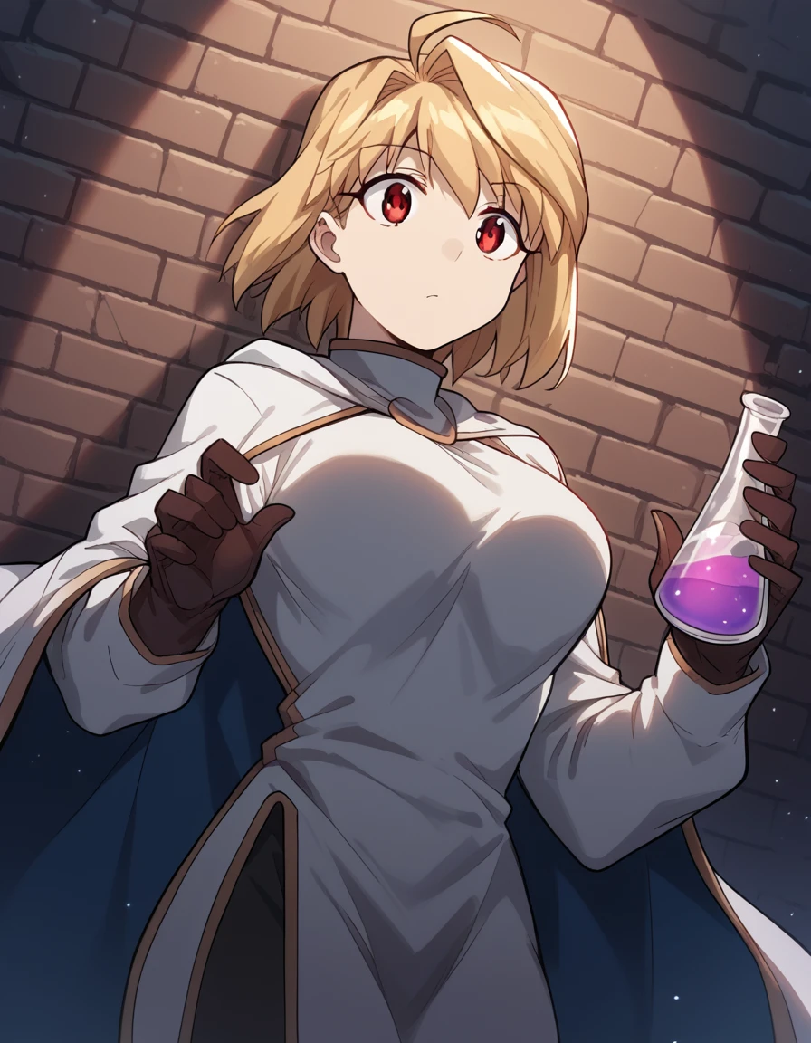 arcueid brunestud, blonde hair, red eyes, short hair, ahoge, large breasts,