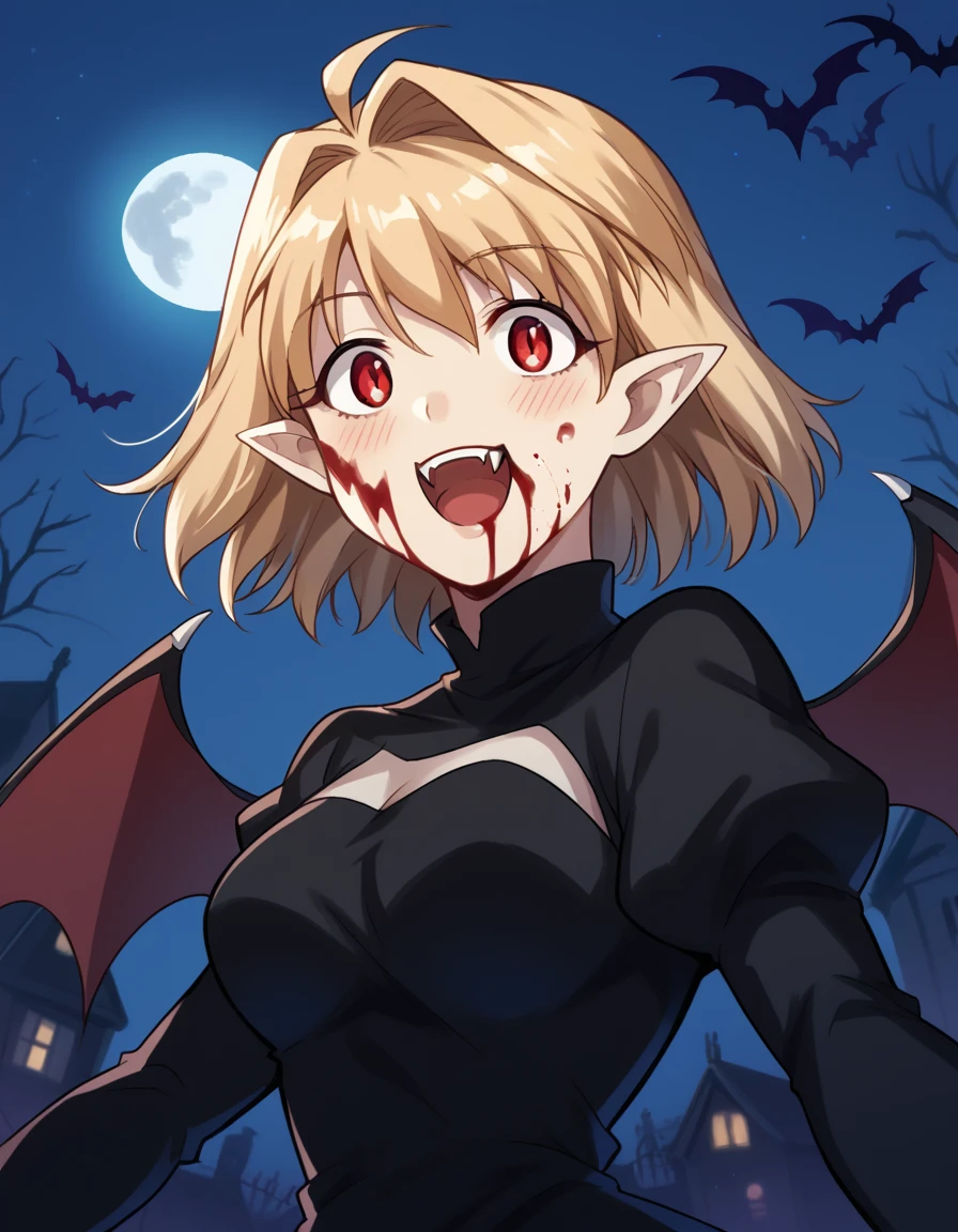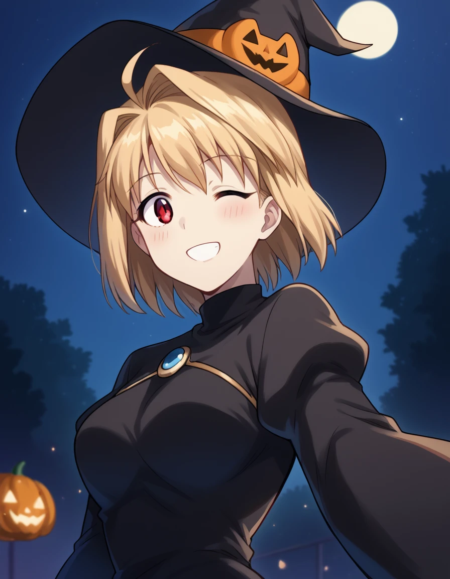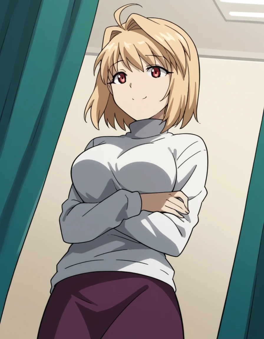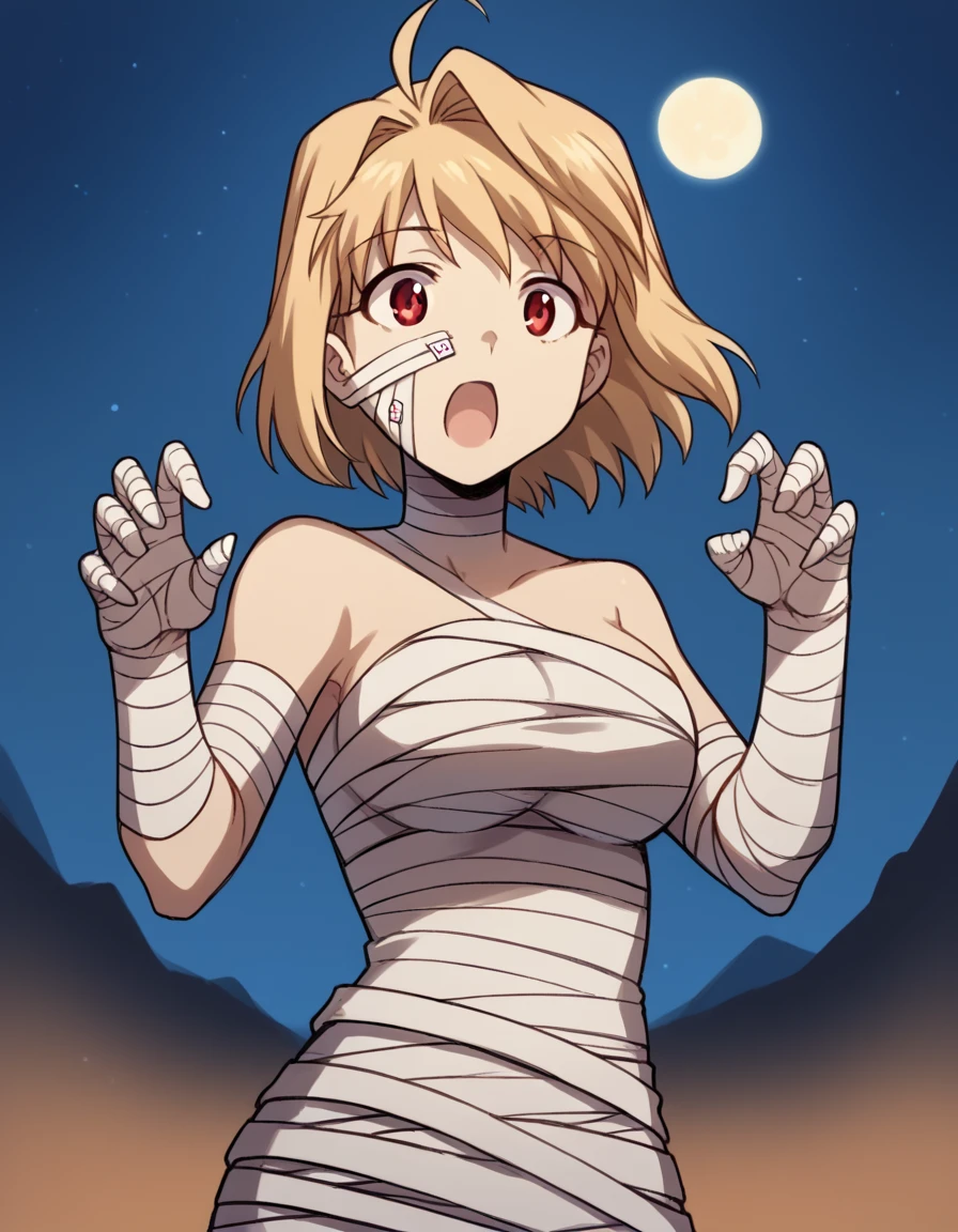 arcueid brunestud, blonde hair, red eyes, short hair, ahoge, large breasts,