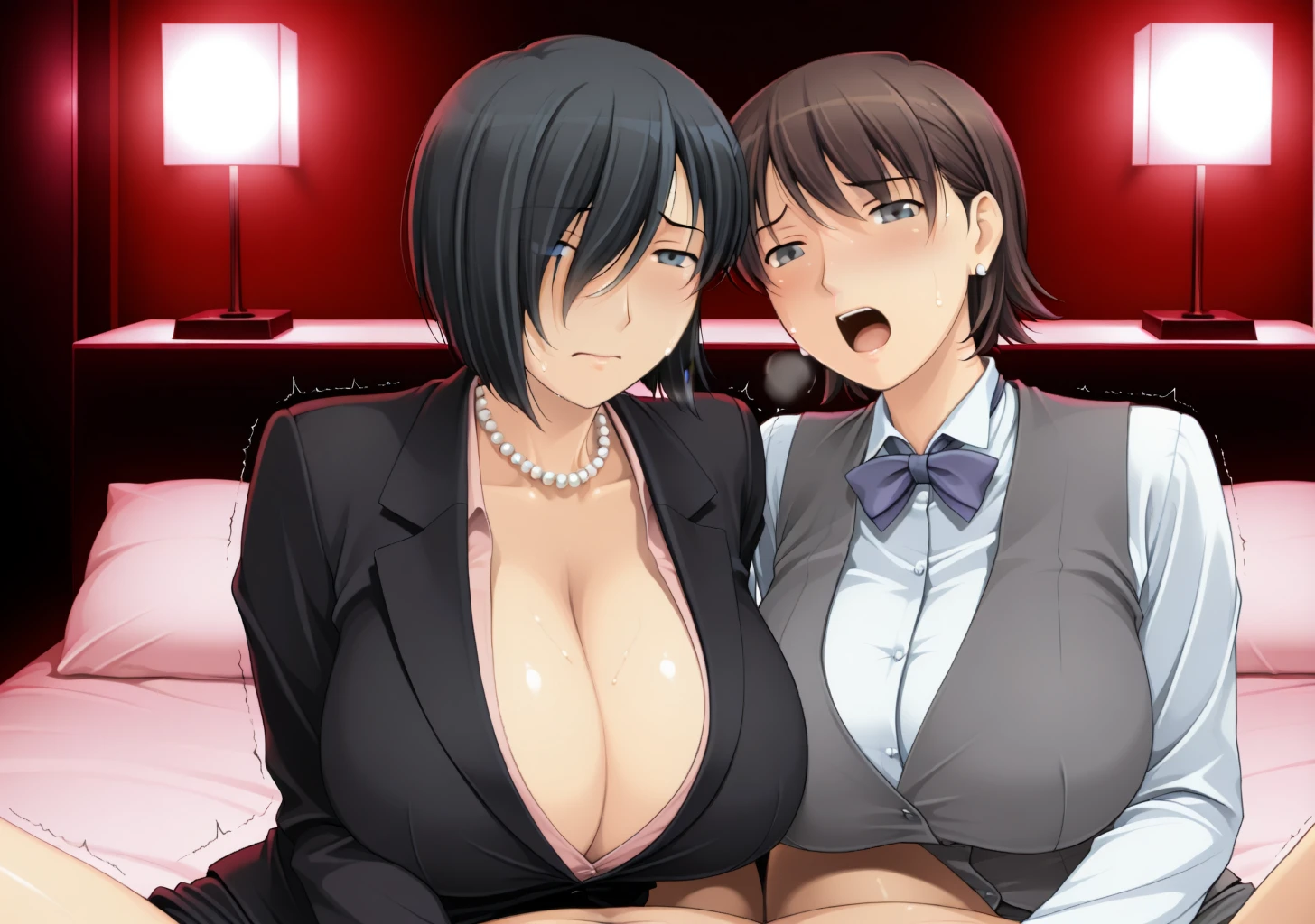 formal suit,grey vest,shirt,pencil skirt,jewelry, earrings, vest, bowtie,pantyhose,high heels
