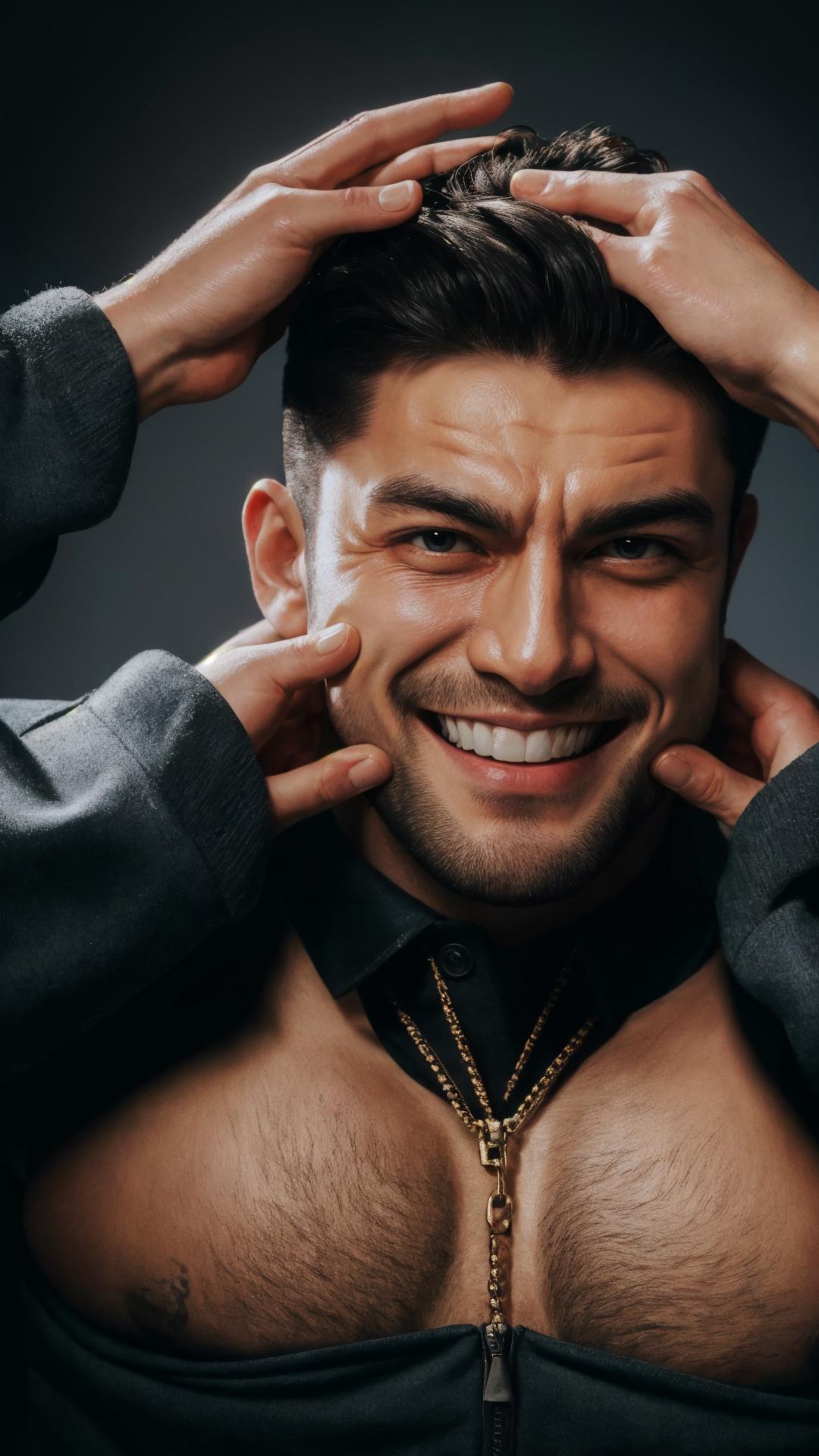 pov, cheek pull