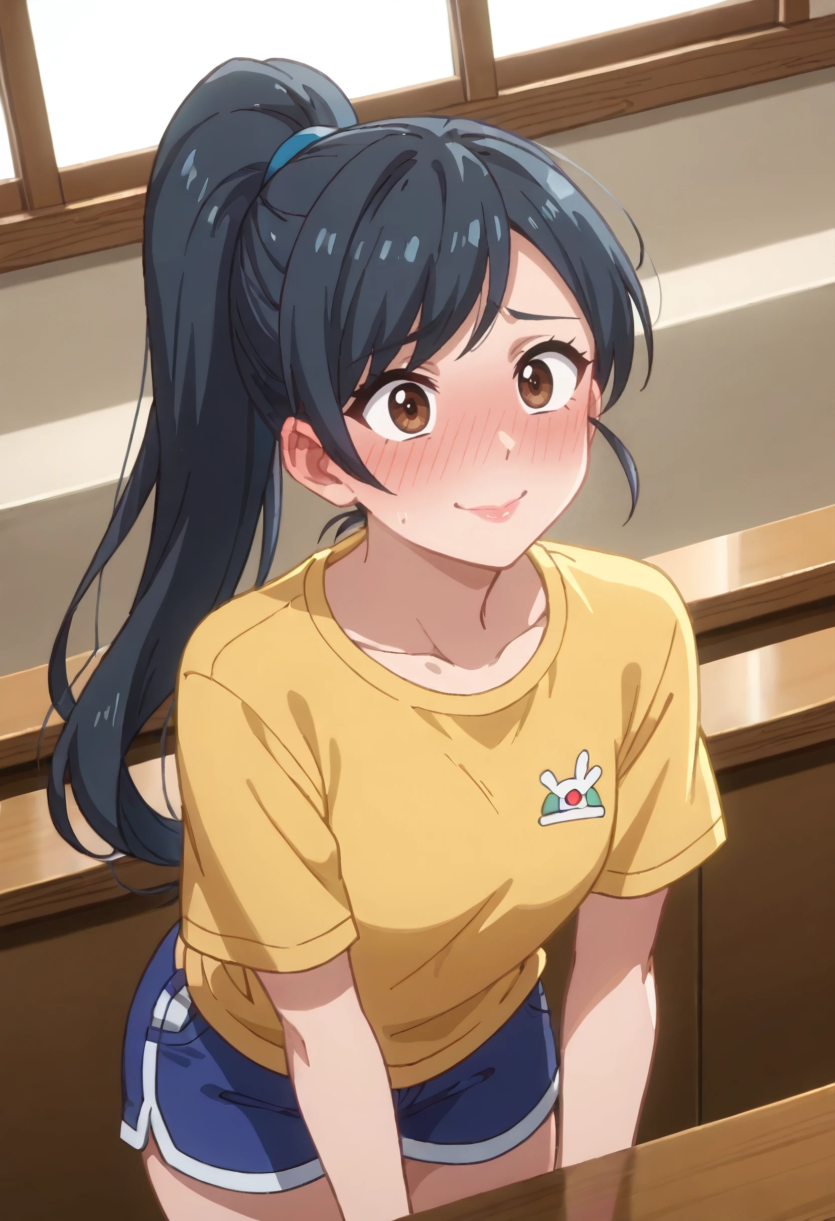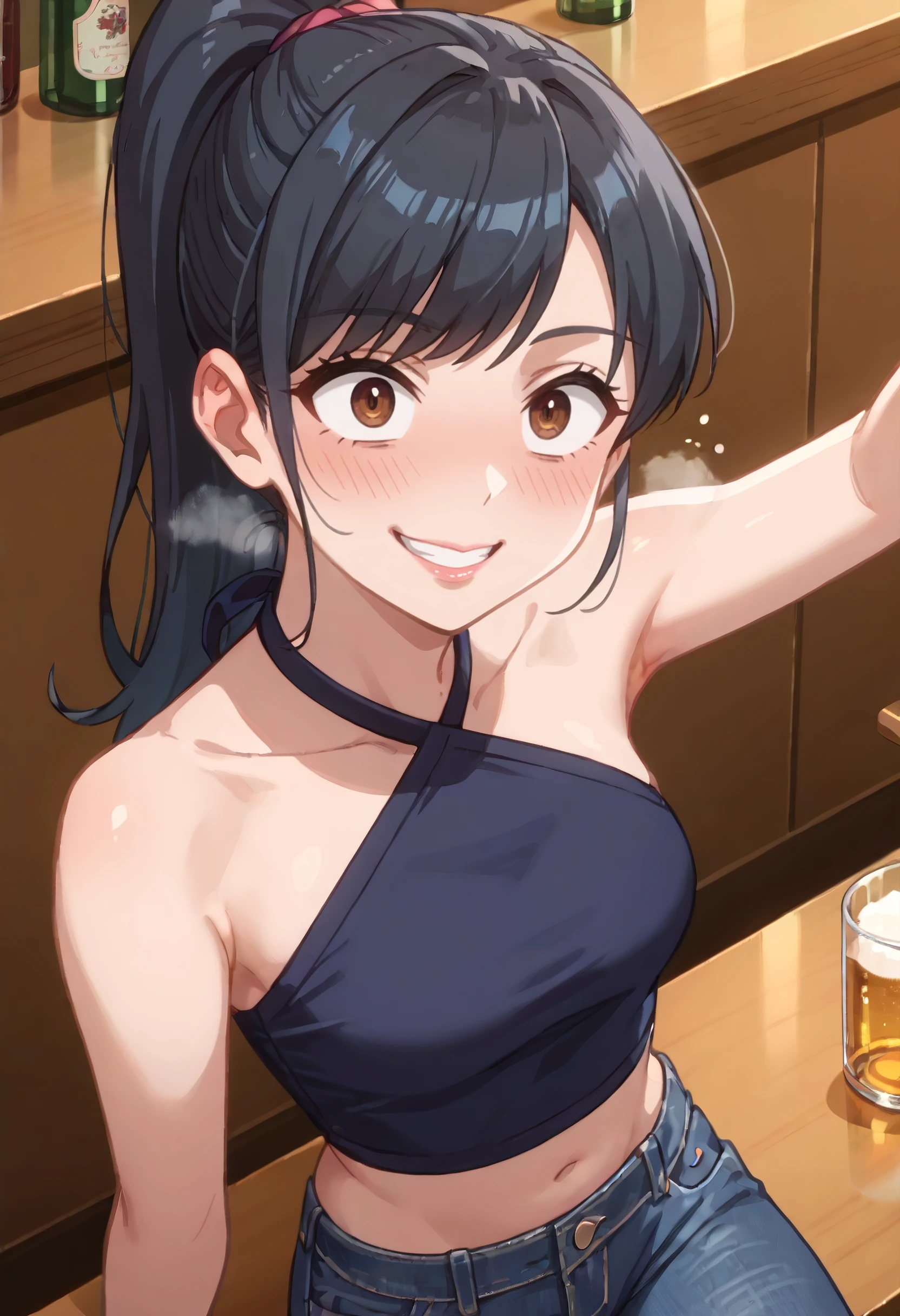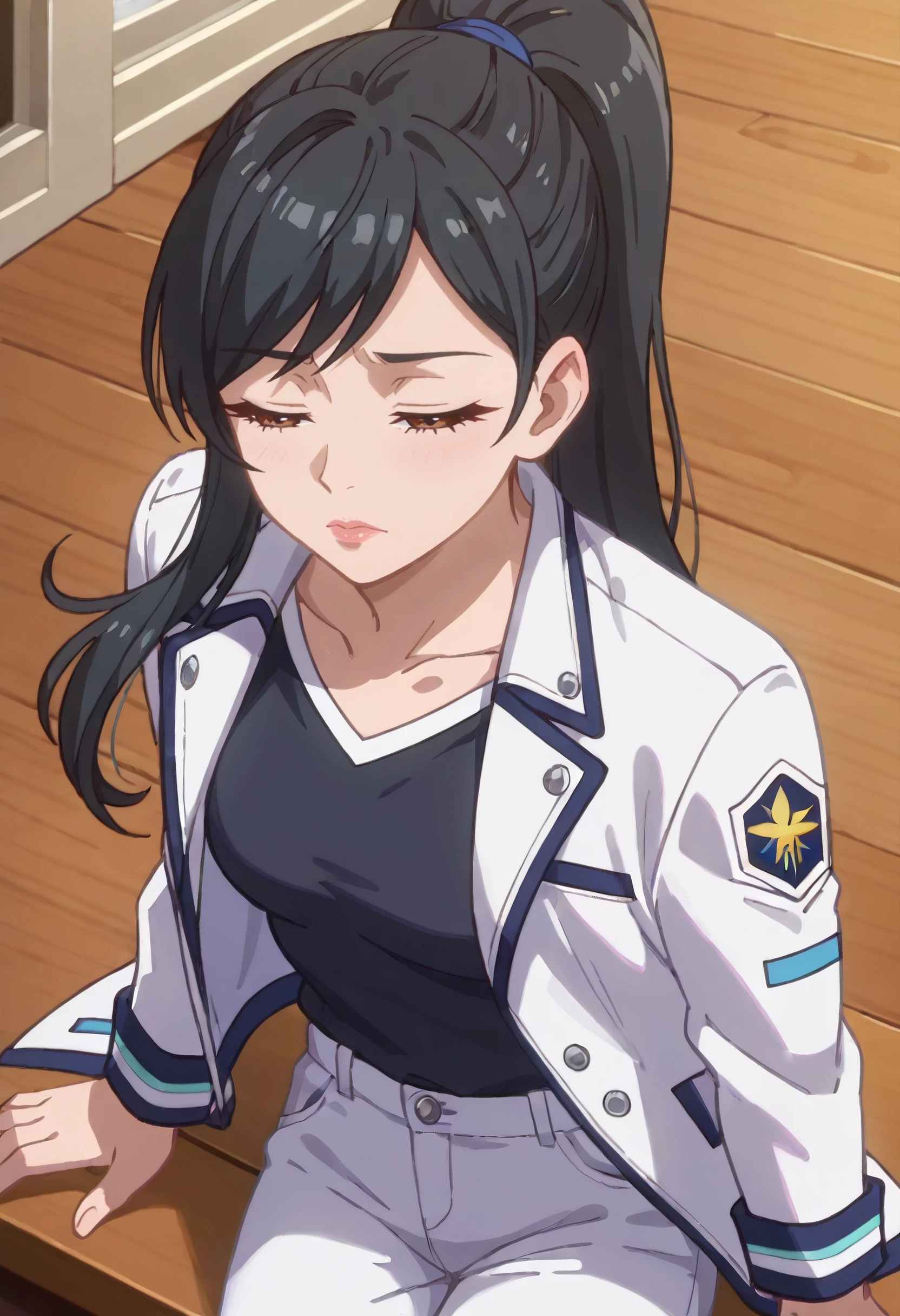 SSNLemming, long hair, ponytail, black hair, brown eyes, swept bangs, high ponytail,