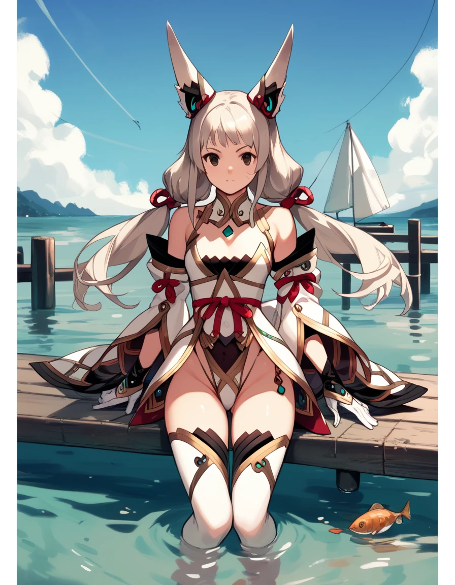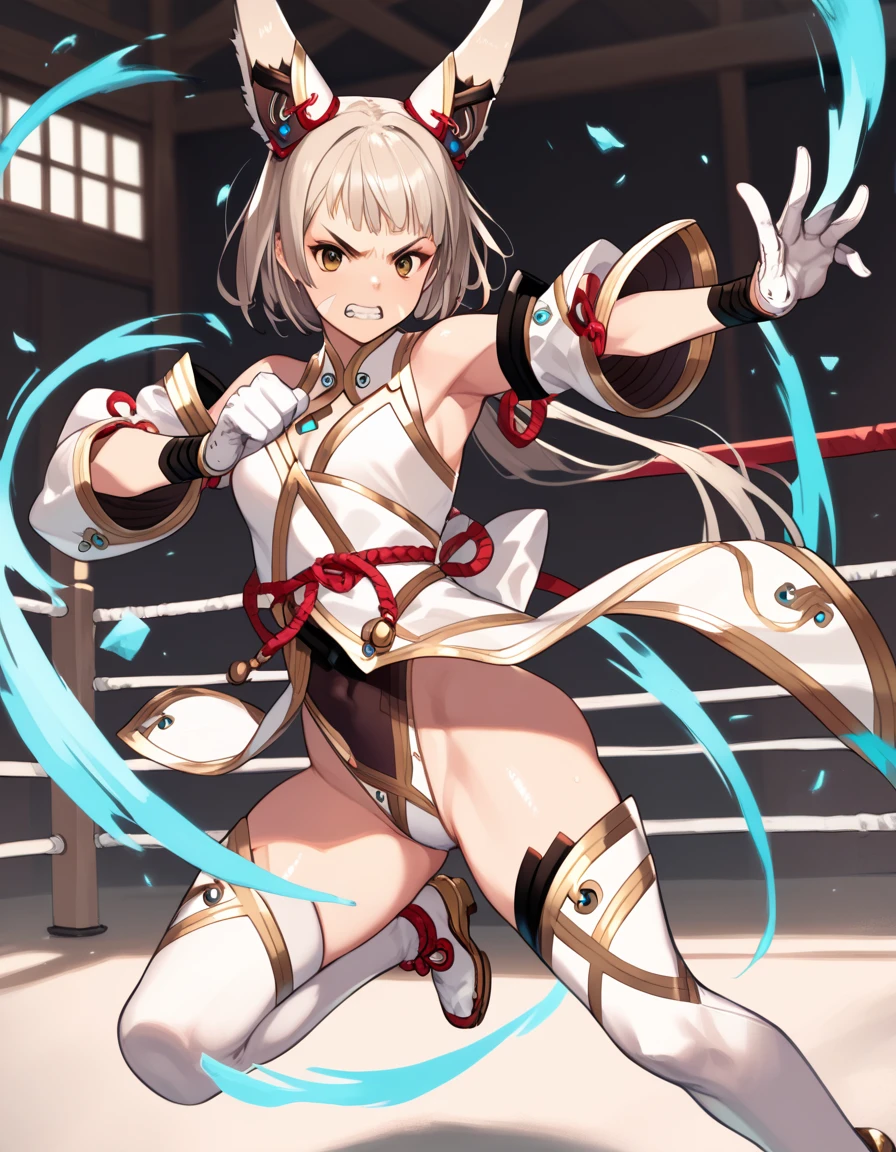 niabldxb2, white thighhighs, detached sleeves, white gloves, highleg leotard
