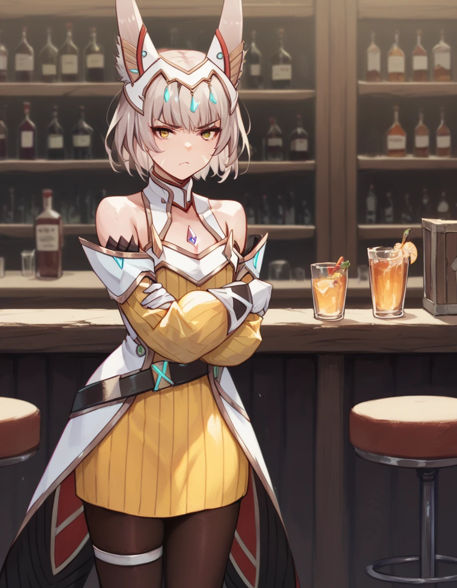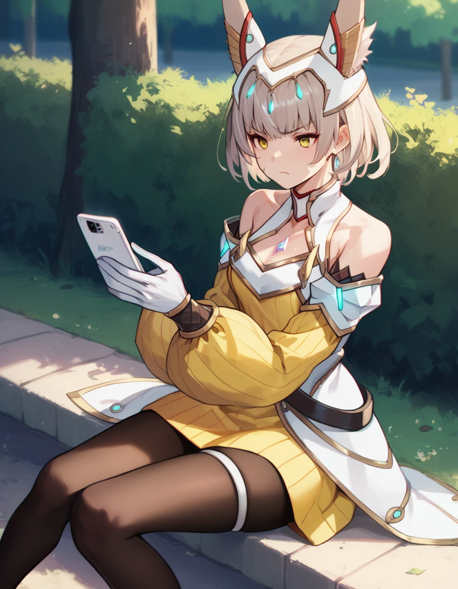 niahroxb3, white gloves, black pantyhose, detached sleeves, yellow dress