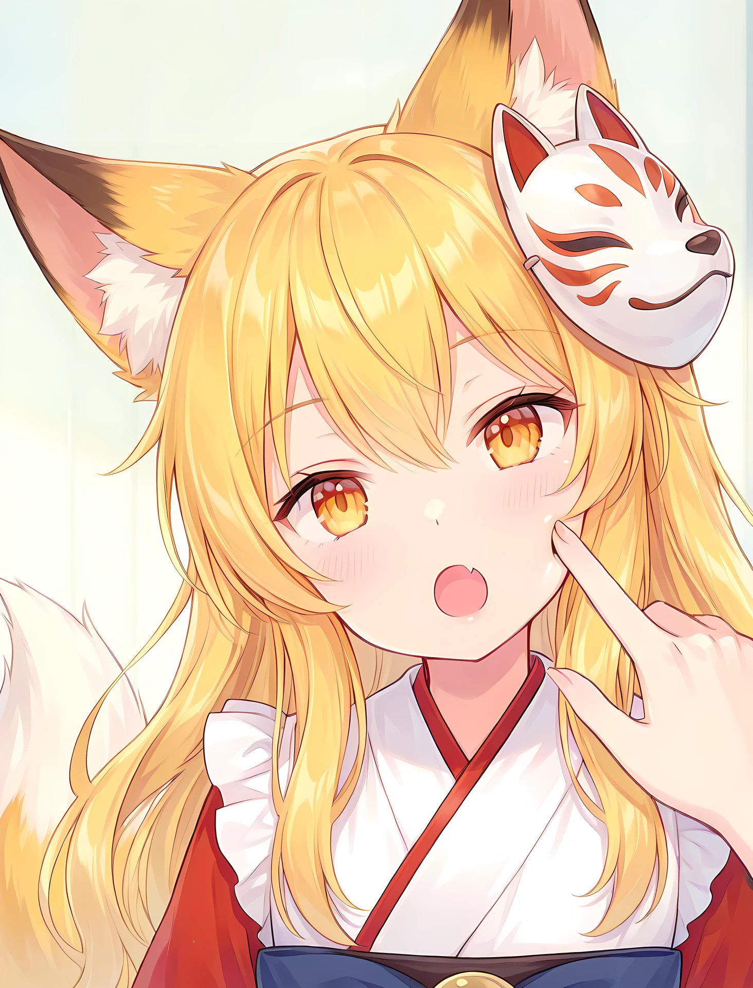For example:winefox,masterpiece,best quality,1girl,look at viewer,upper body,:o,one arm up,one eye closed,sunlight,outside,street