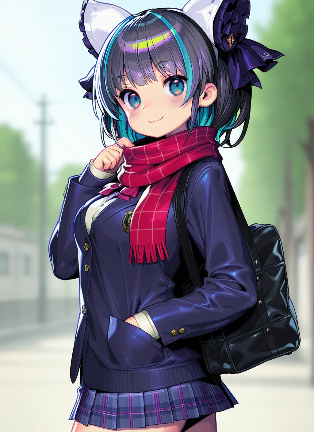 绚烂夜梦(the cat in the magic hat):cheshire_\(azur_lane\),multicolored_hair,top_hat,meme_attire,reverse_outfit,pantyhose, breast_curtains,covered navel, see-through,juliet_sleeves,bowtie,