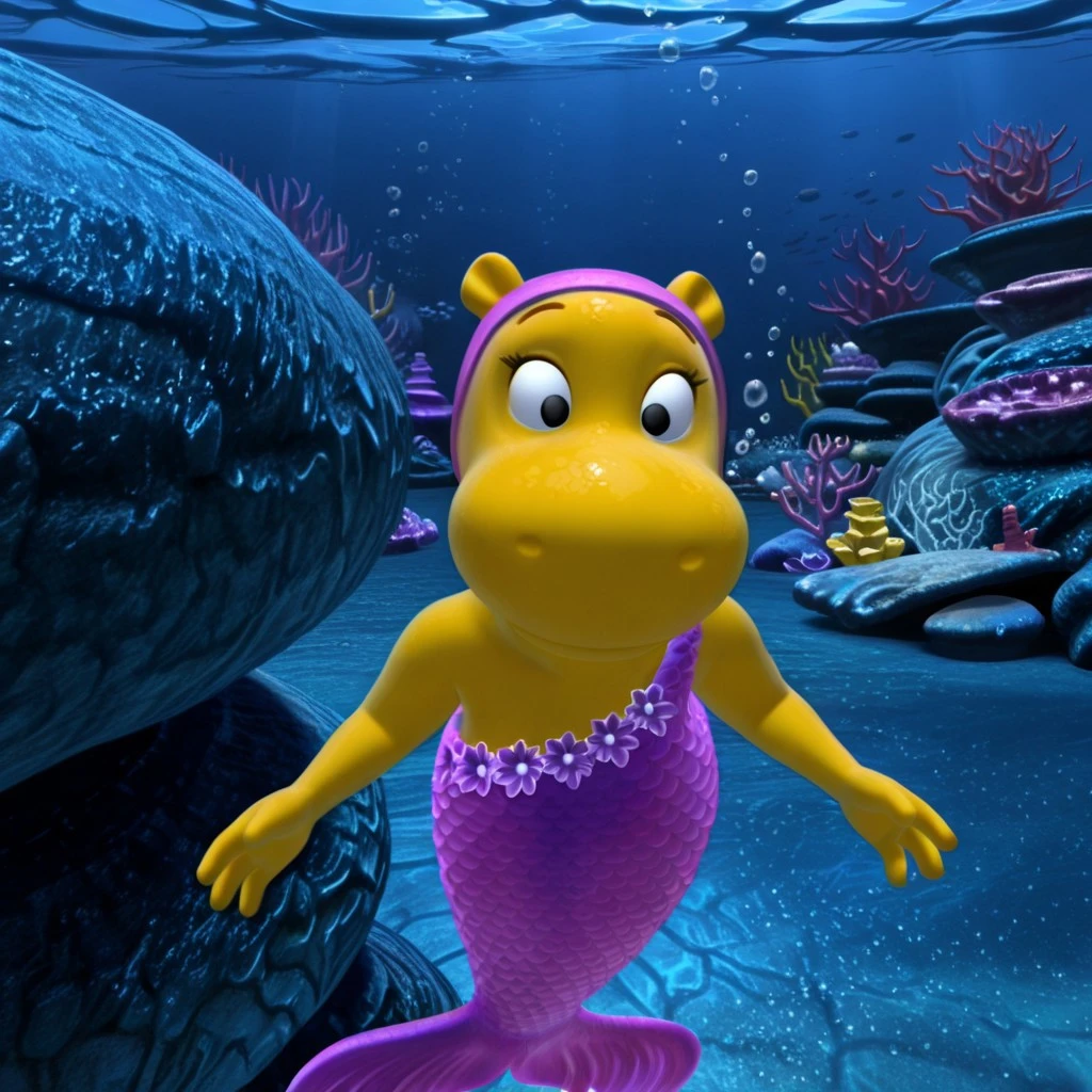 mermaid tail, purple cap