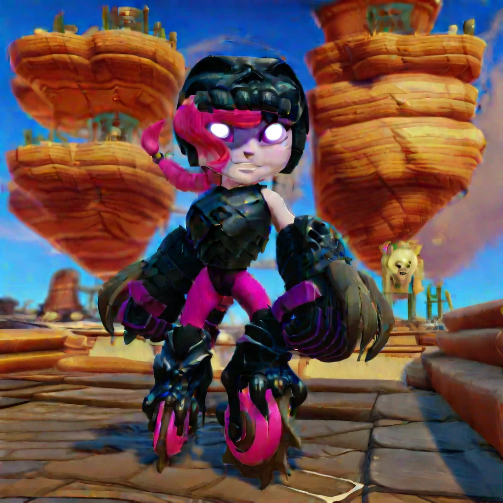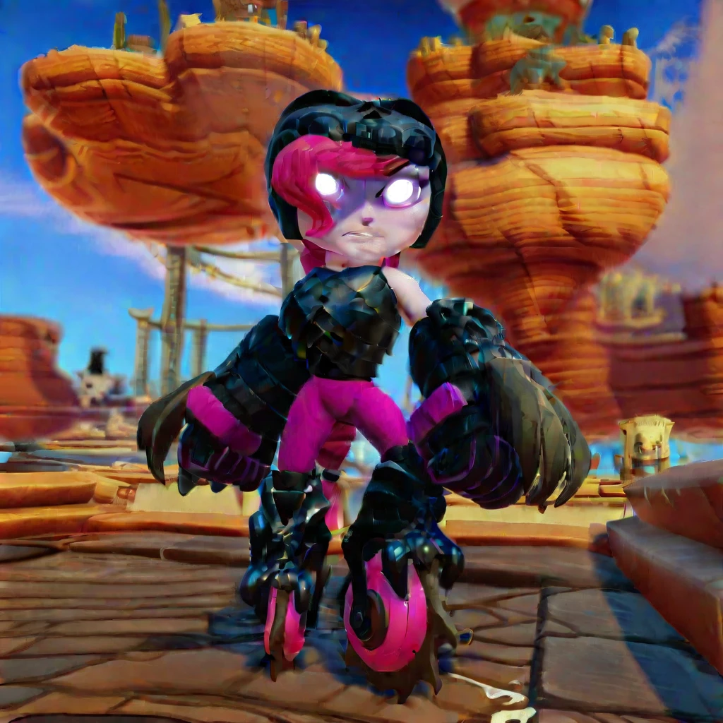 pink hair, braided hair, skull Helmet, pink eyes, black armor, large breasts,