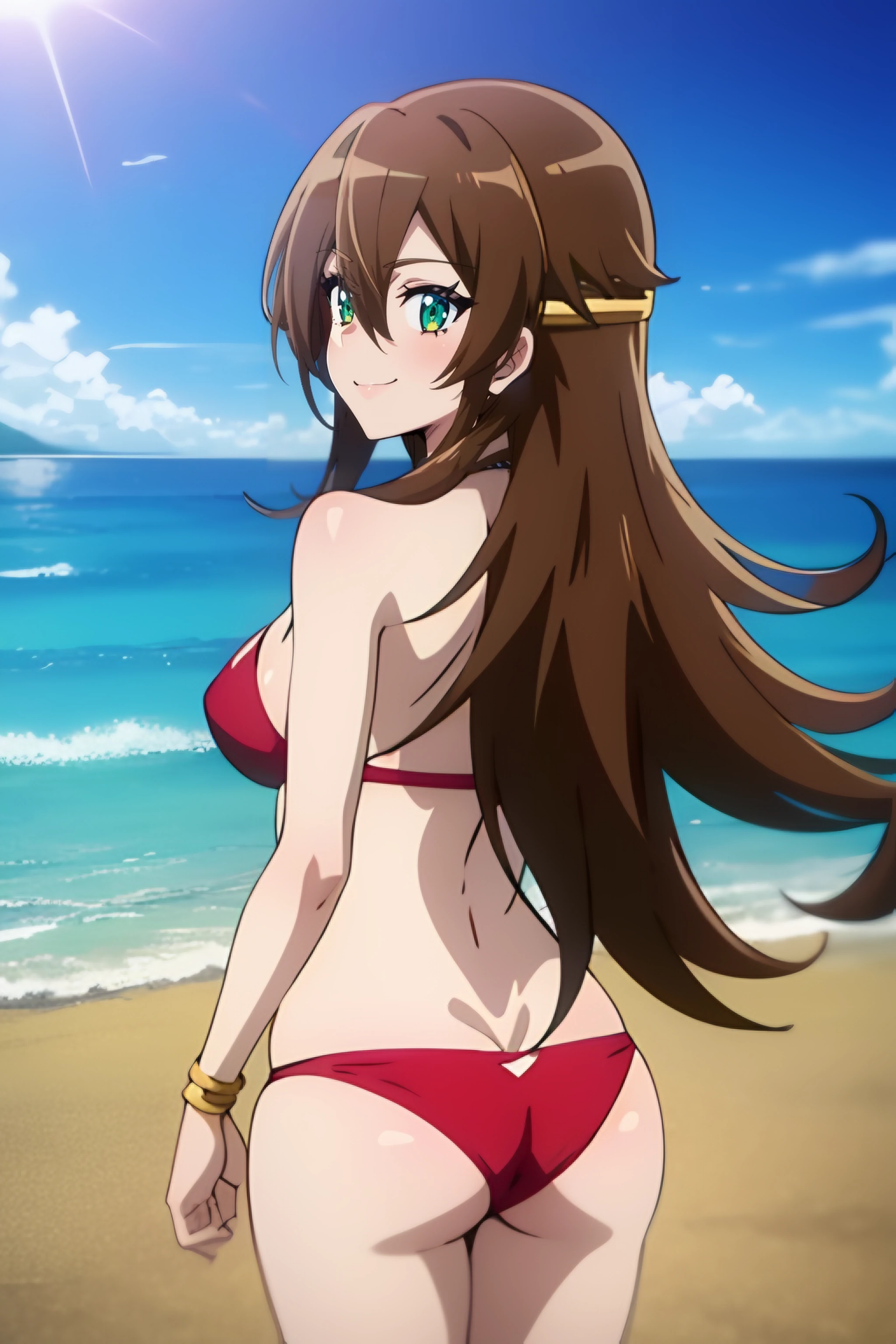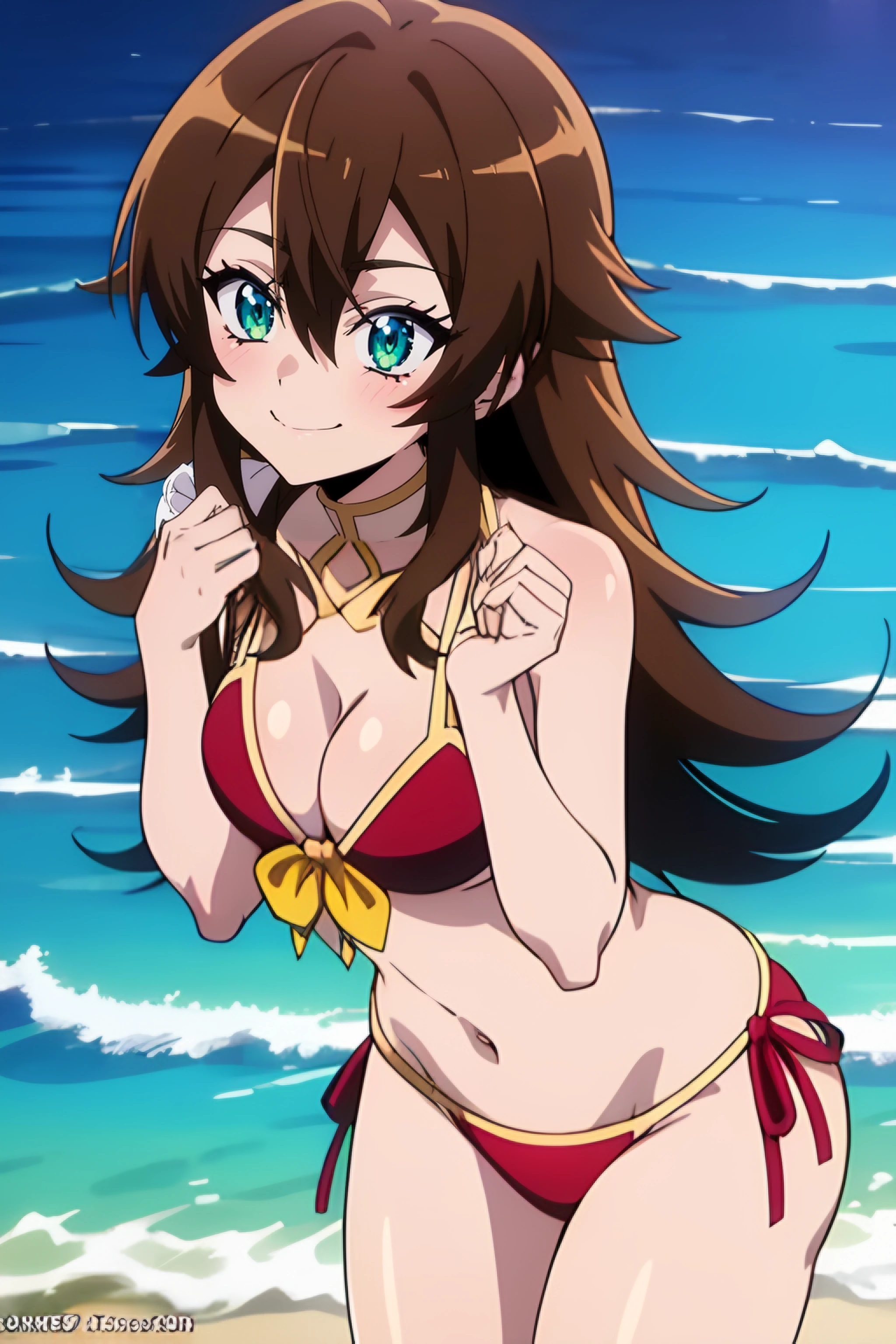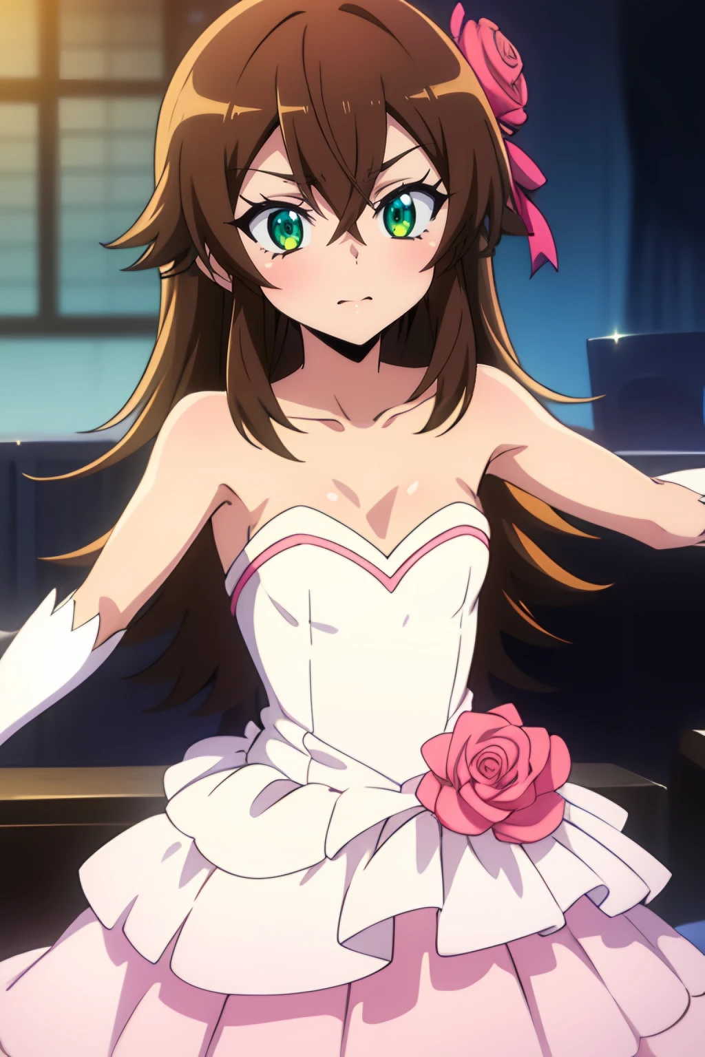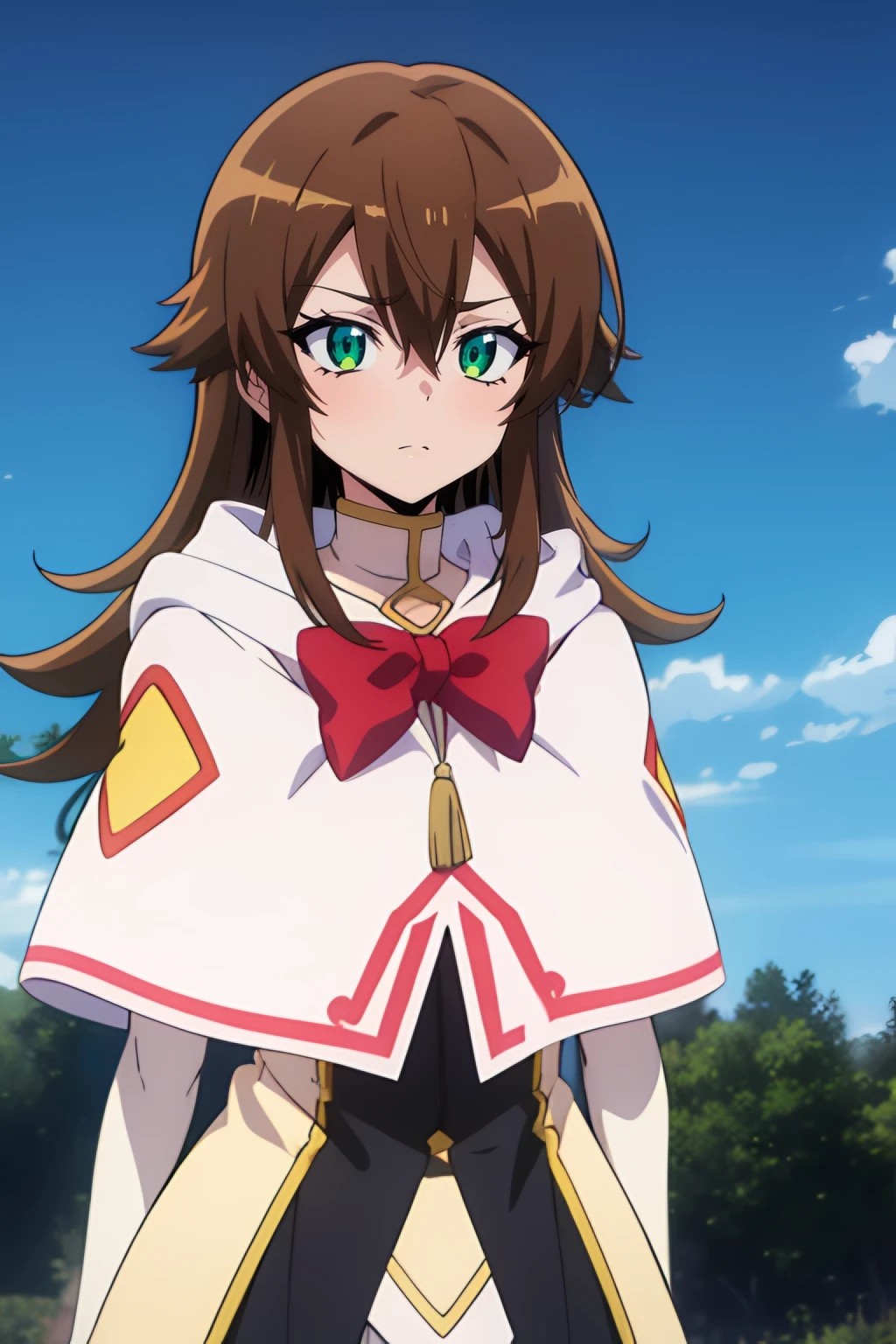 nin, brown_hair, long_hair, 1girl, green_eyes, solo, hair_between_eyes
