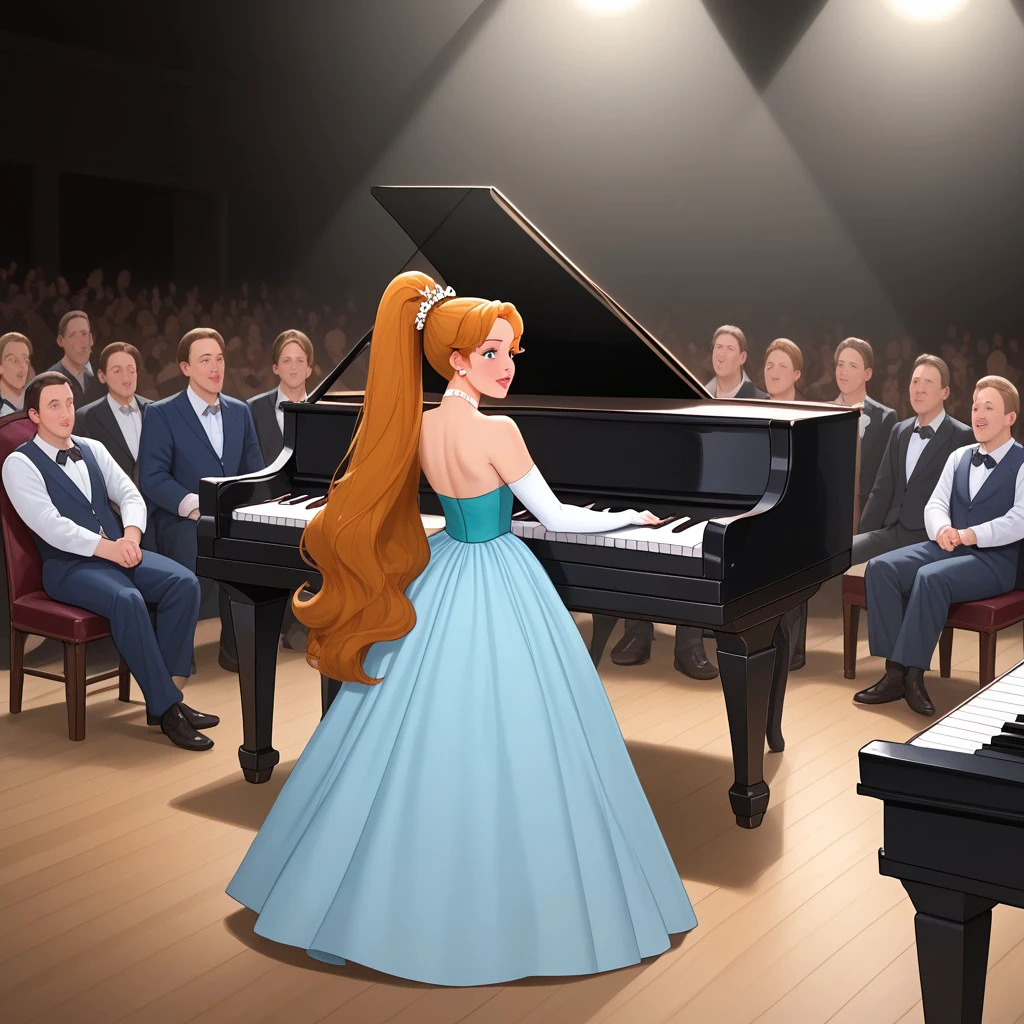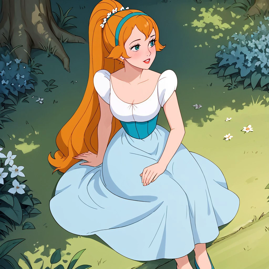 thumbelina, long hair, ponytail, dress, hairband,