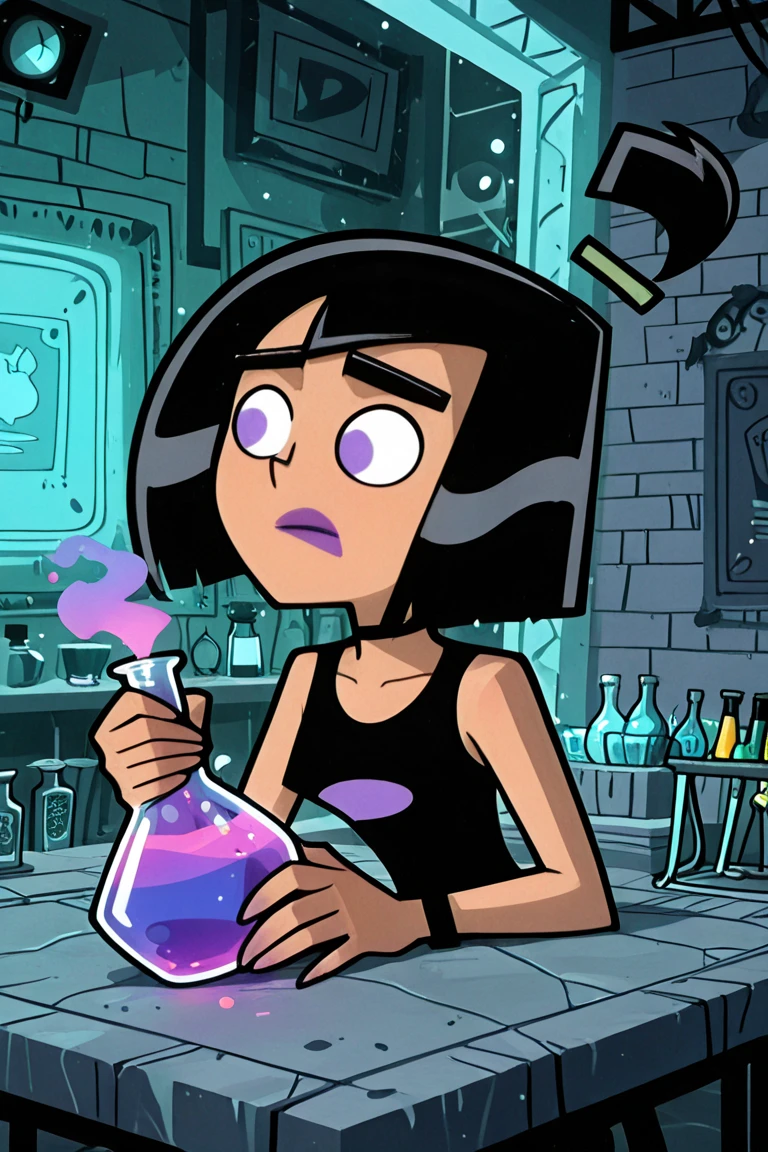 1girl,black hair, purple eyes, short hair, ponytail, lipstick, makeup, purple lips, parody,chibi, bob cut,